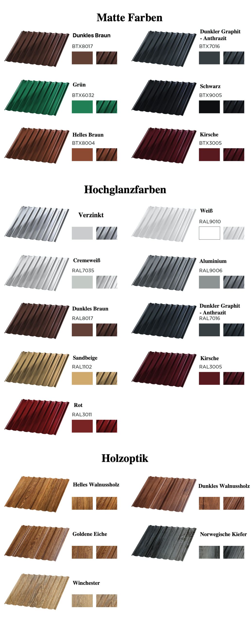 Sehen Sie sich die verfügbaren Farben für Ihre Projekte an.