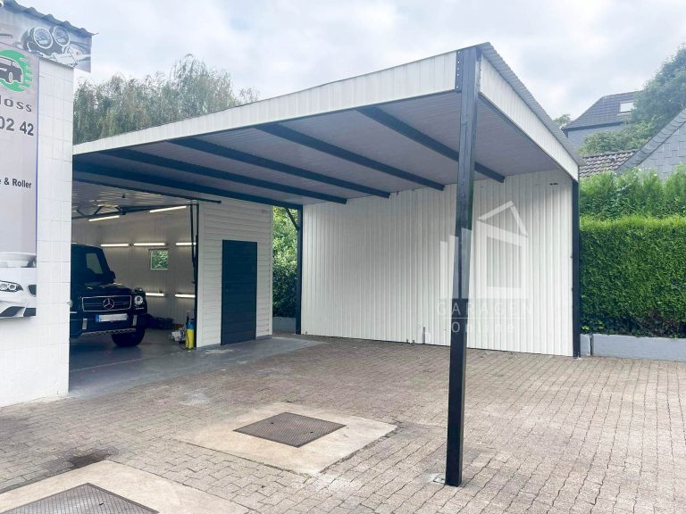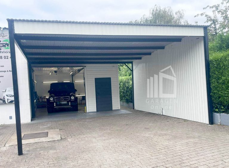 Wir verwenden solide Verstärkungen der Konstruktion aus Winkeln, Trägern und geschlossenen Profilen Verstärkung des Daches durch einen Stahlrahmen+ Dachkonstruktion aus robusten, geschlossenen, feuerverzinkten Profilen Wir fertigen jede garage nach ihren wünschen. Bitte Kontaktieren sie uns, wenn sie irgendwelche fragen haben.