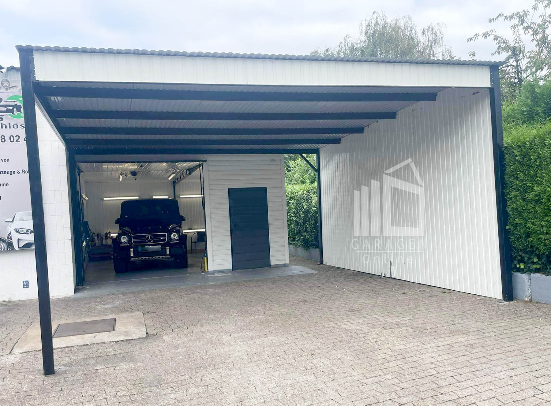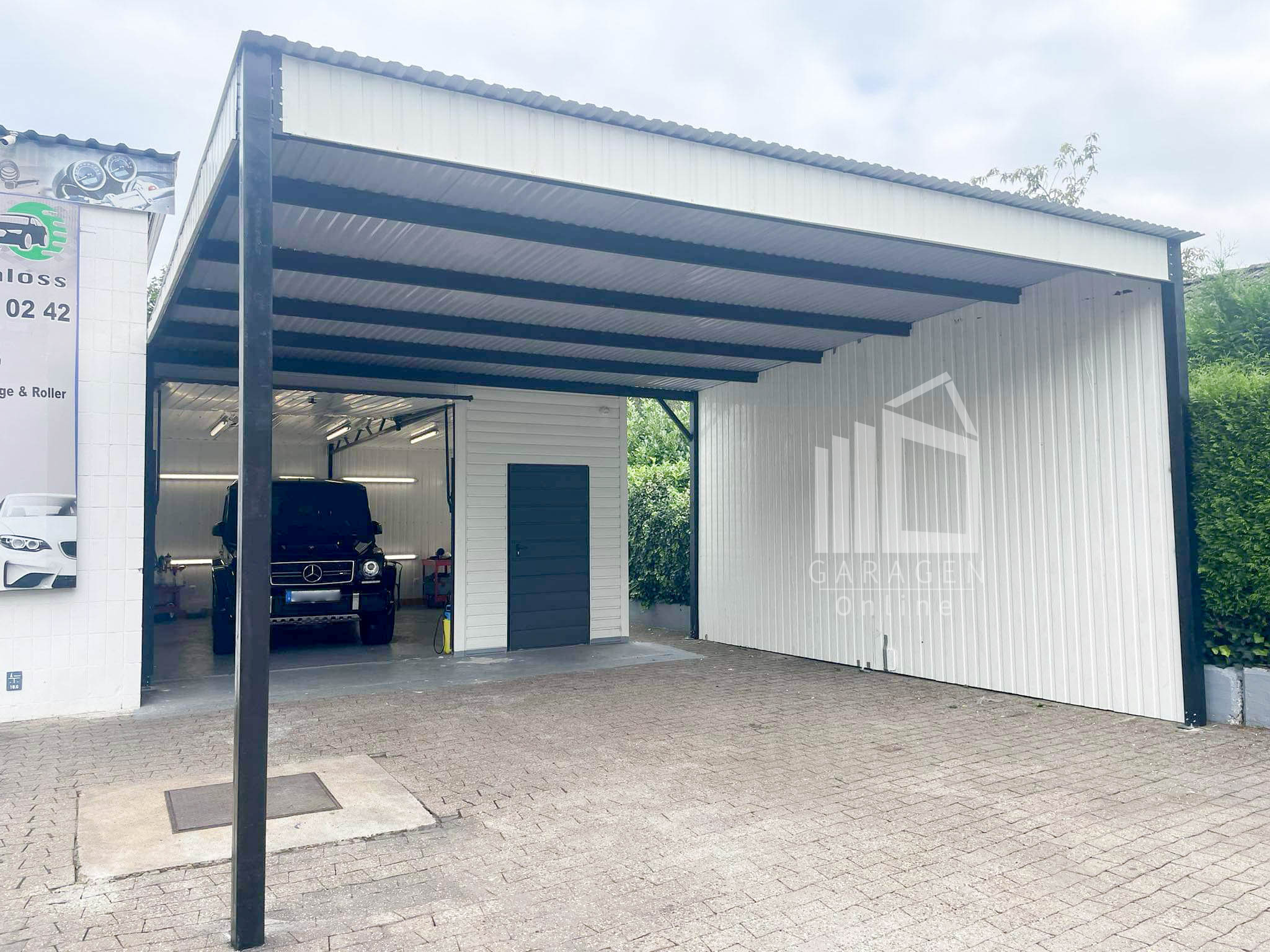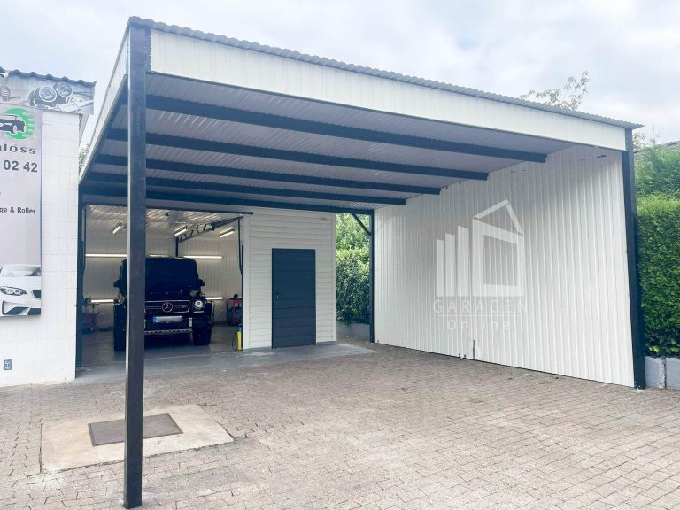 •     Nieten + Schrauben in Garagenfarbe Transport, Montage und Verankerung am Boden kostenlosMögliche Bearbeitung des Projekts (Maße, Farbe, Material und anderer Elemente) nach vorheriger Kontaktaufnahme: