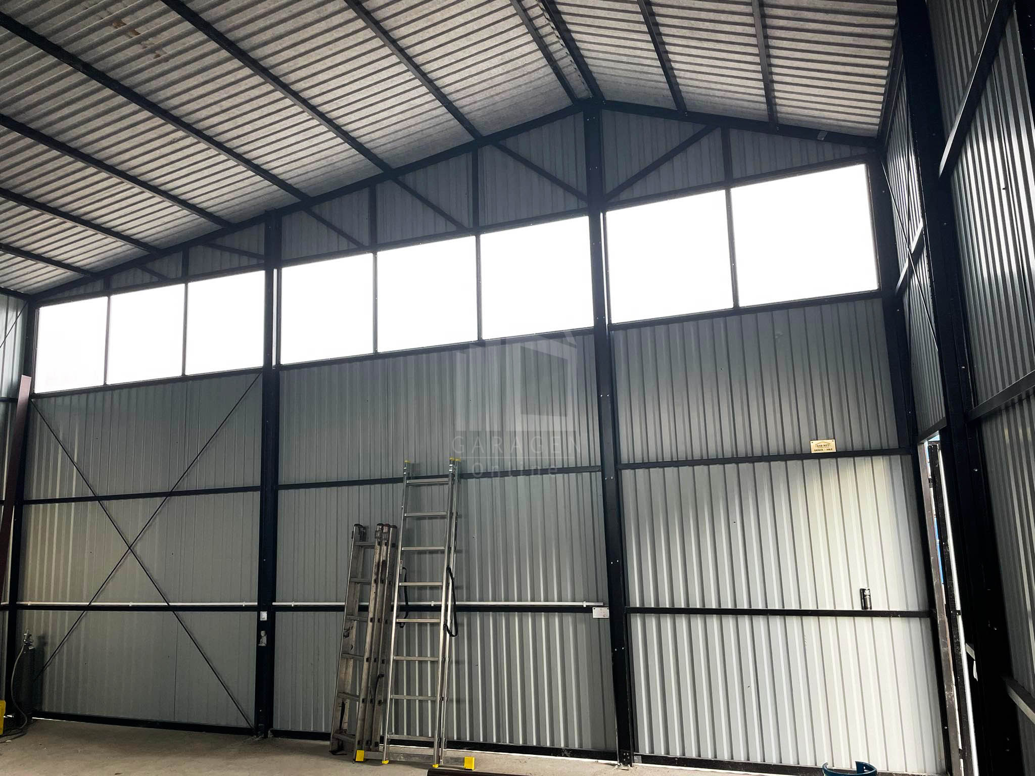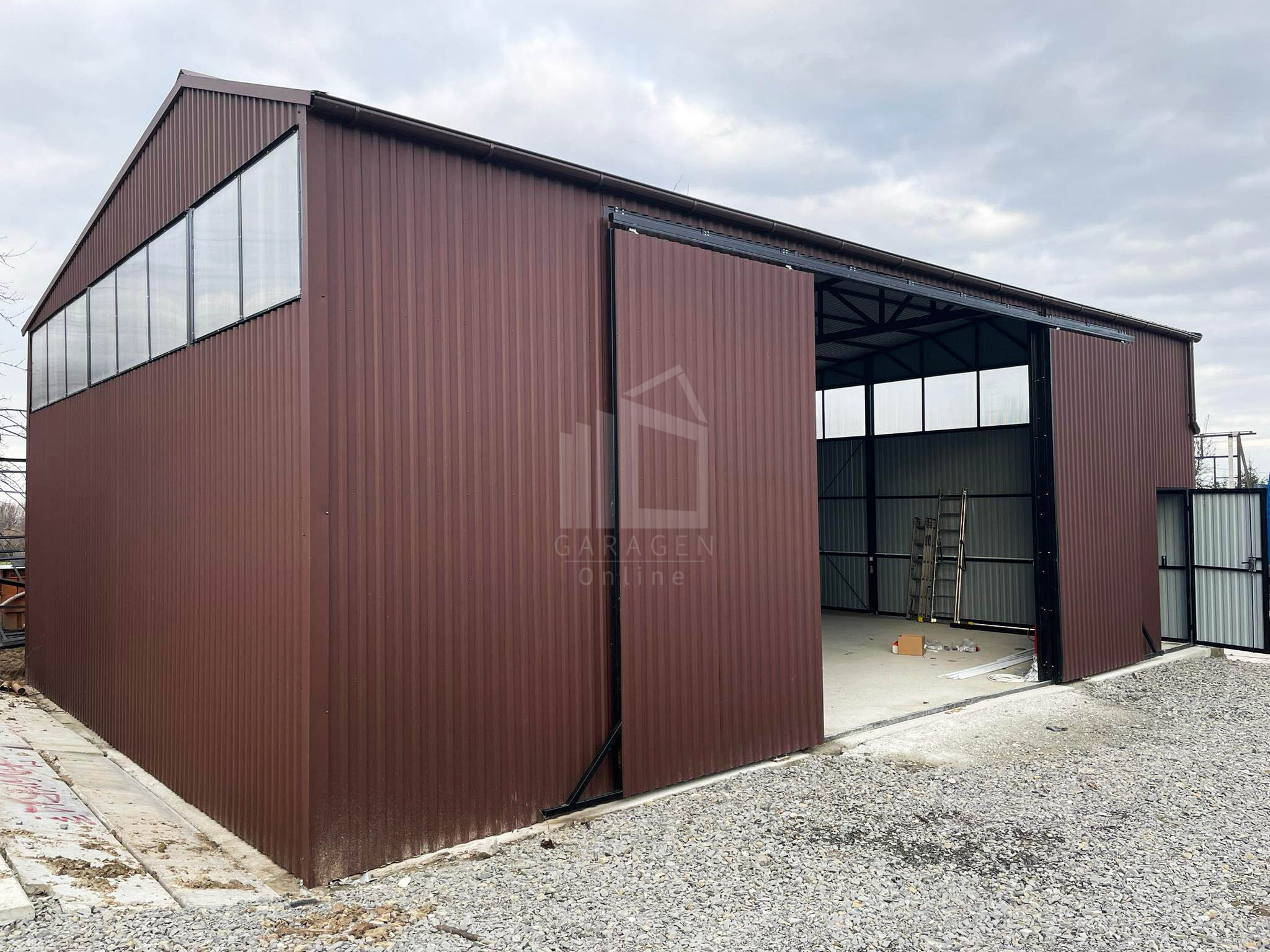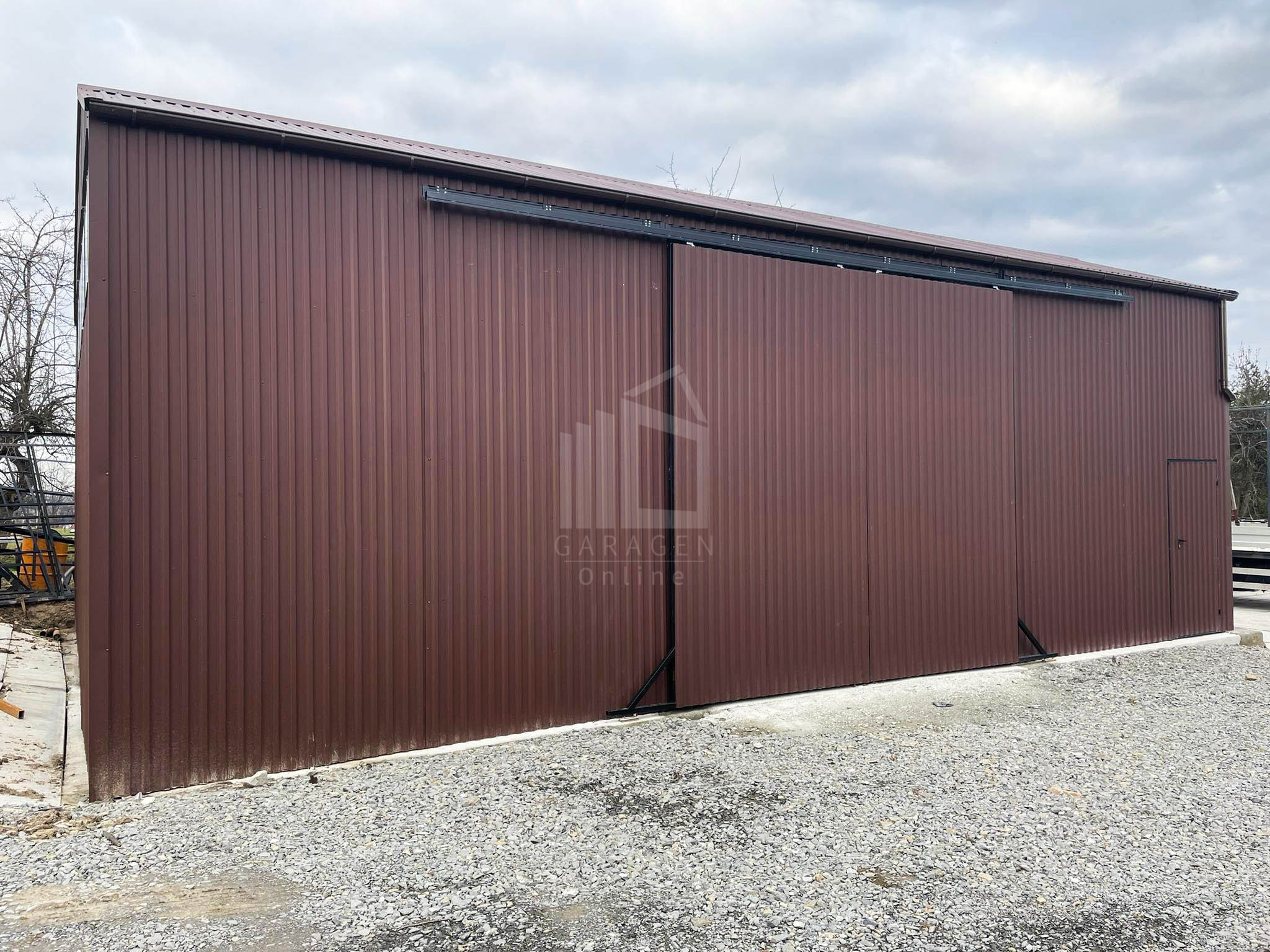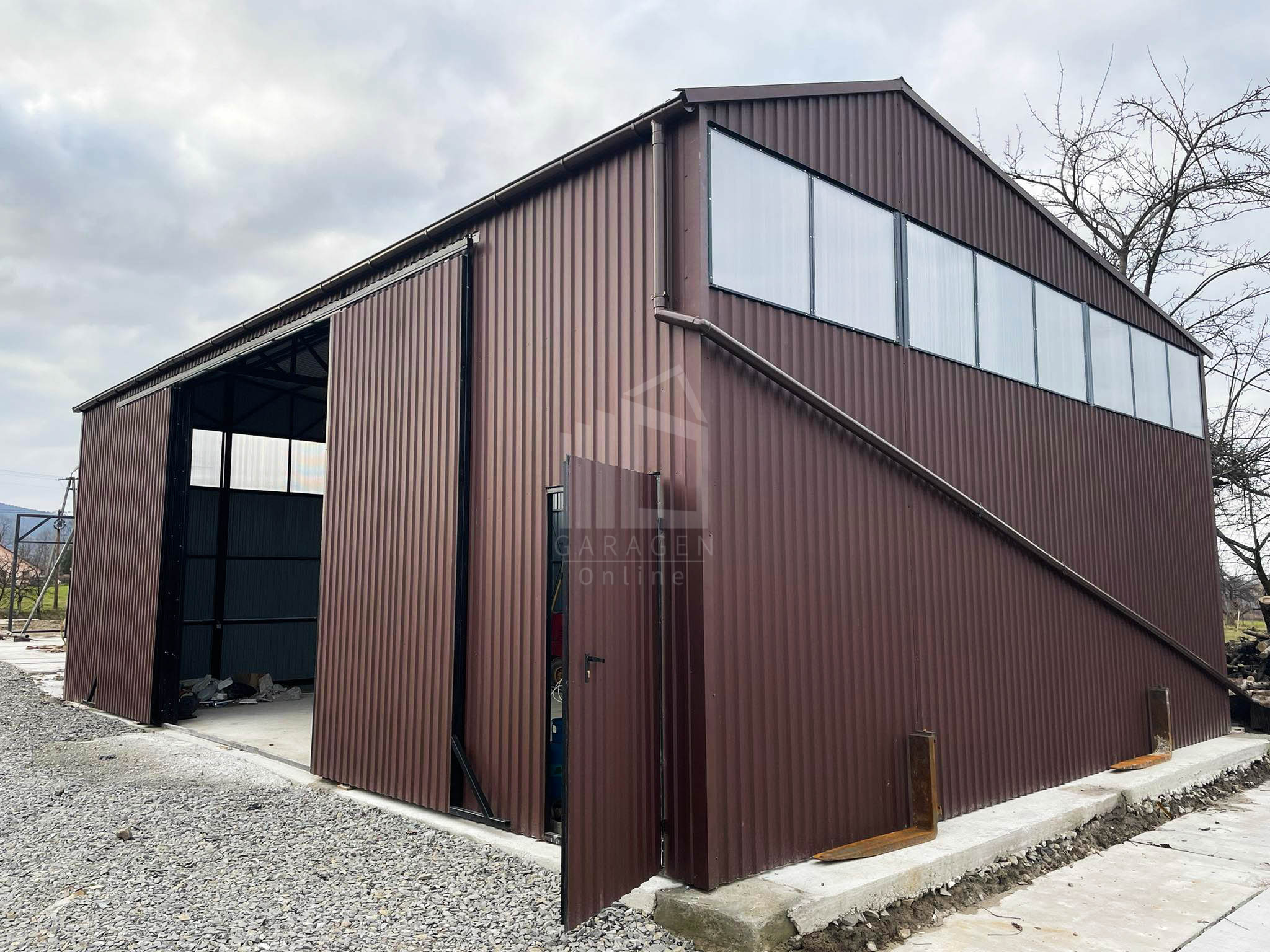 Blechhallen 12x8m Schiebetor – Türen, Dachrinnen, Fenster-Satteldach GP85