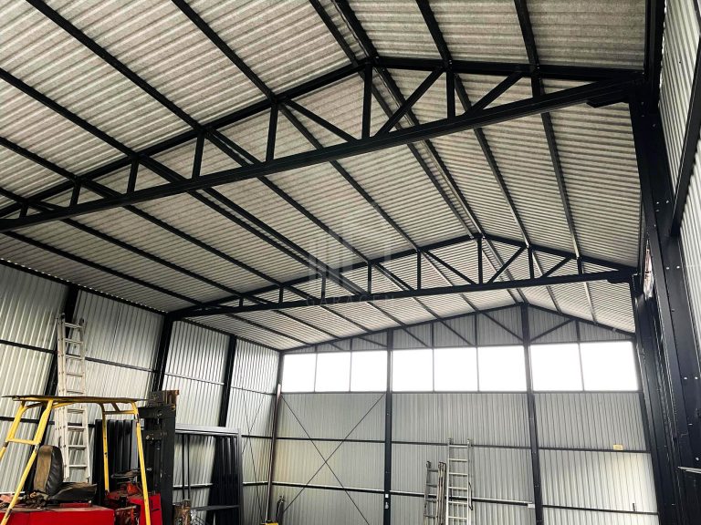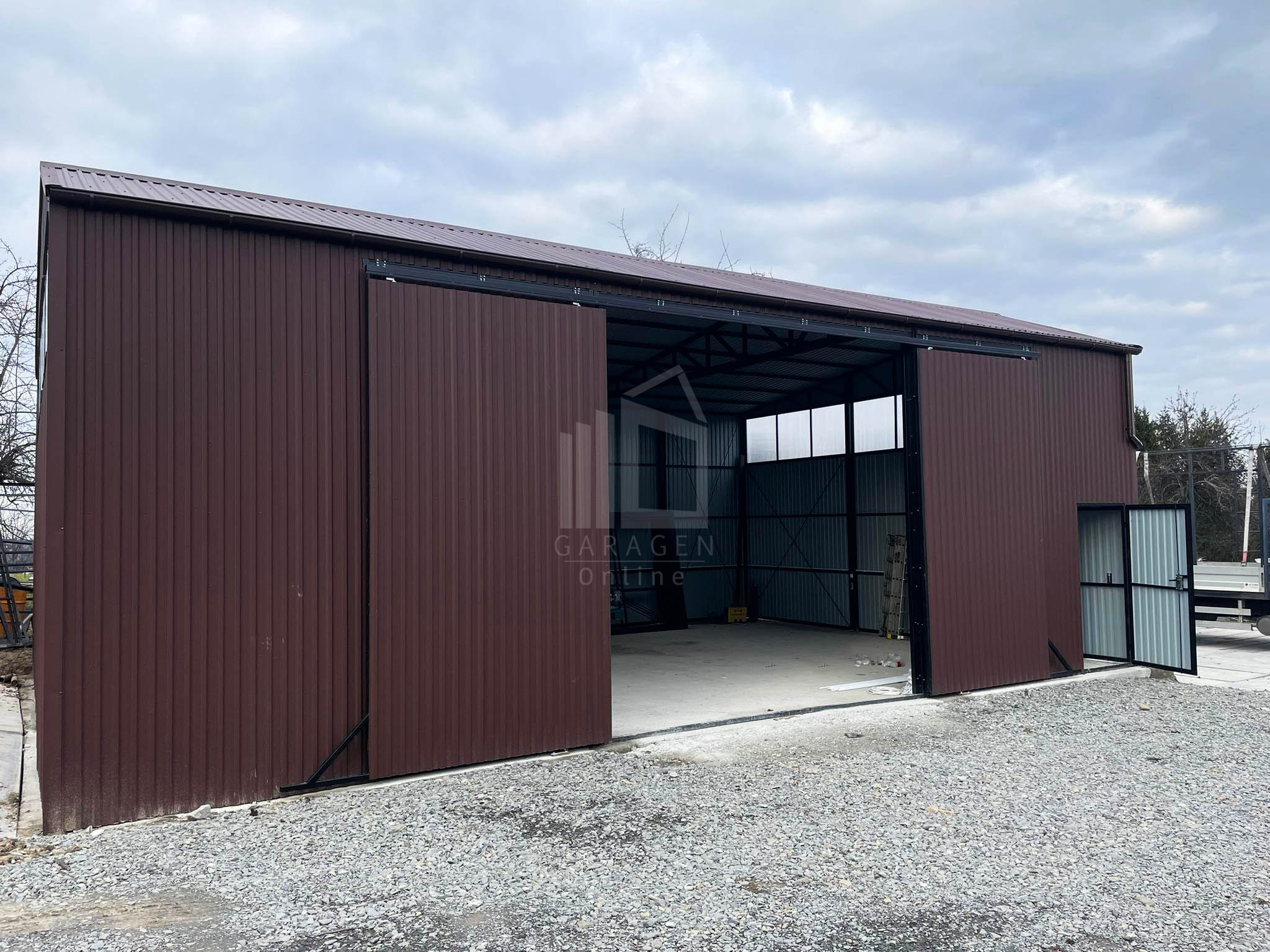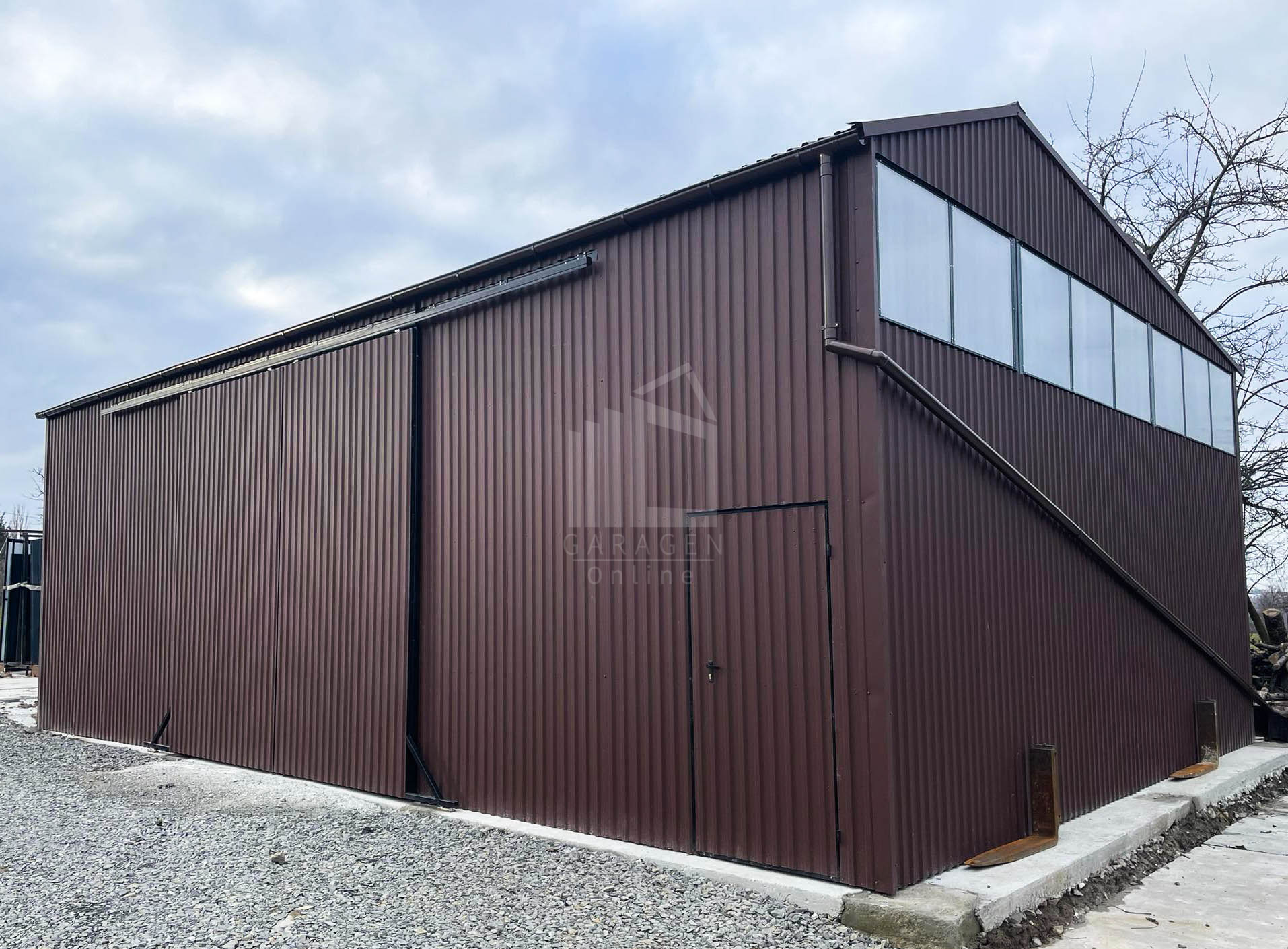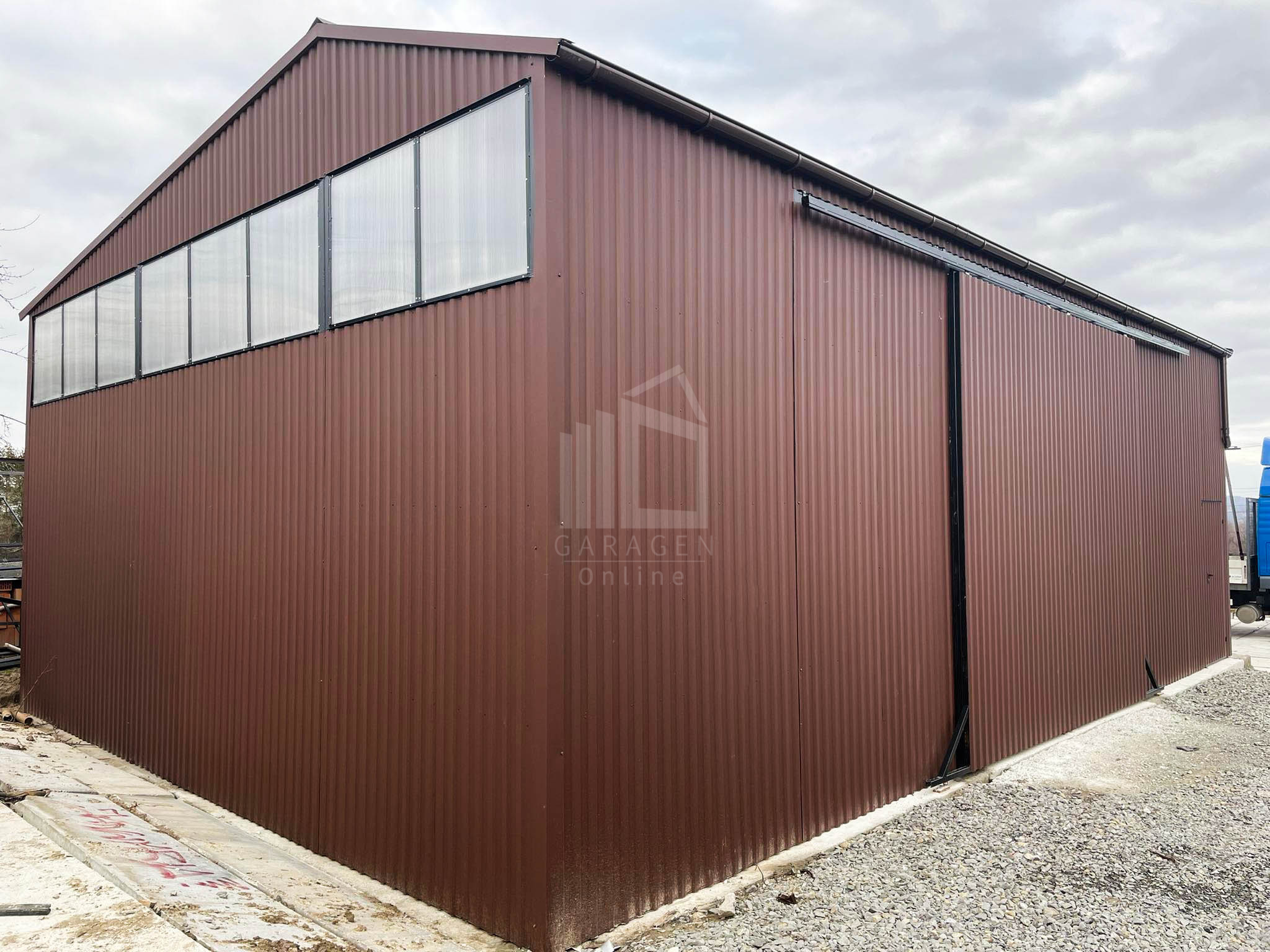 Blechhallen 12x8m Schiebetor – Türen, Dachrinnen, Fenster-Satteldach GP85