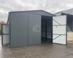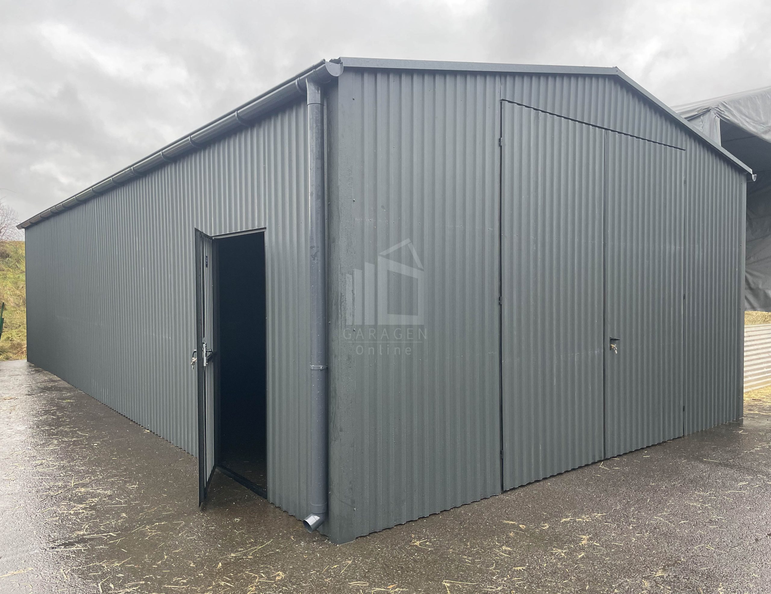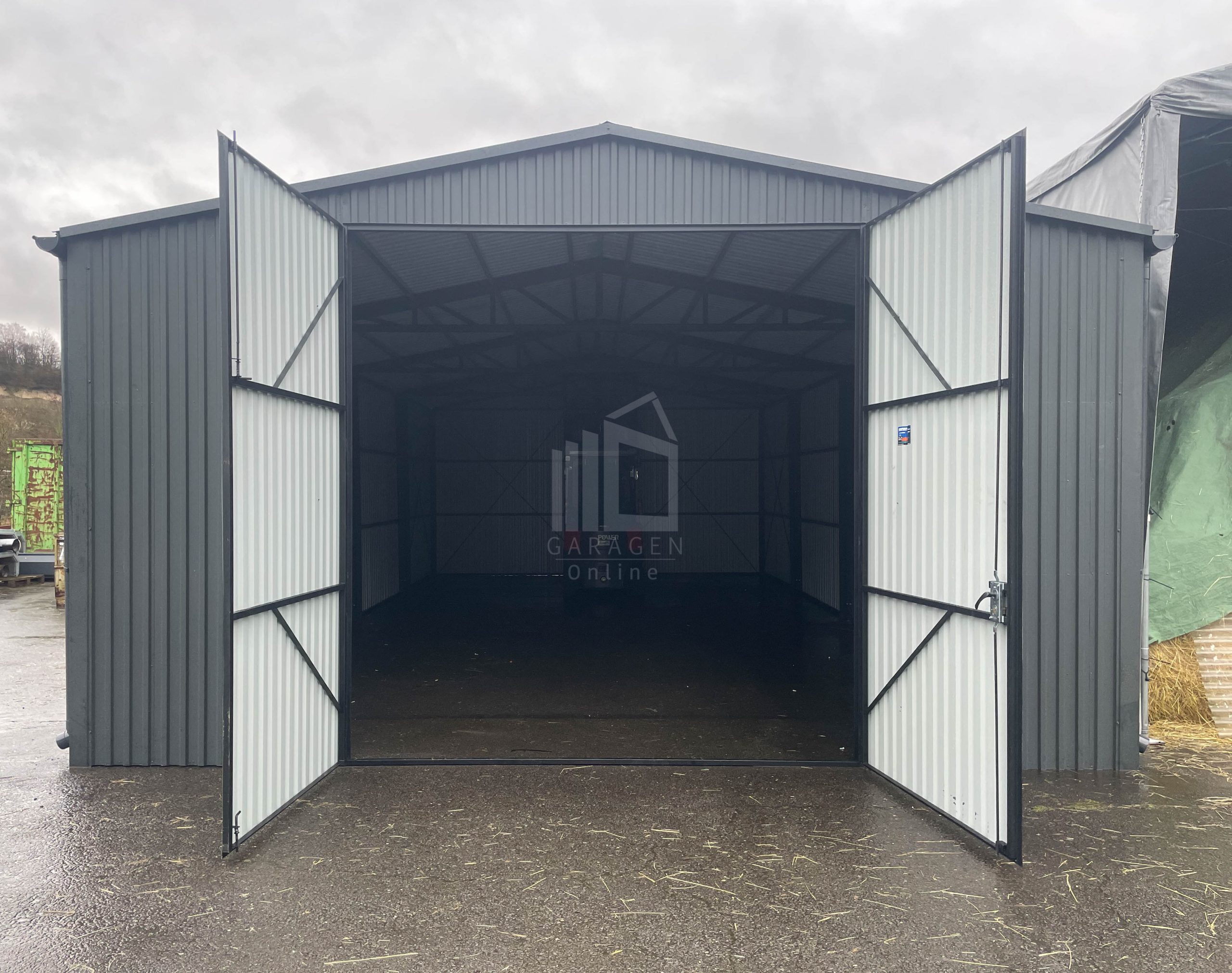 - Zweiflügeliges Tor 300×310 cmWände Vertikal Blech T7 Farbe: Anthrazit Matte 7016