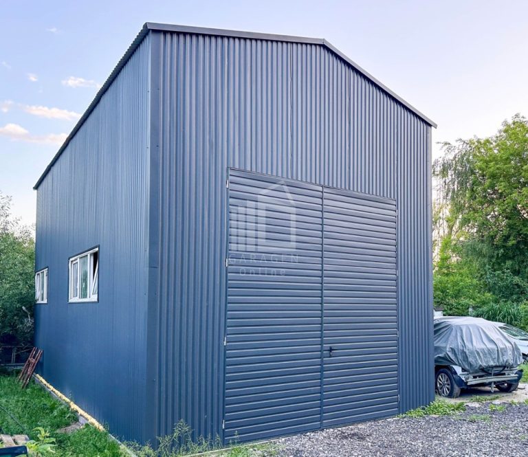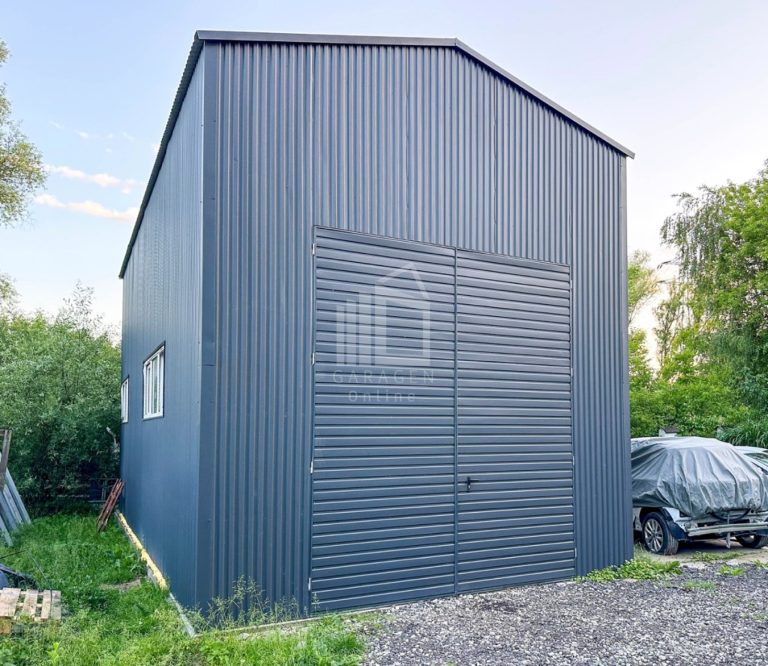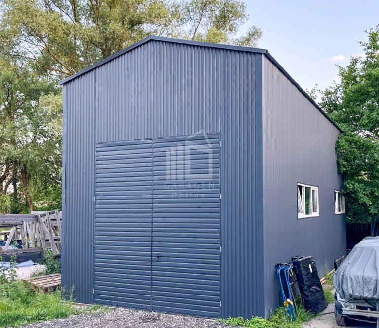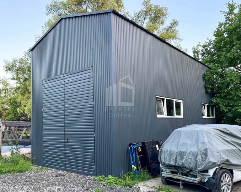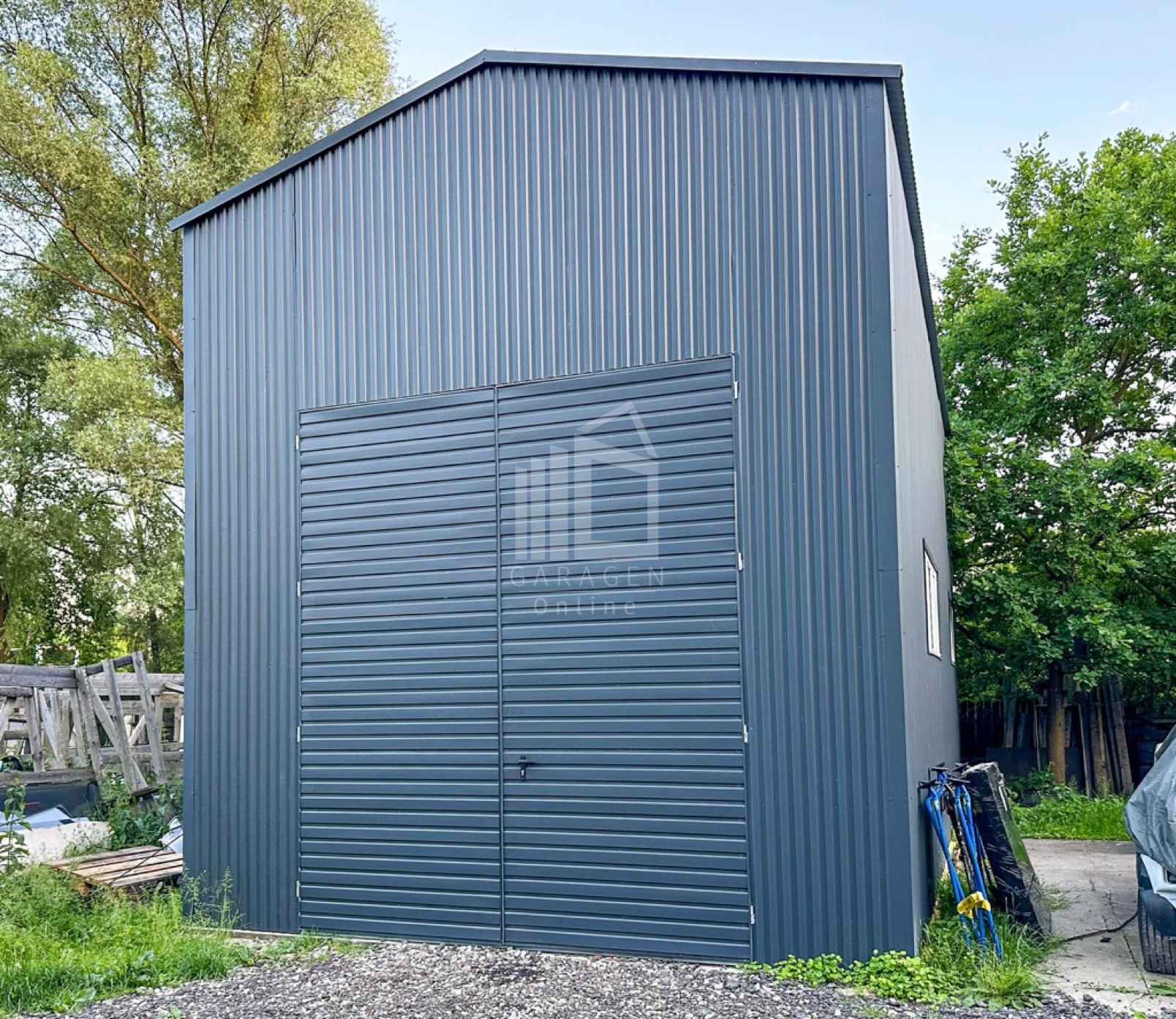 Hala – Garaż Blaszany 5x10m Brama Dwuskrzydłowa – Antracyt – Dach Dwuspadowy ID605