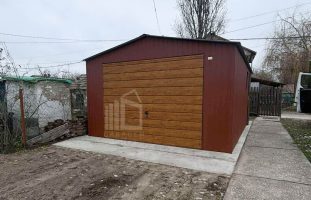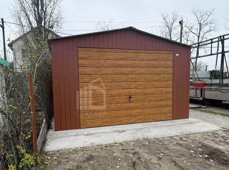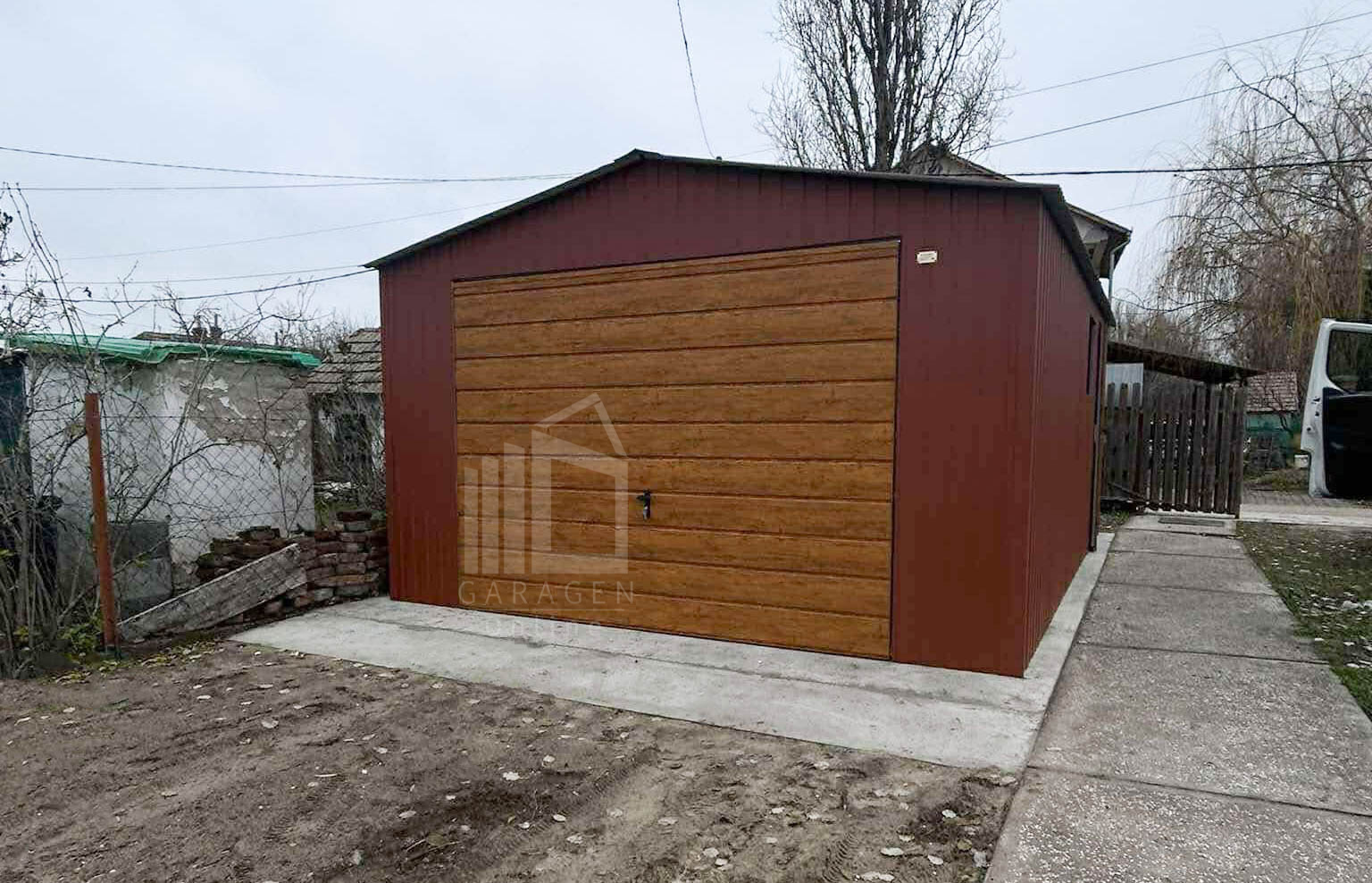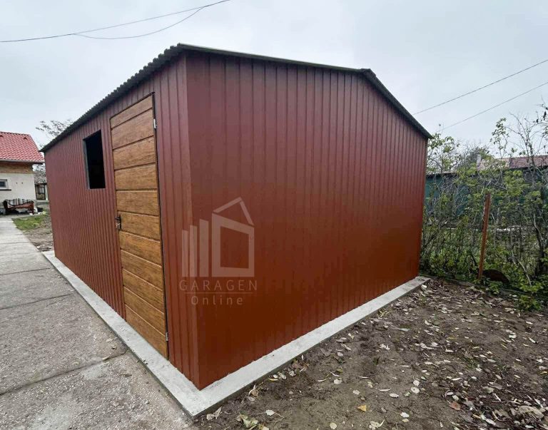 Blechgarage 4,5x6m Schwingtor – Tür – PVC Kippfenster – Holzoptik – Satteldach ID933