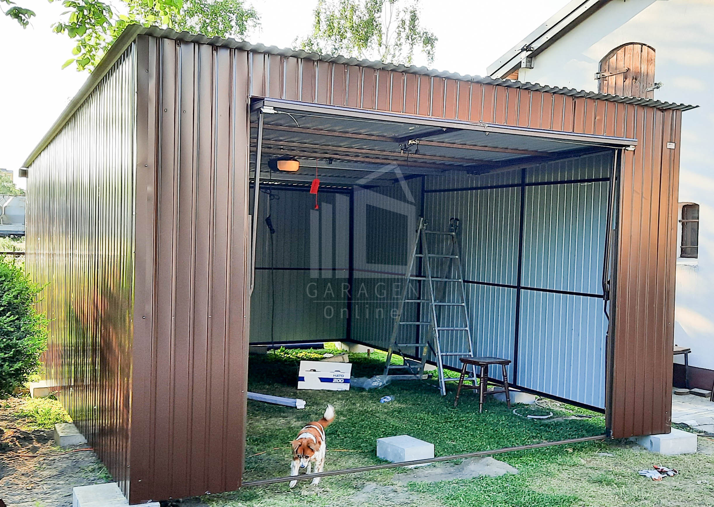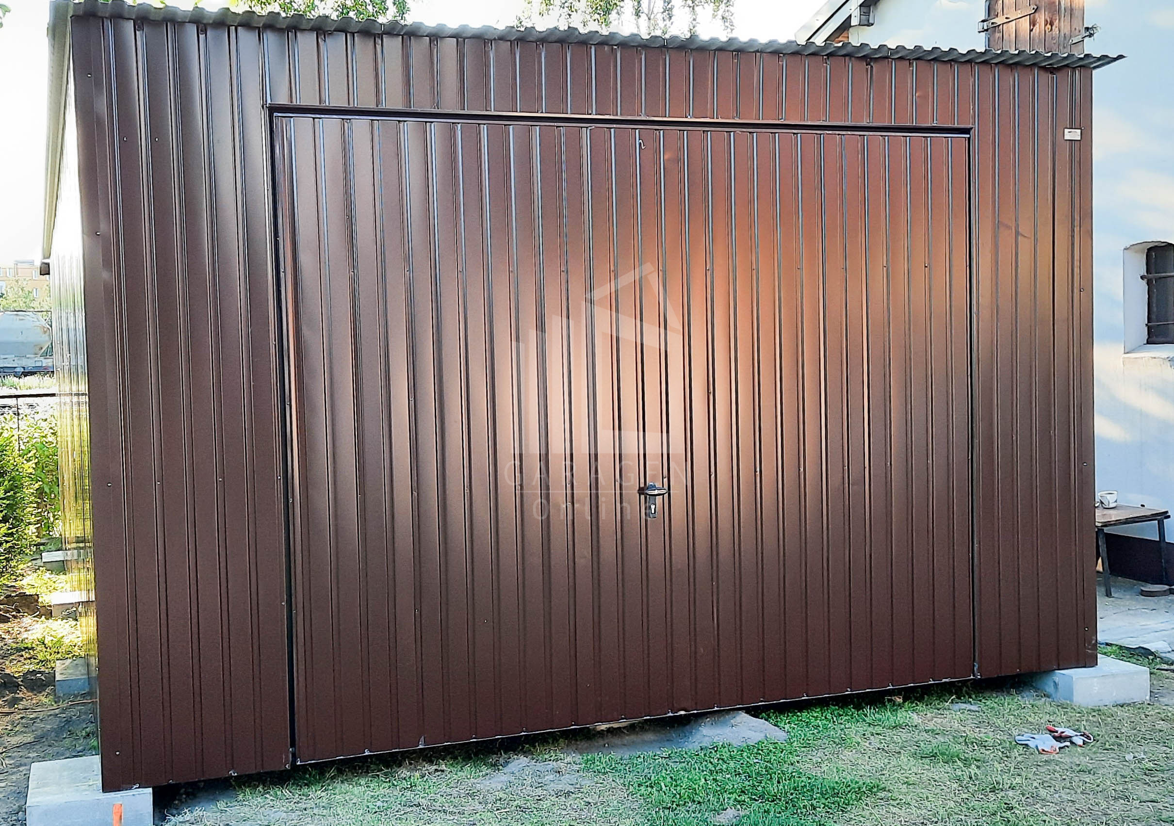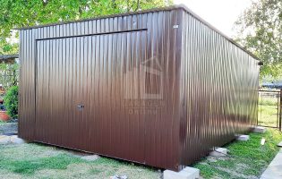 Blechgarage 4x6m Horizontal Blech Schwingtor Dunkles Braun Pultdach ID145