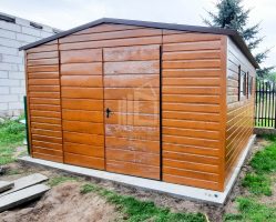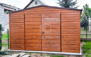 Gartenhaus 4x4m Satteldach Schwingtor Holzoptik 2x PVC Kippfenster ID155