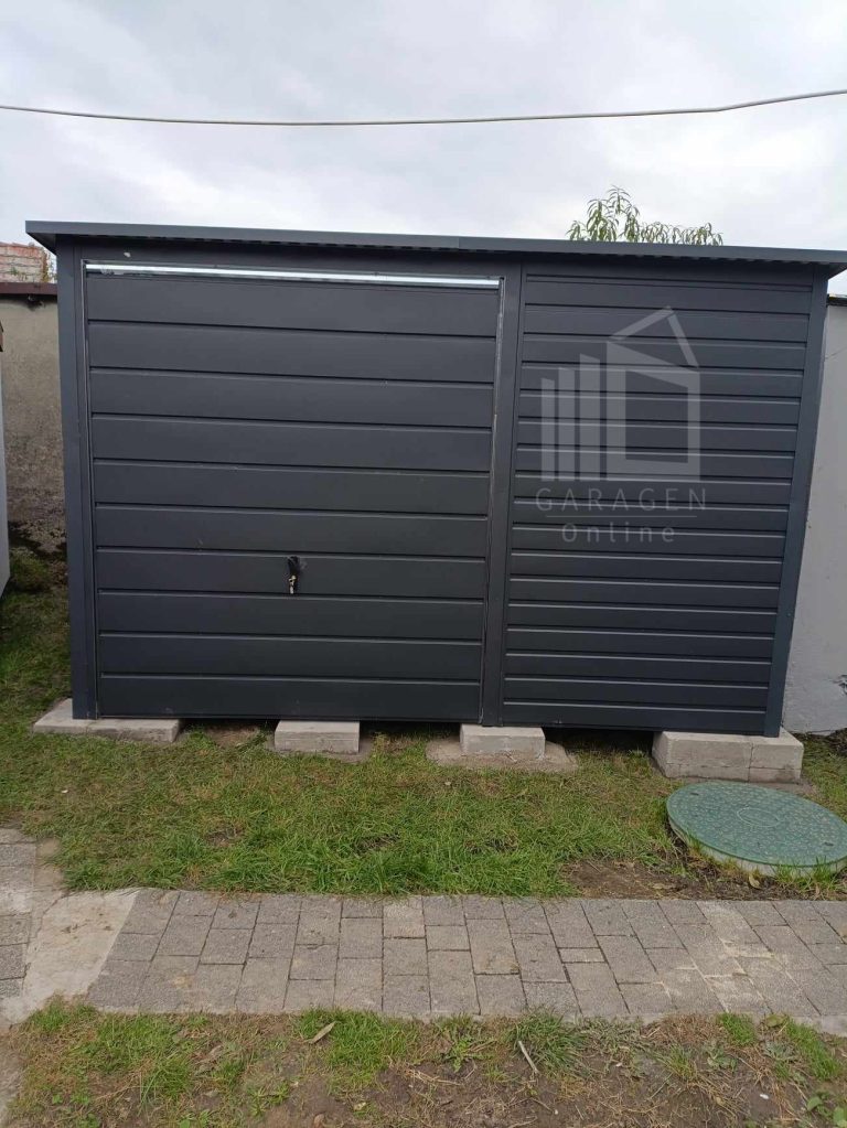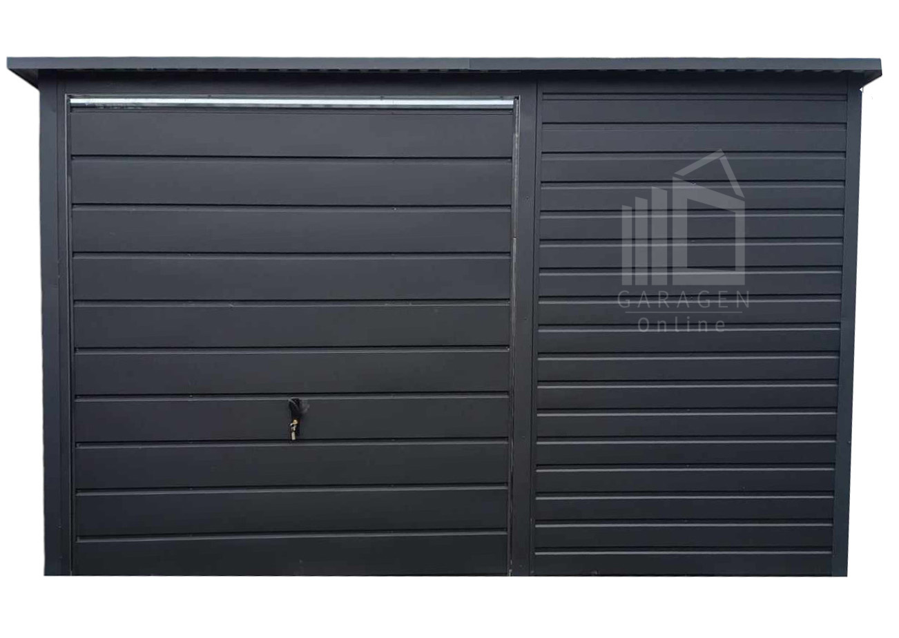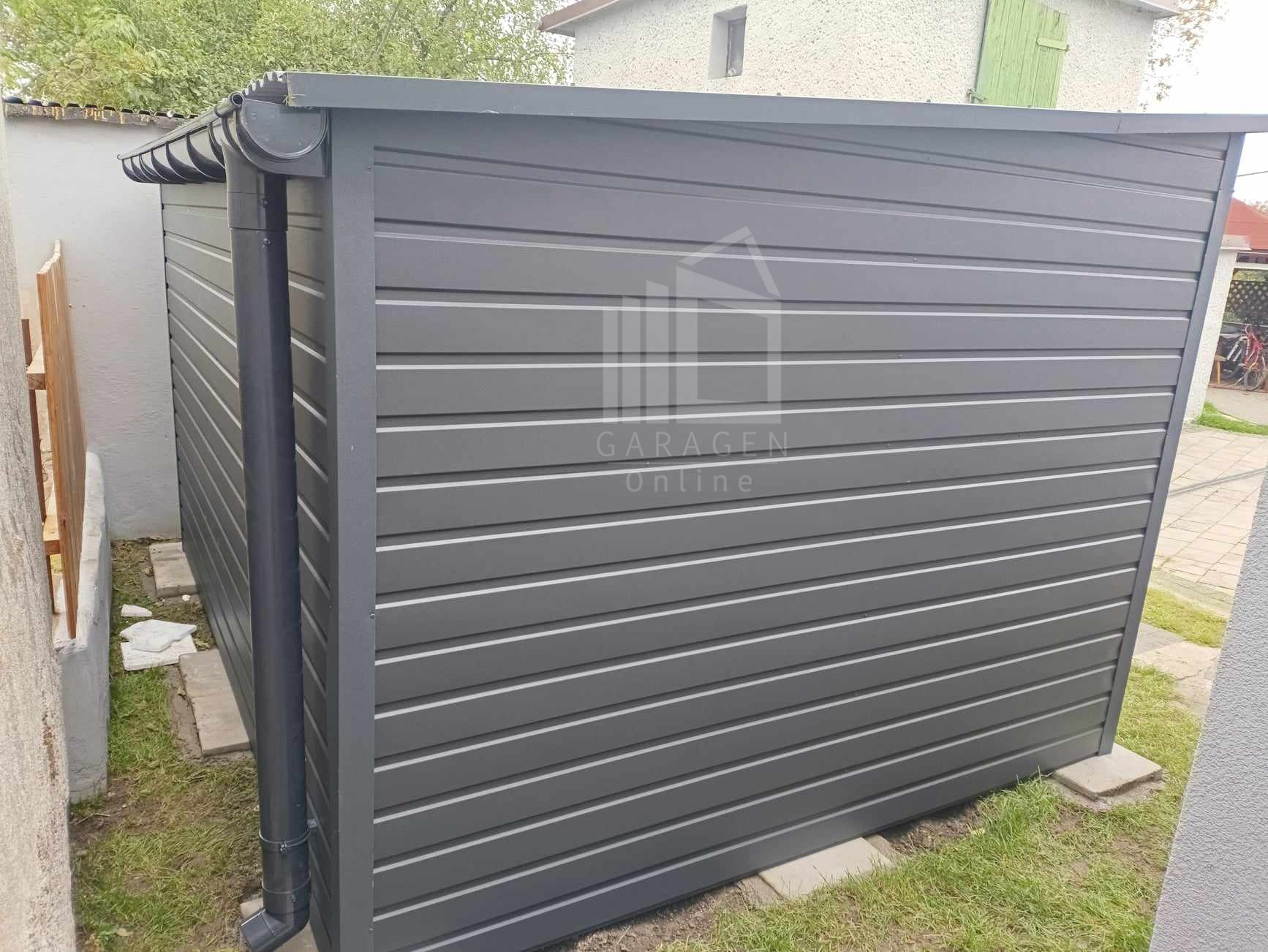 Gartenhaus – Garage – 3,5x3m Gartenschuppen – Schwingtor – Anthrazit – Dachrinnen – Flachdach ID764