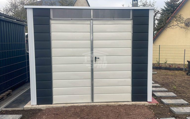 Gartenhaus – Gartenschuppen 2,5x3m – Zweiflügeliges Tor – Lichtband – Anthrazit – Weiß – Flachdach | GP527 |
