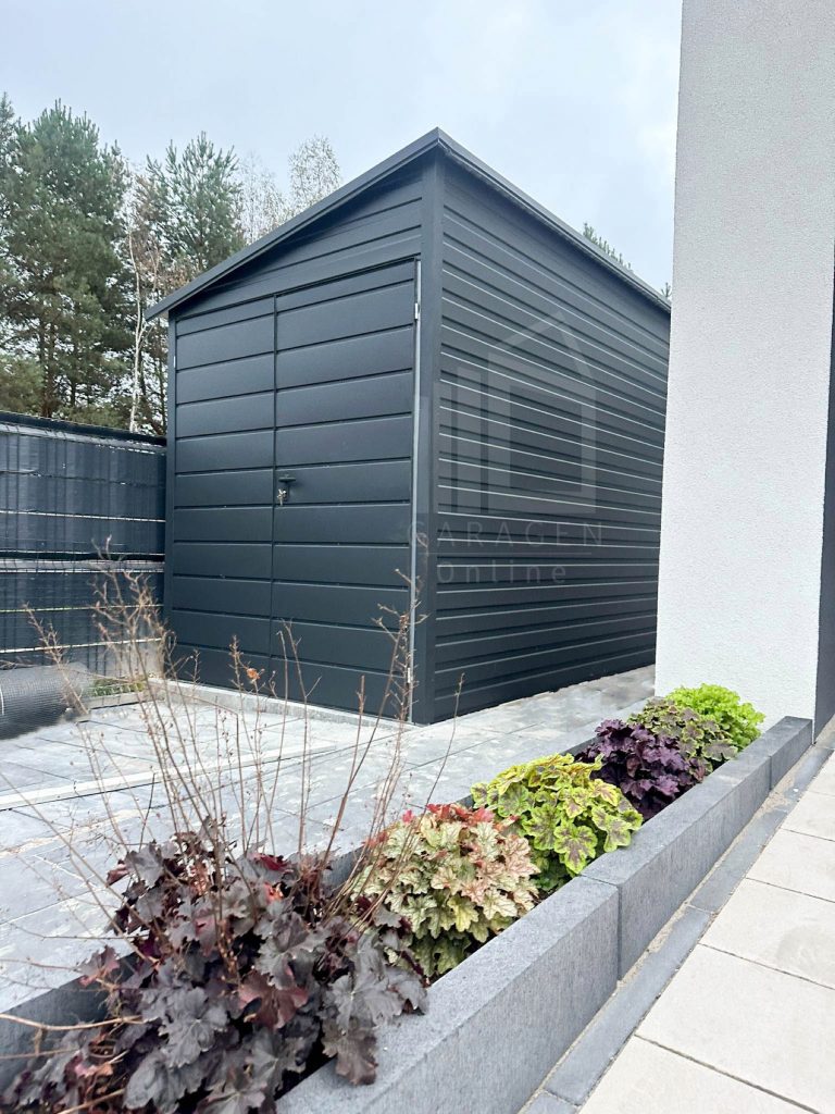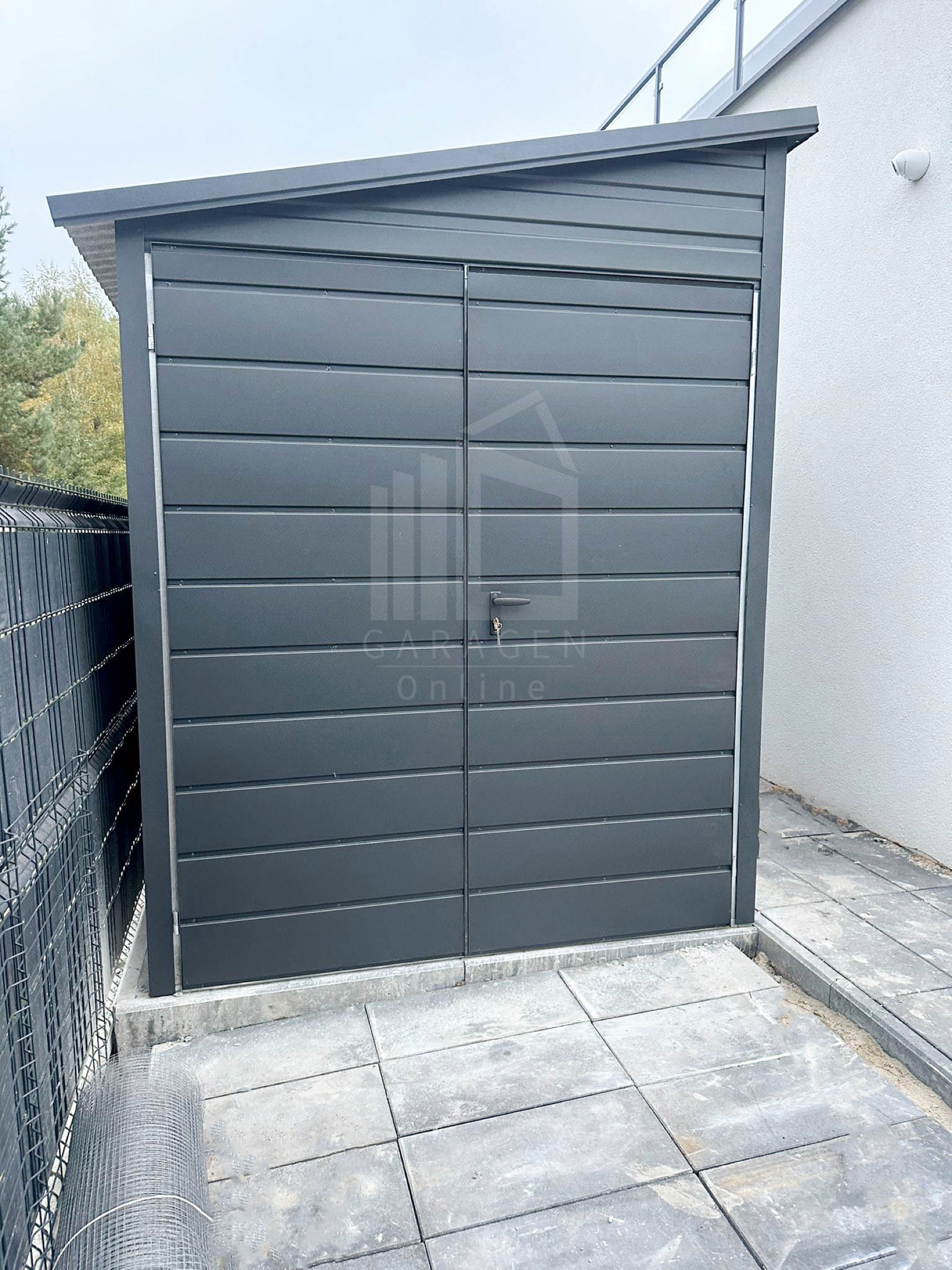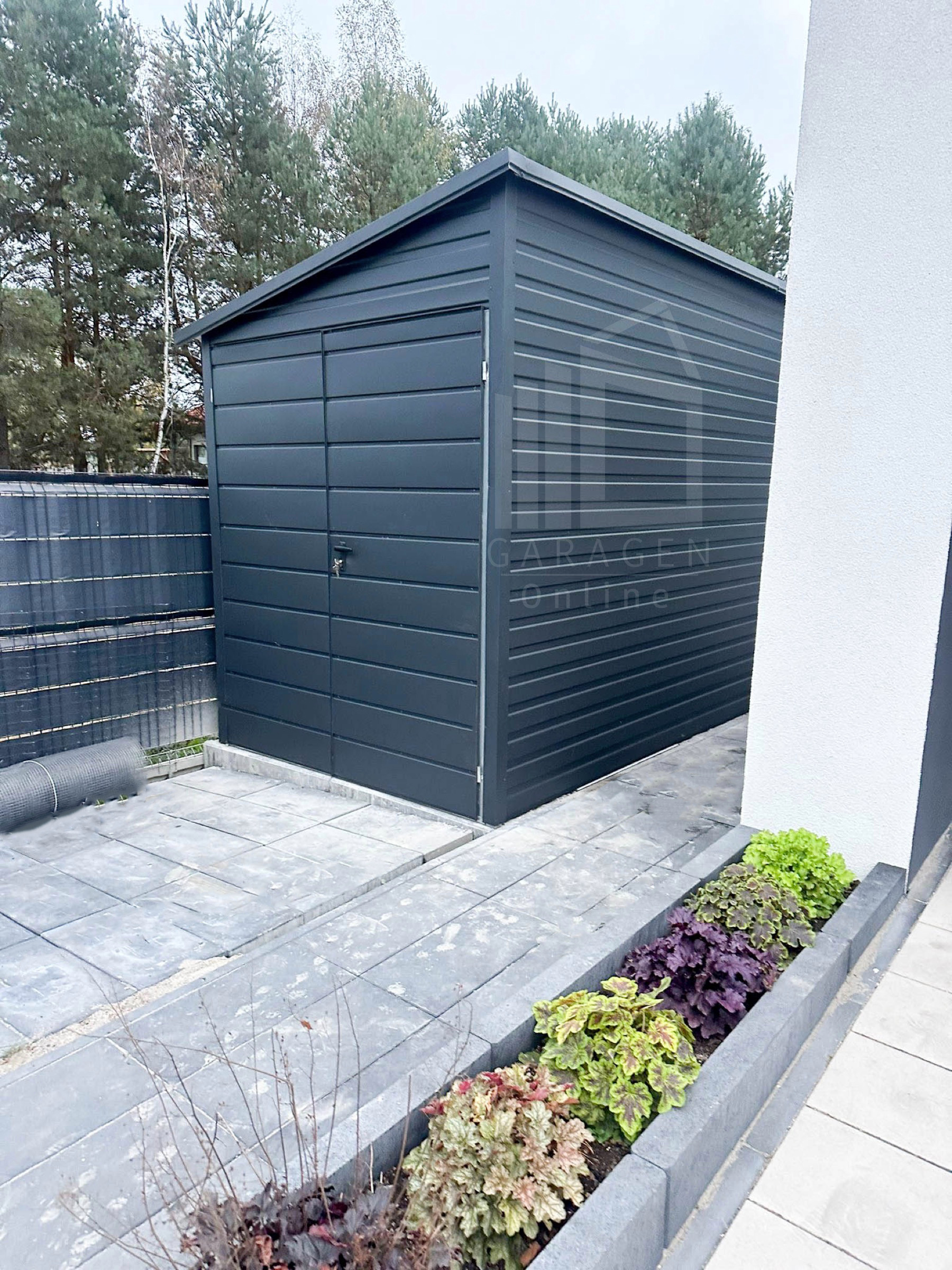 Gartenhaus – Gartenschuppen 2x5m – Zweiflügeliges Tor – PVC Kippfenster – Anthrazit – Dach mit seitlichem Gefälle ID689