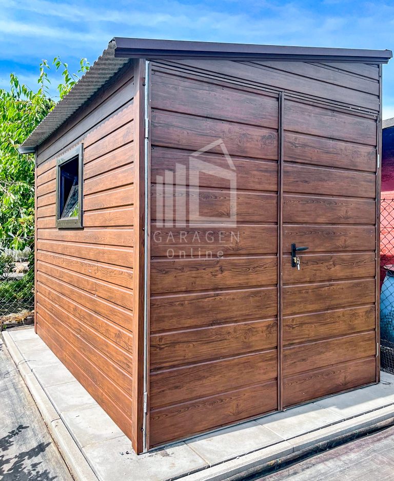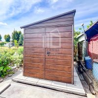 - Zweiflügeliges Tor 200×200 cm Horizontal Blech T17 Farbe: Dunkles Walnussholz