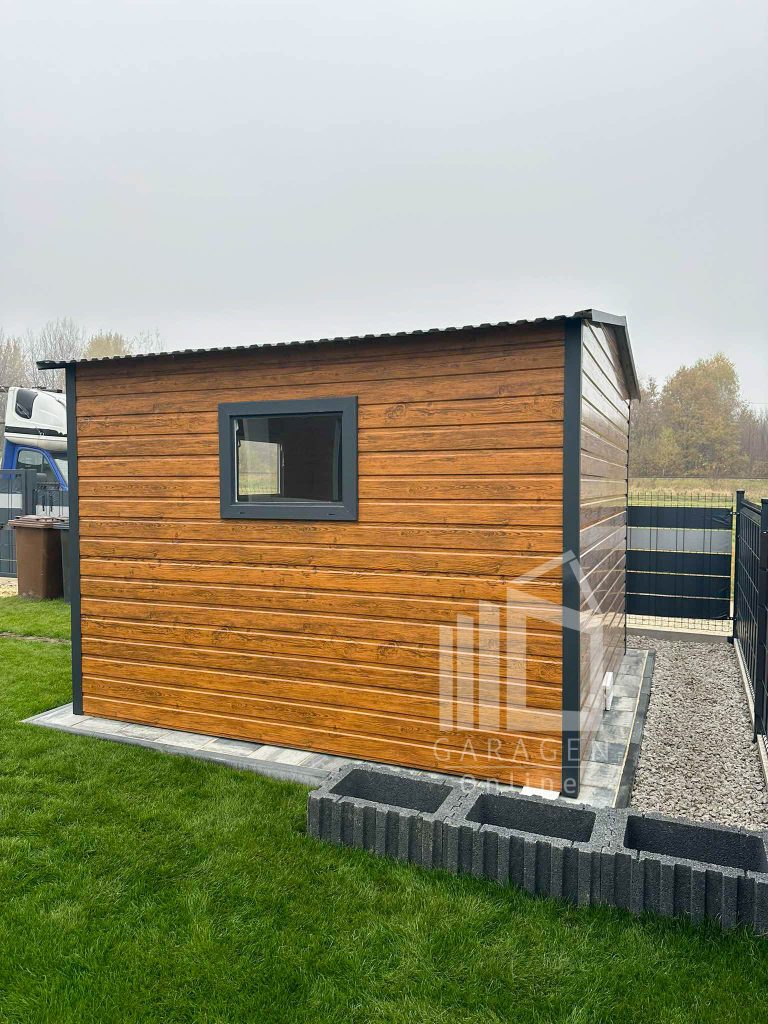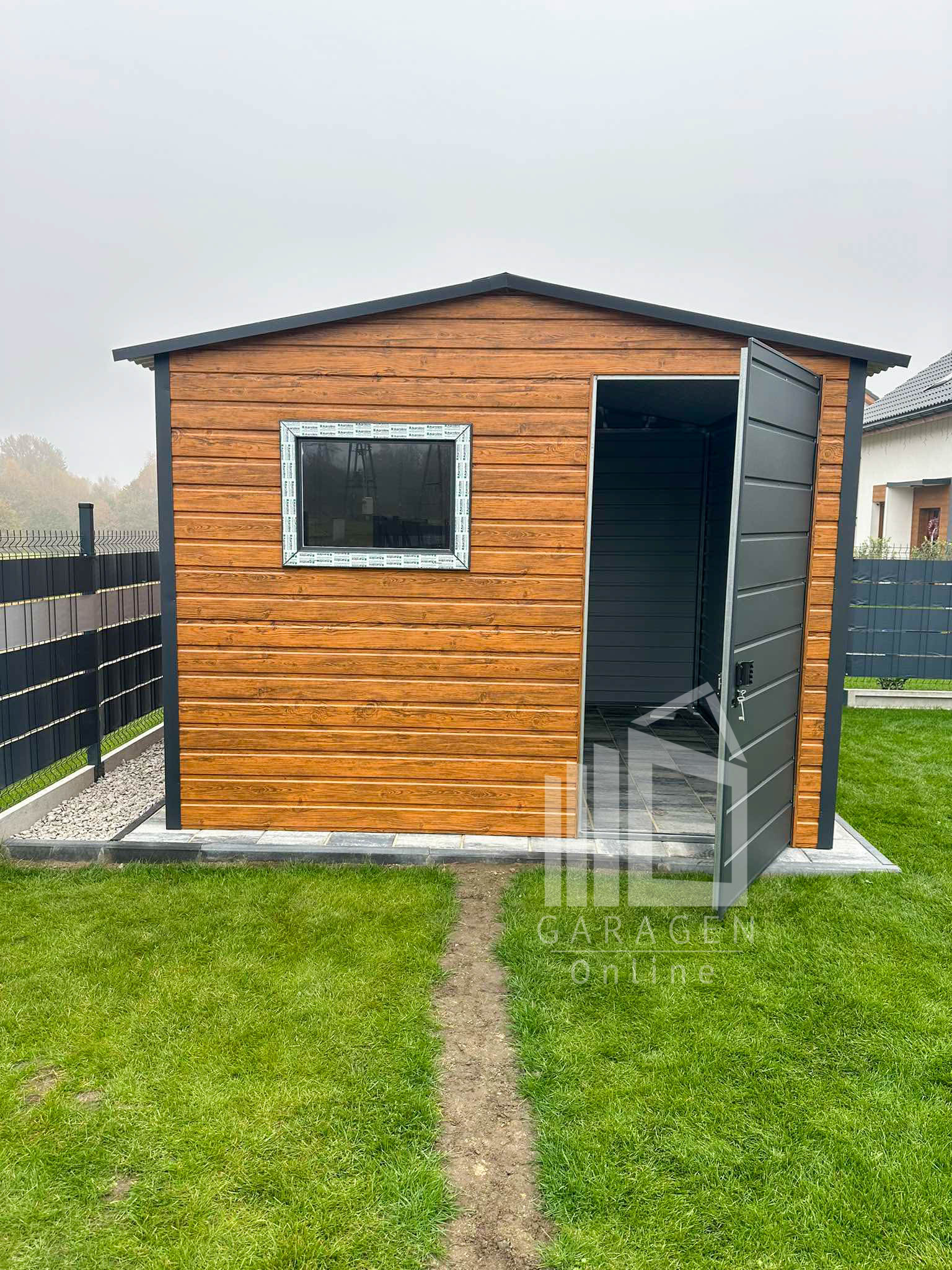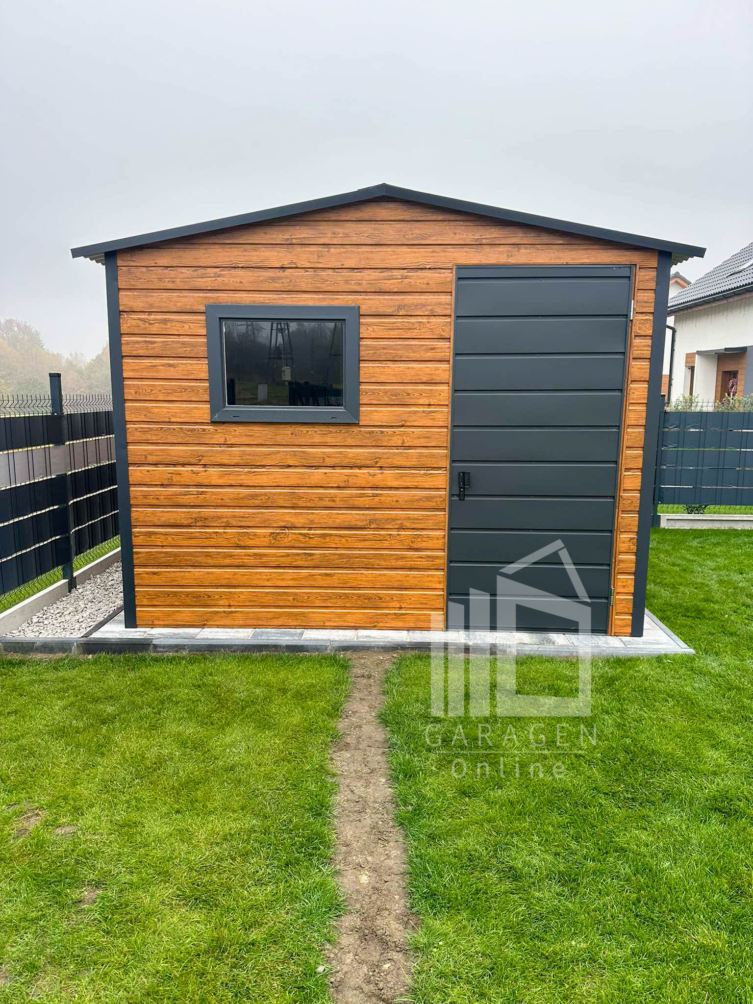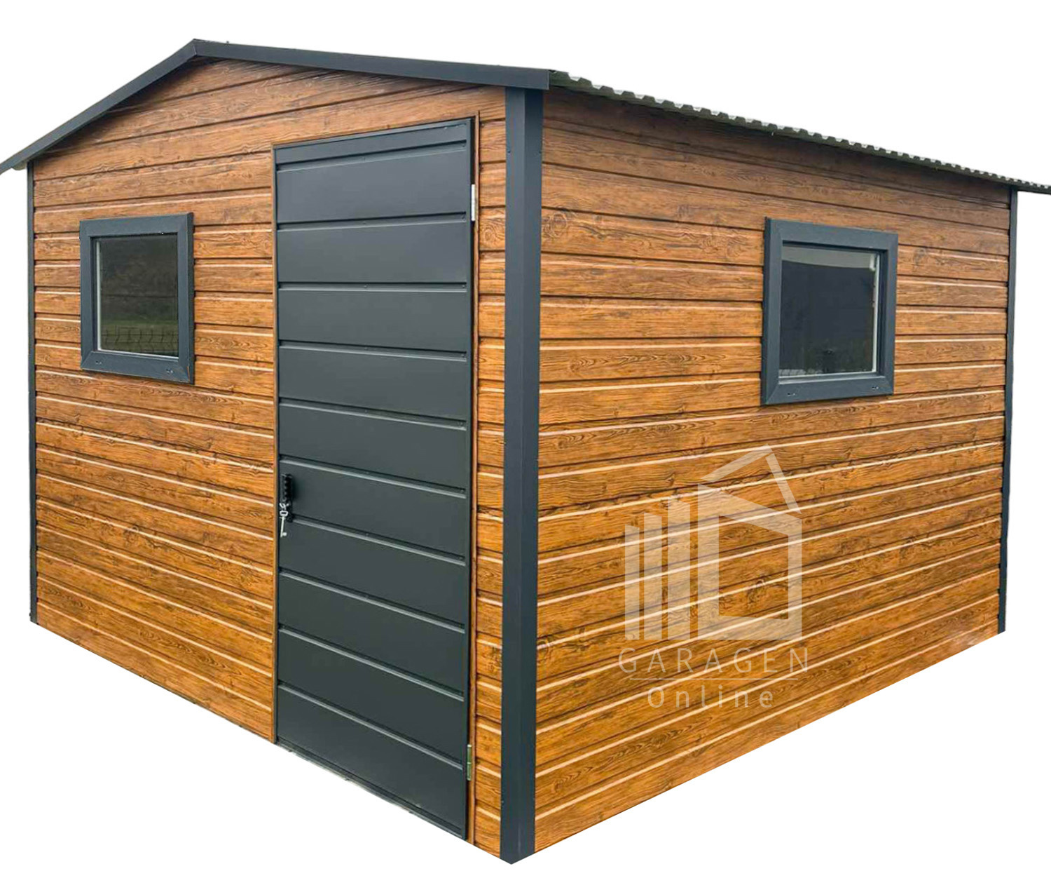 Gartenhaus – Gartenschuppen 3x3m – Tür – 2x PVC Kippfenster – Holzoptik – Satteldach ID811