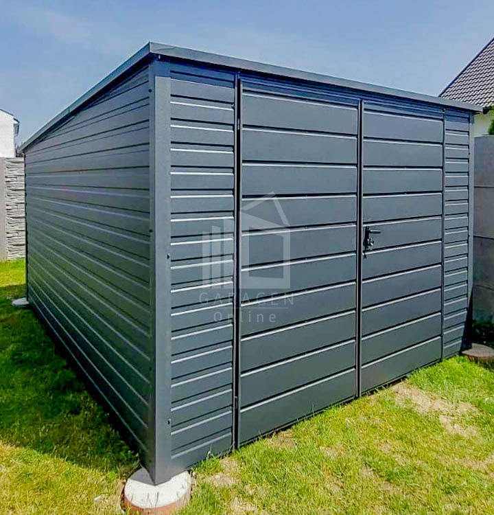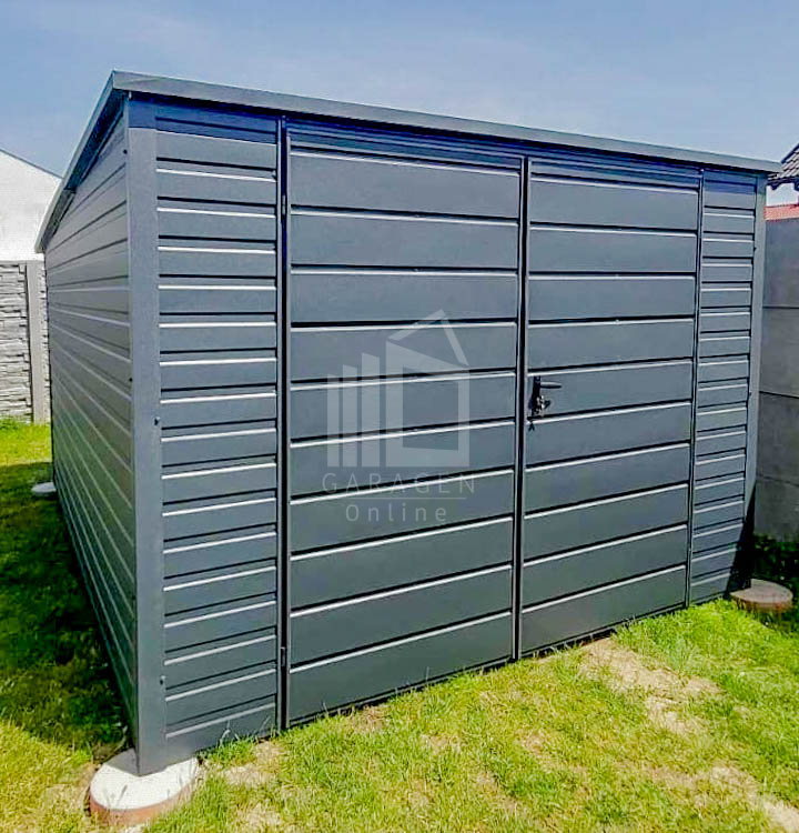 Gartenhaus – Gartenschuppen 3×4,5m – Zweiflügeliges Tor – Anthrazit – Flachdach | GP434 |
