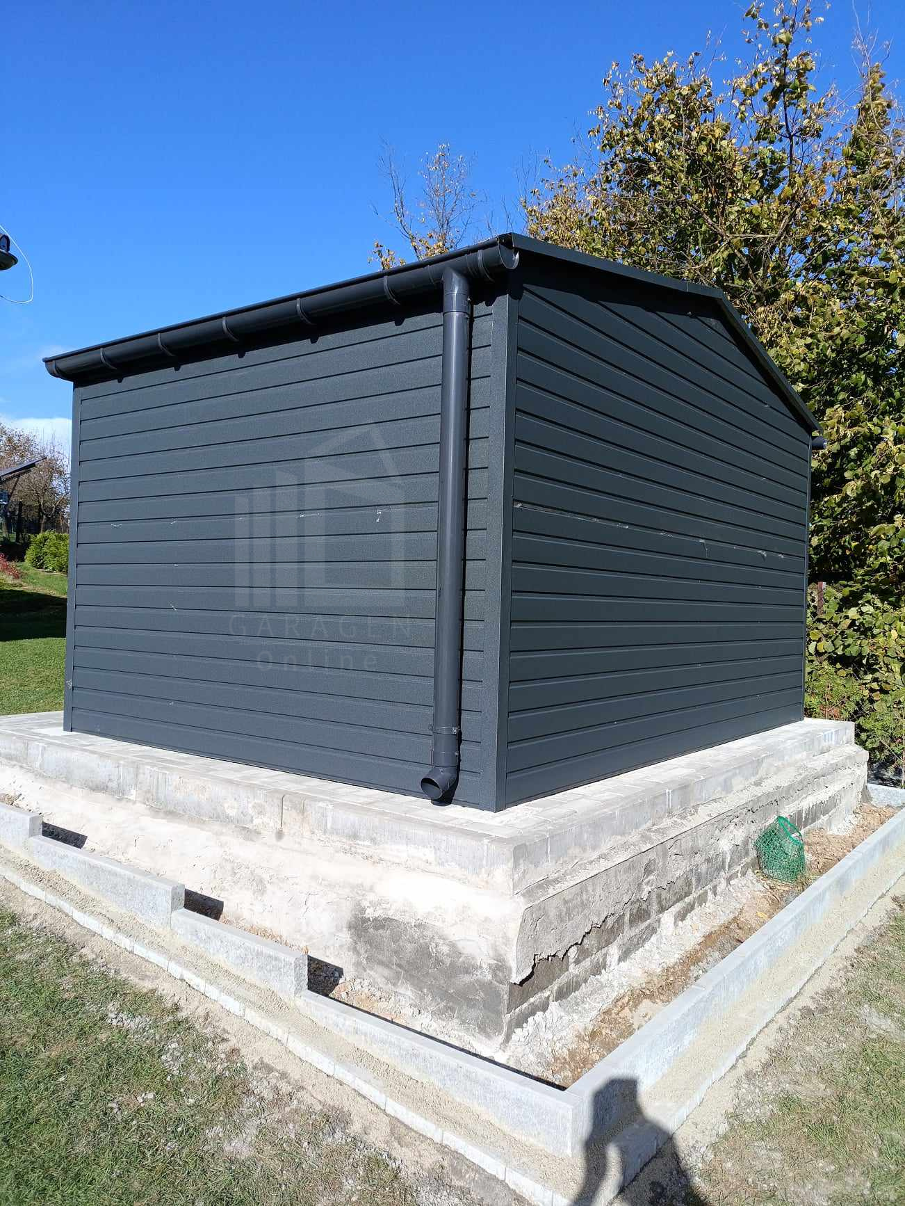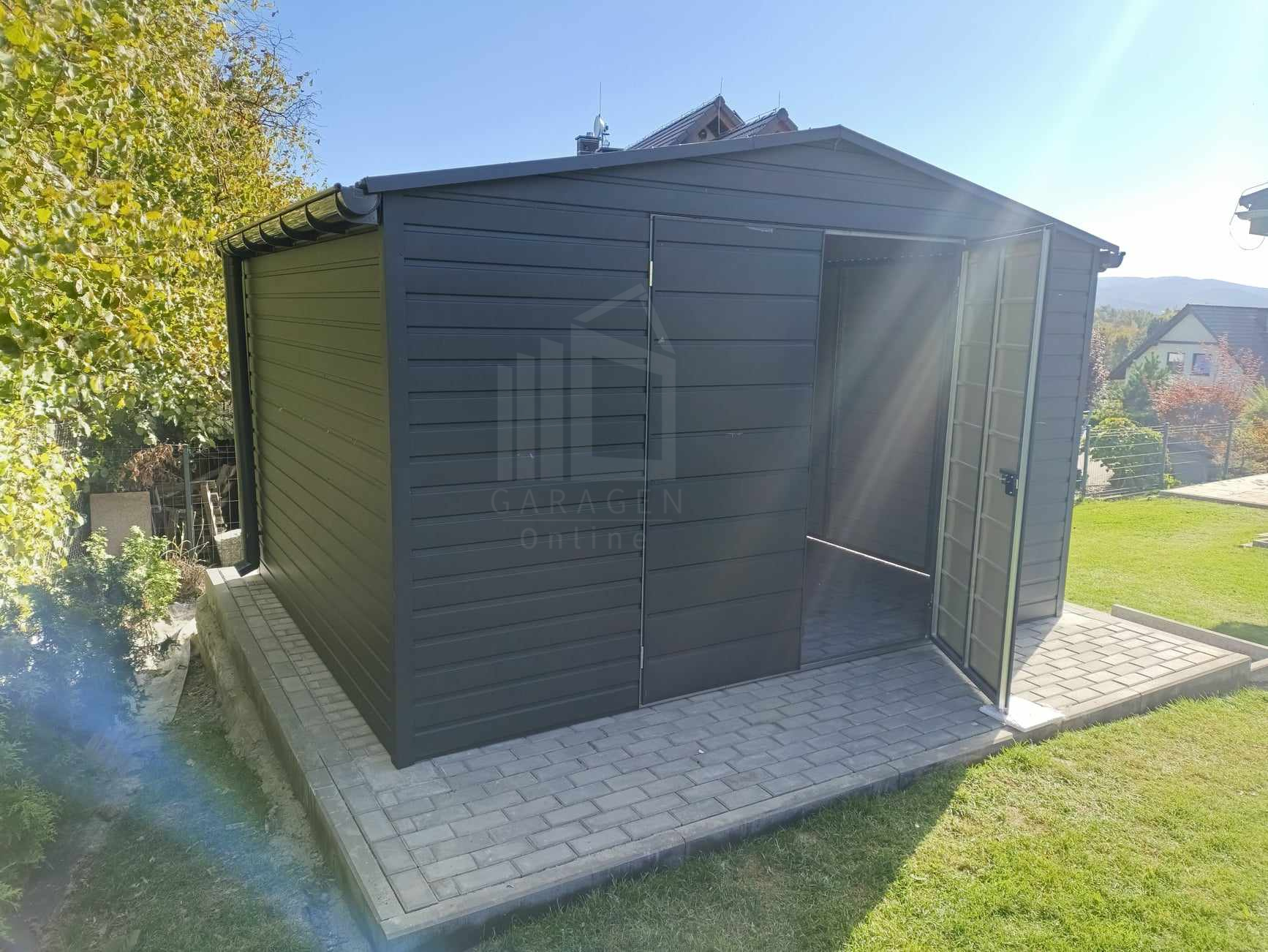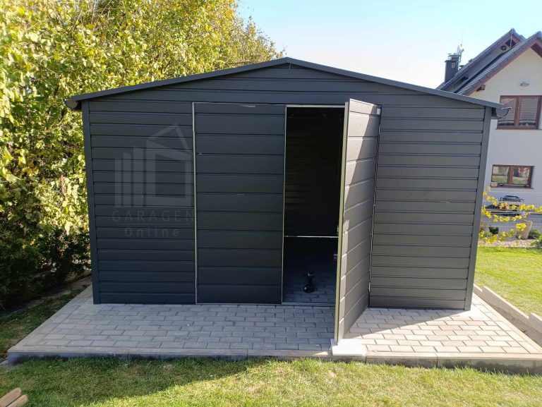 Gartenhaus – Gartenschuppen 4,5×3,5m – Zweiflügeliges Tor – Anthrazit – Dachrinnen – Satteldach ID761