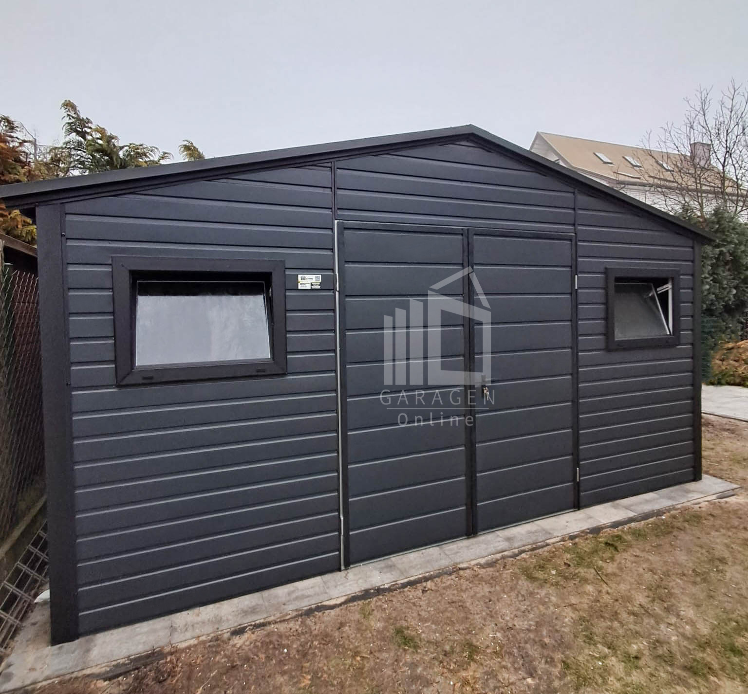 - Zweiflügeliges Tor 180×200 cm Horizontal Blech T17 Farbe: Anthrazit Matte 7016 + Türverkleidungen Farbe Schwarz BTX 9005