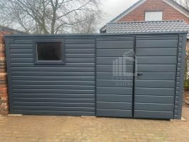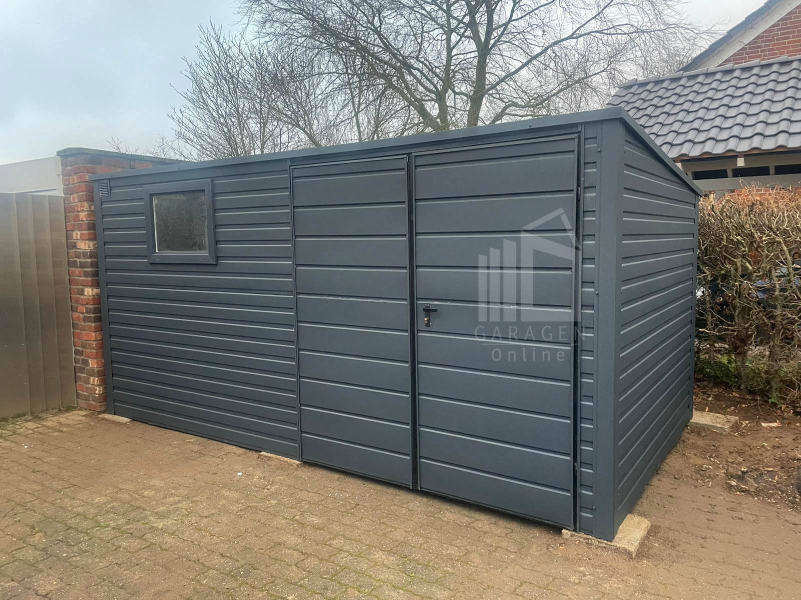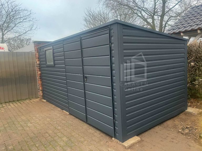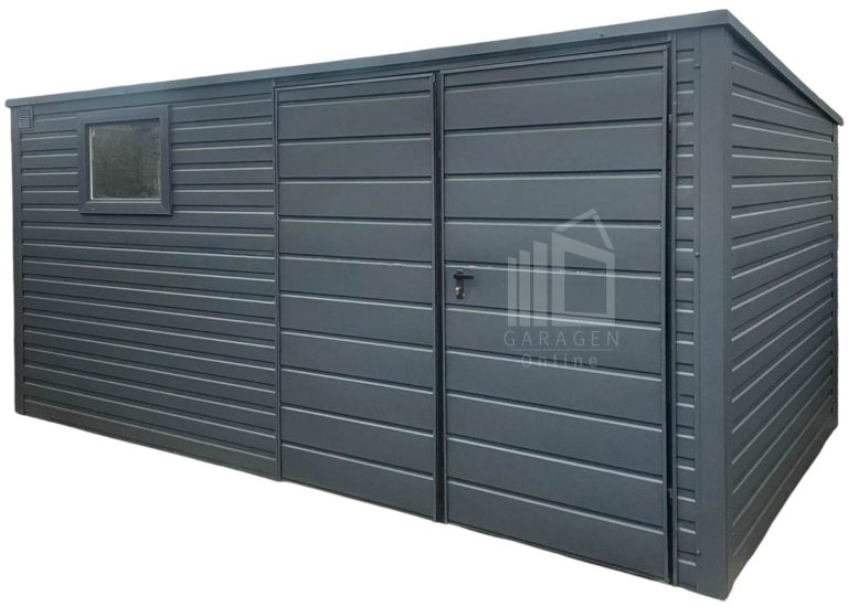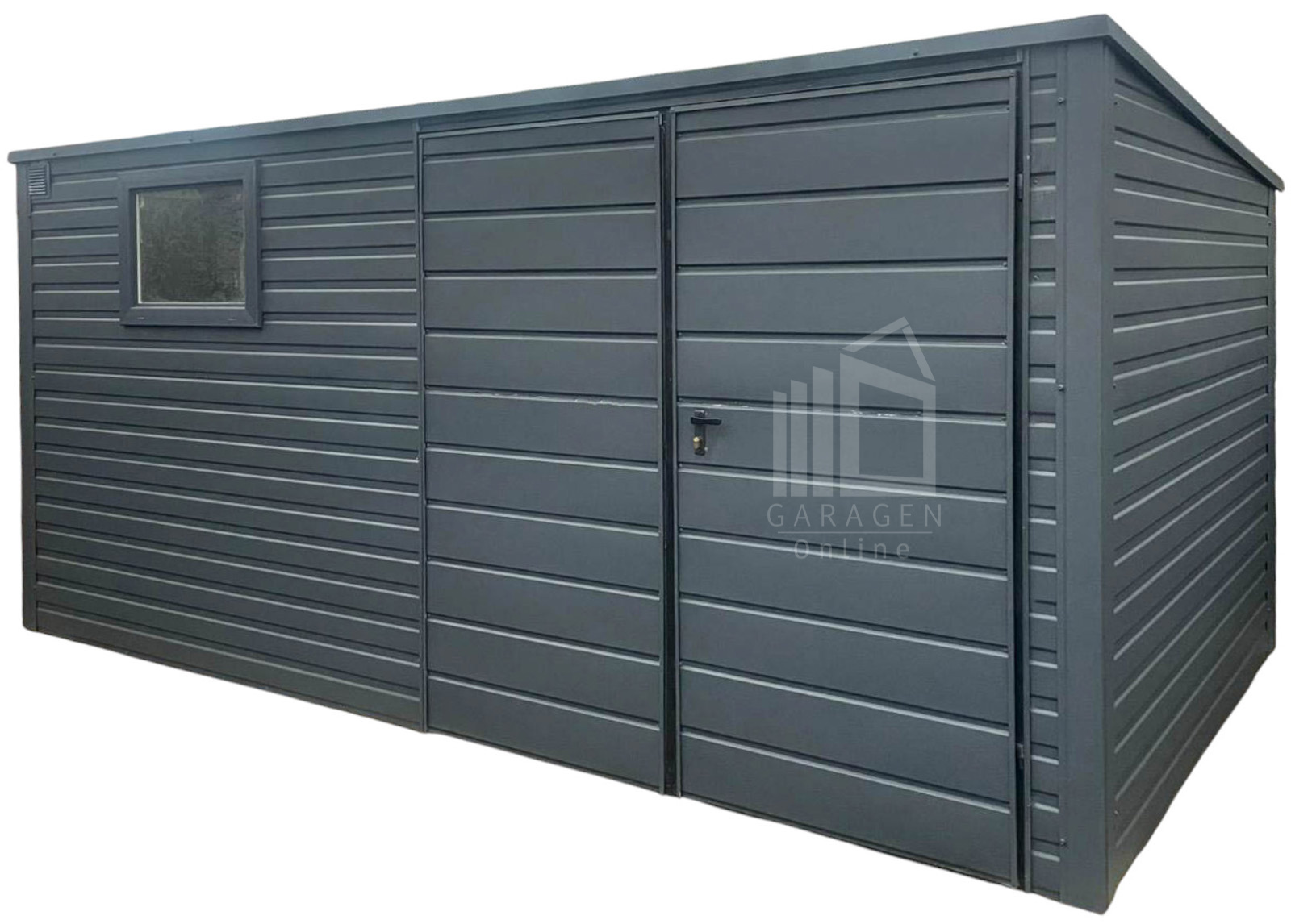 Gartenhaus – Gartenschuppen 4x2m Zweiflügeliges Tor – PVC Kippfenster – PVC Kippfenster – Anthrazit – Flachdach | GP528 |