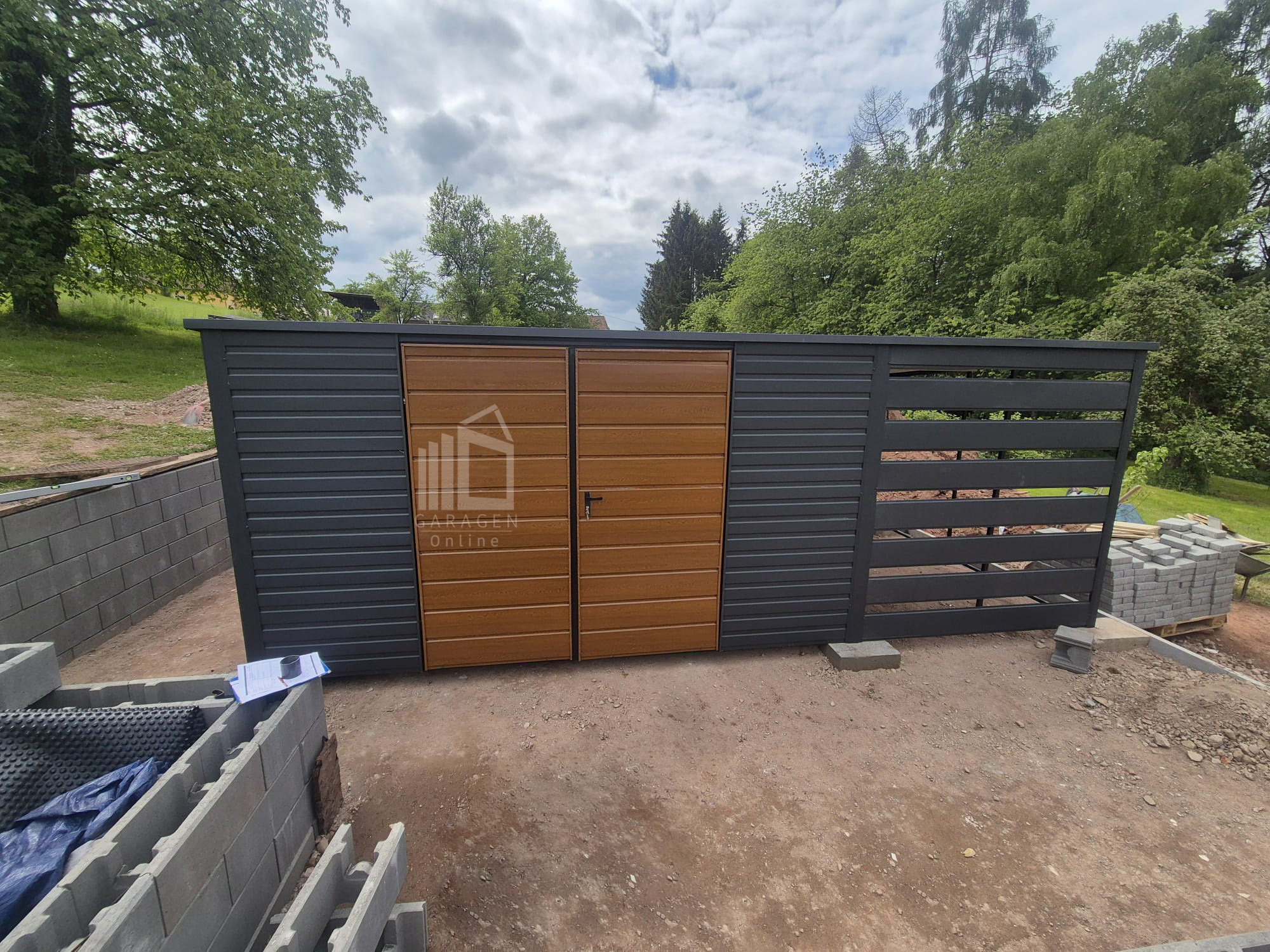 • und Vorderwand sind mit Paneelen verkleidet. Farbe: Anthrazit Matte 7016