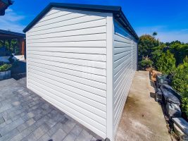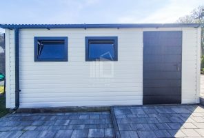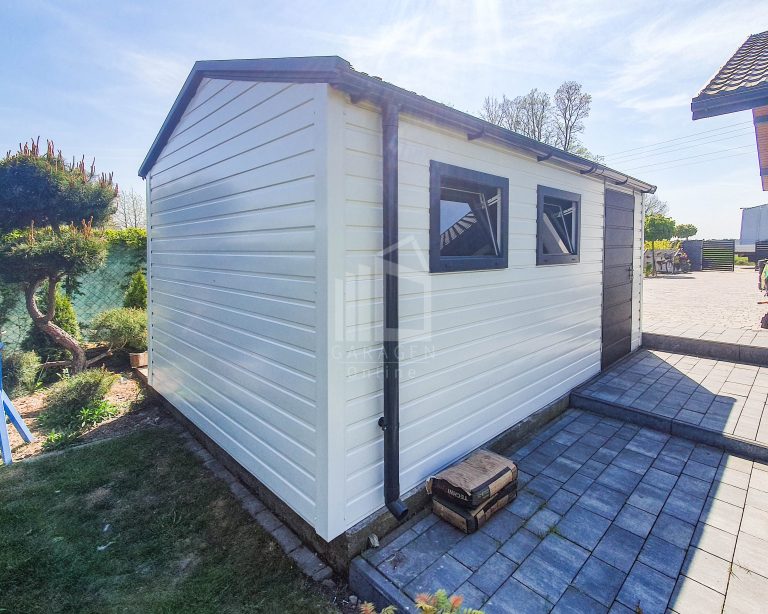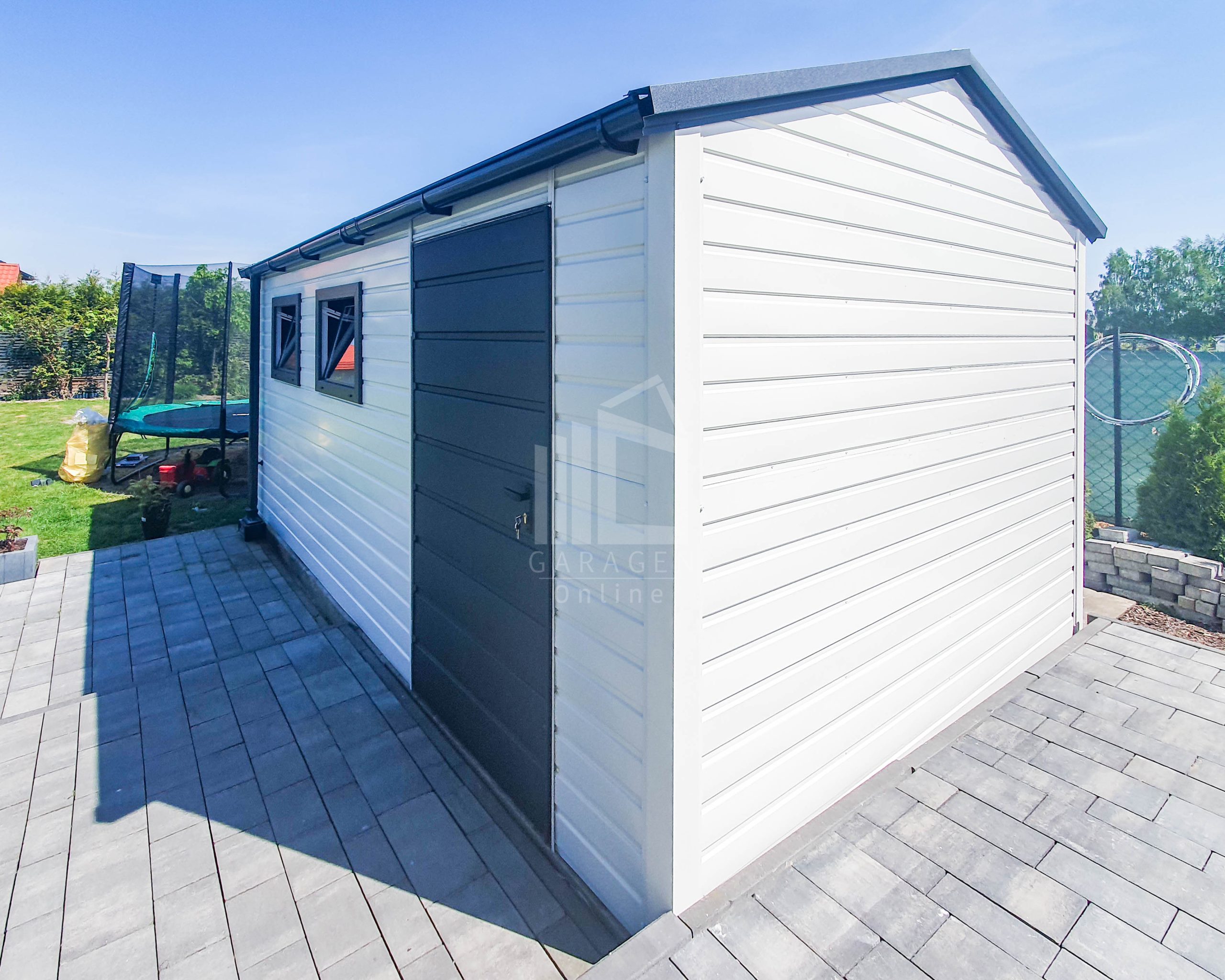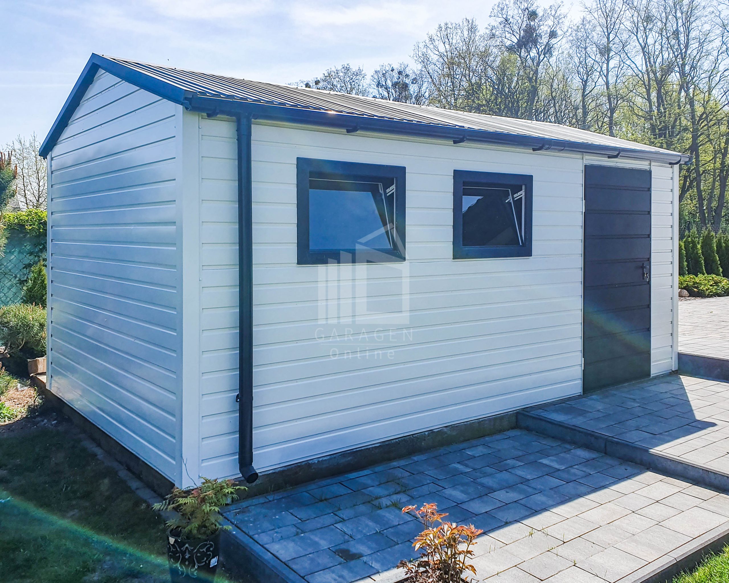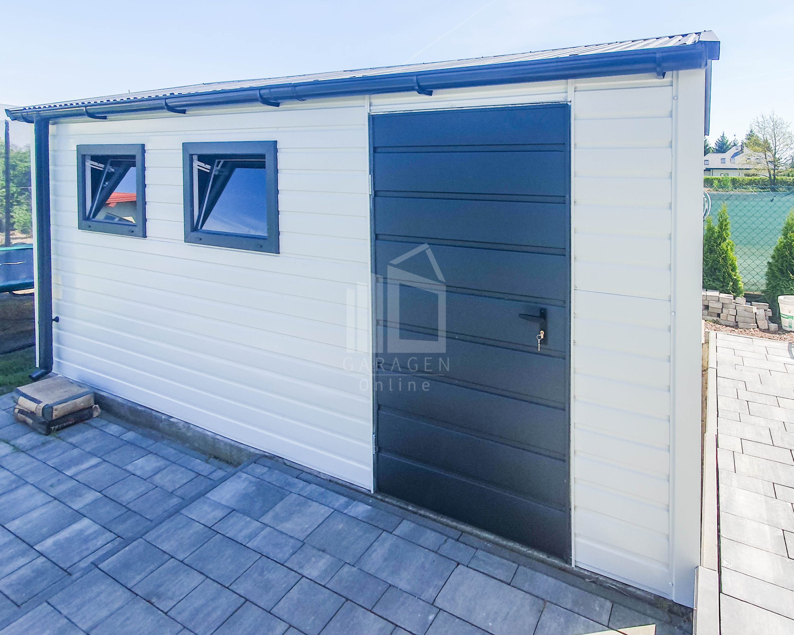 Gartenhaus – Gartenschuppen 5x4m – Tür – 2x PVC Kippfenster – Weiß – Anthrazit – Dachrinnen – Satteldach ID650
