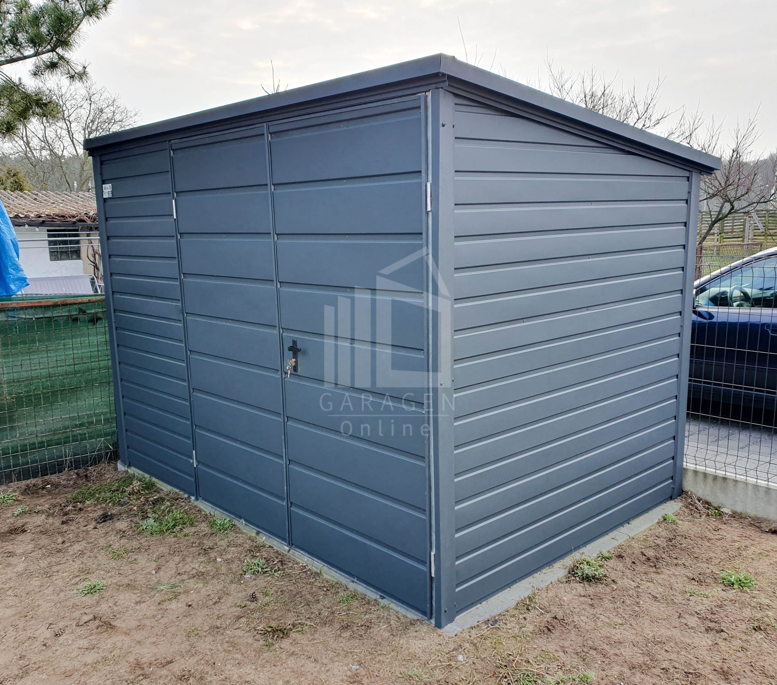 Gartenhaus – Schuppen 2,5x2m – Zweiflügeliges Tor – Anthrazit – Flachdach ID537
