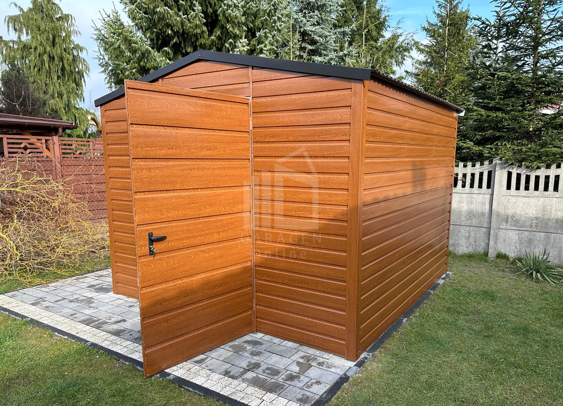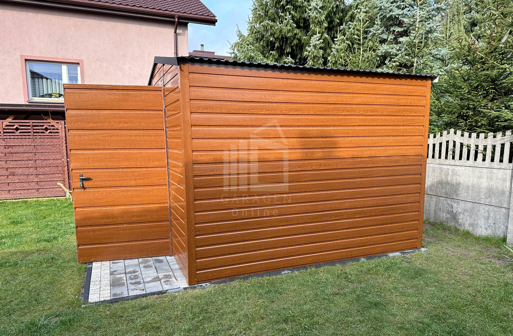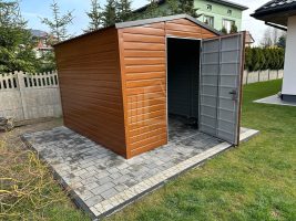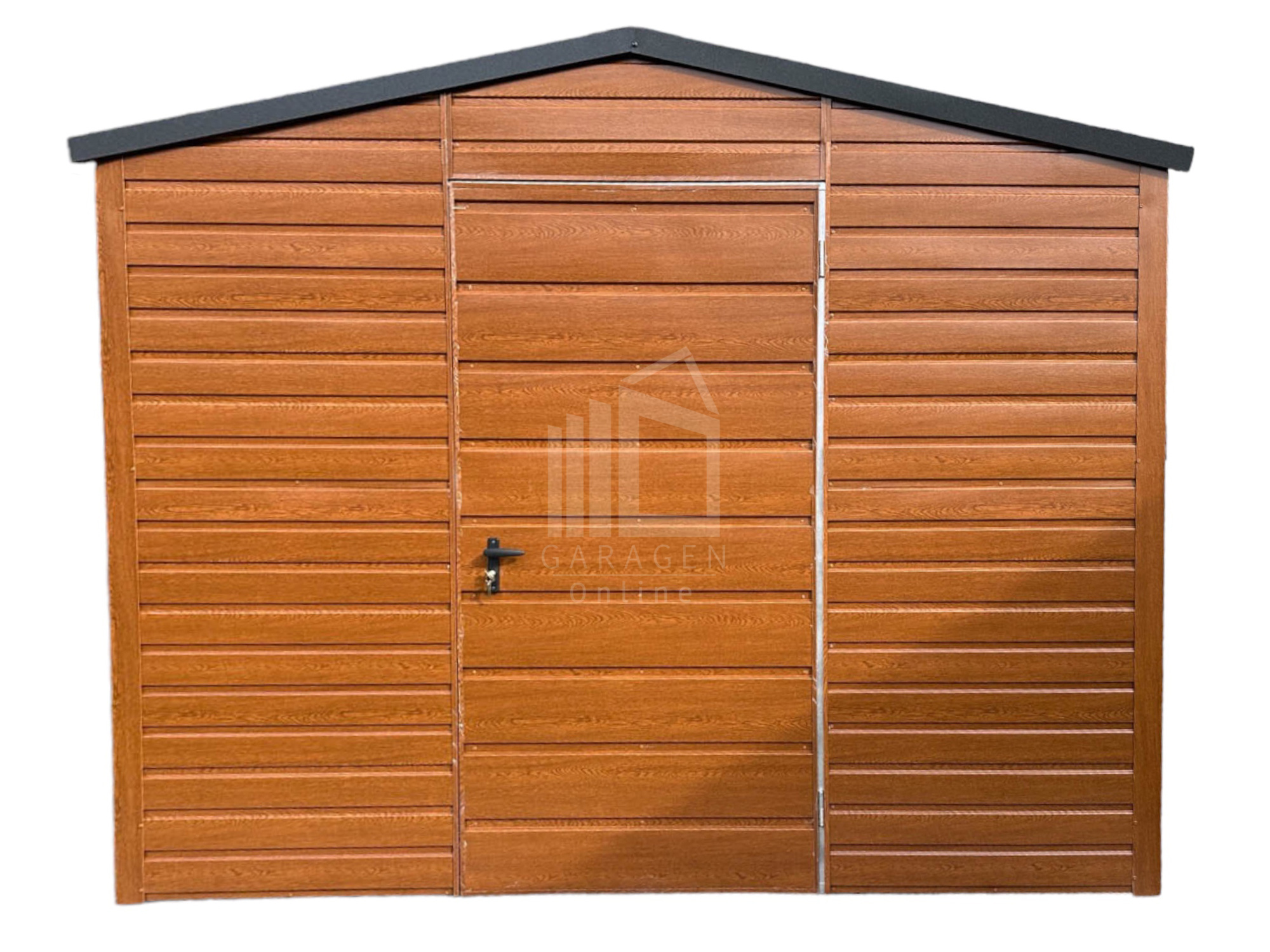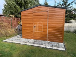 Gartenhaus – Schuppen 3x3m – Tür – Helles Walnussholz – Holzoptik – Verzinkte Konstruktion – Satteldach | ID531 |