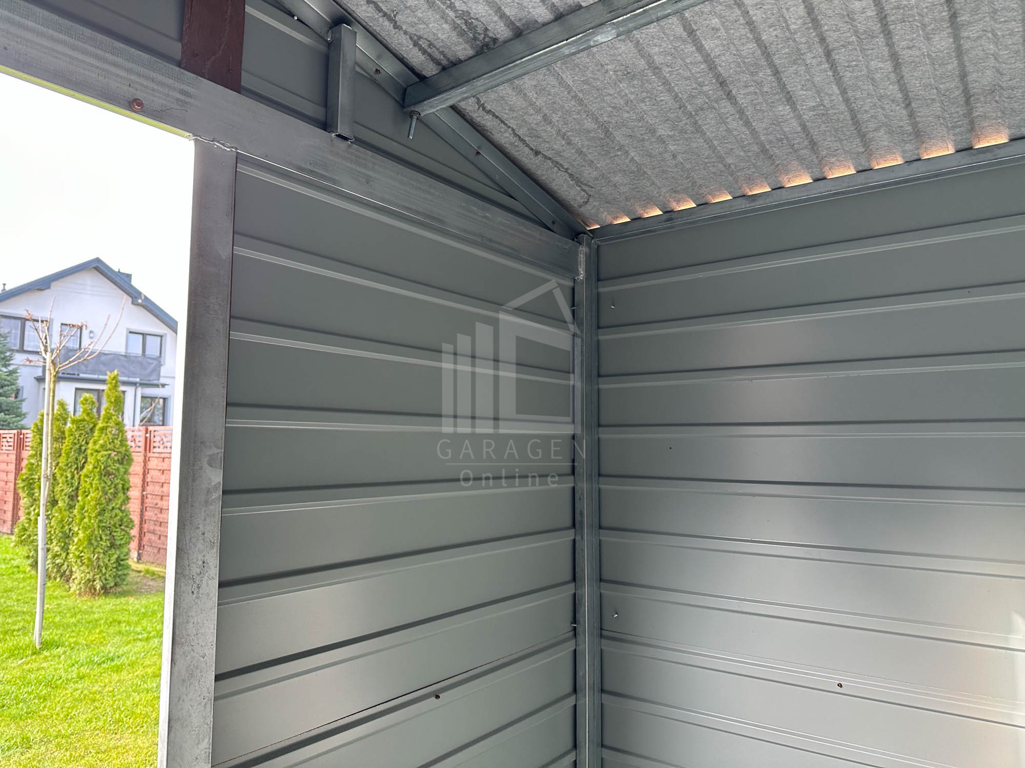 Wir verwenden solide Verstärkungen der Konstruktion aus Winkeln, Trägern und geschlossenen ProfilenVerstärkung des Daches durch einen Stahlrahmen+ Dachkonstruktion aus robusten, geschlossenen, feuerverzinkten Profilen Wir fertigen jede garage nach ihren wünschen. Bitte Kontaktieren sie uns, wenn sie irgendwelche fragen haben.