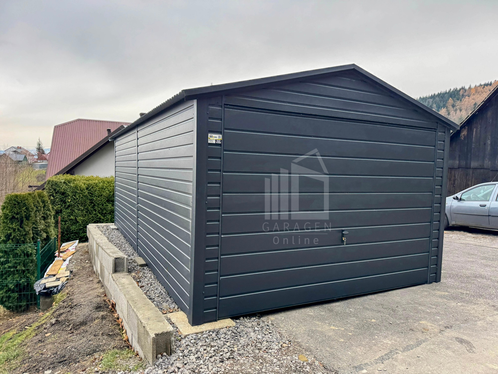 Blechgarage 3,5x6m – Schwingtor – Anthrazit – Satteldach ID887