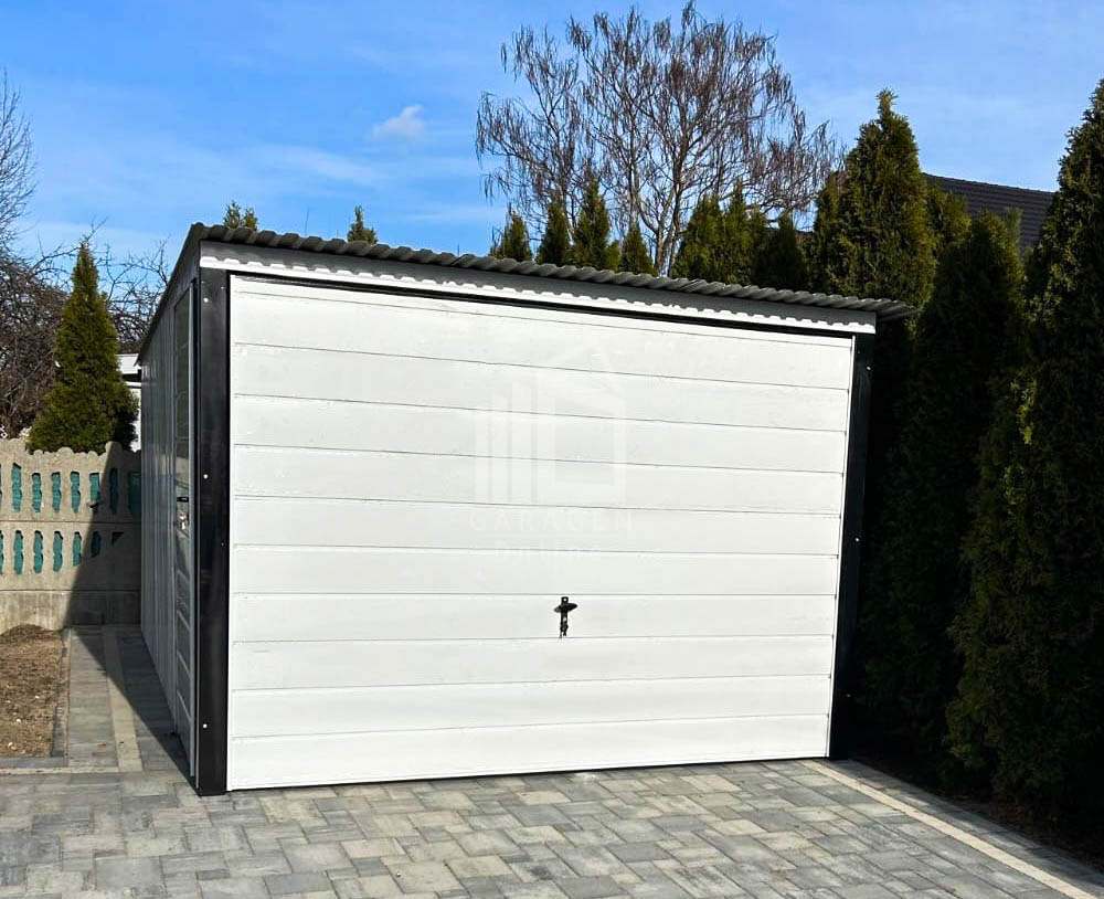 Blechgarage 3x5m – Schwingtor – Tür – Weiß – Flachdach GP275