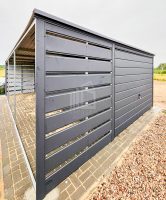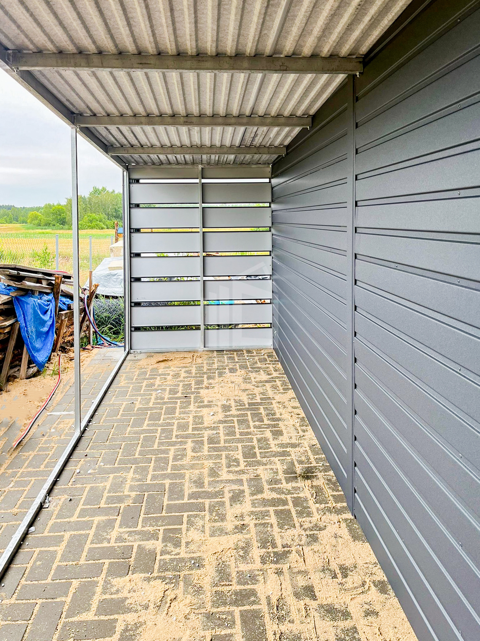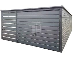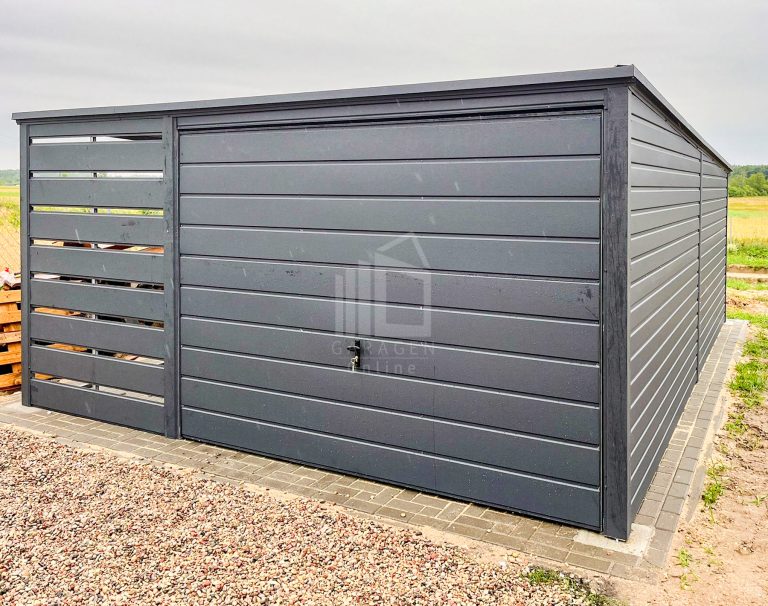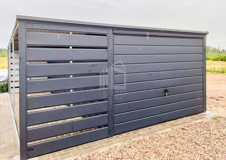 Blechgarage 3x6m + Überdachung 1,2m – Schwingtor – Anthrazit – Flachdach ID674