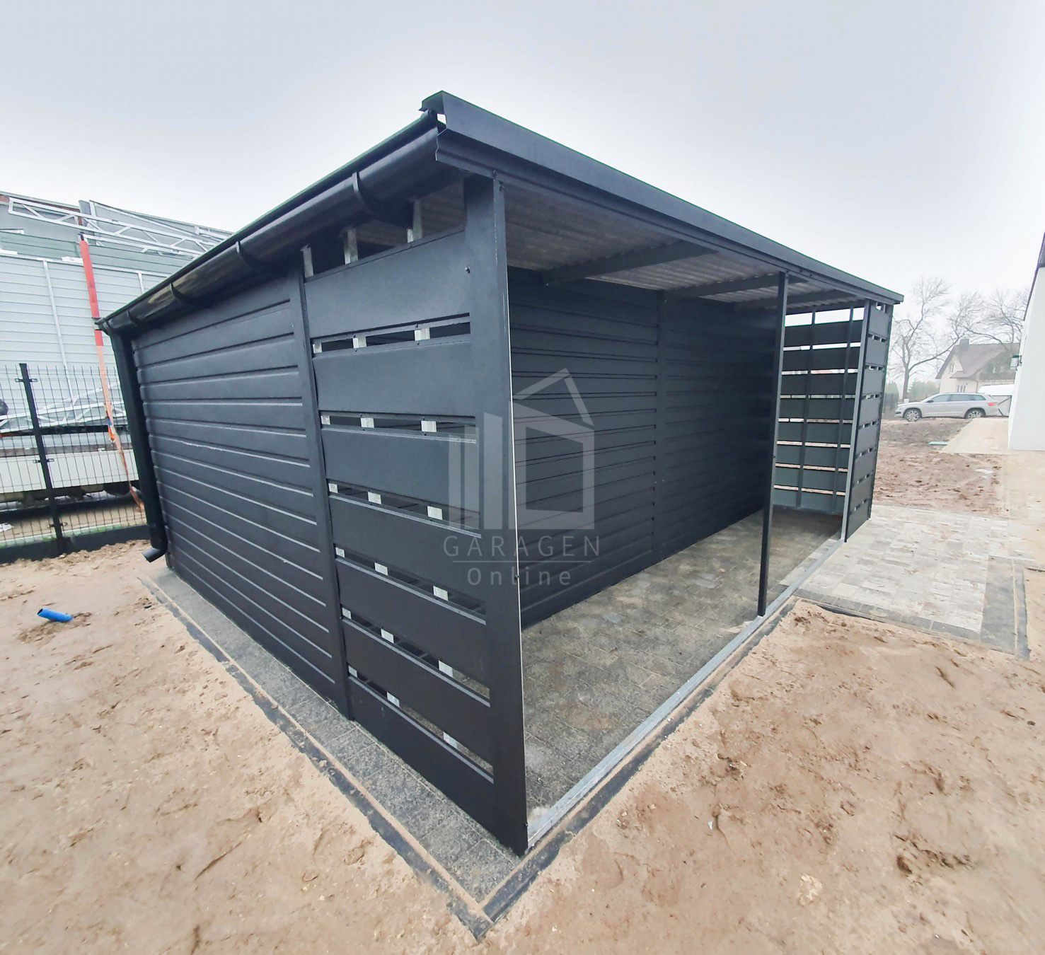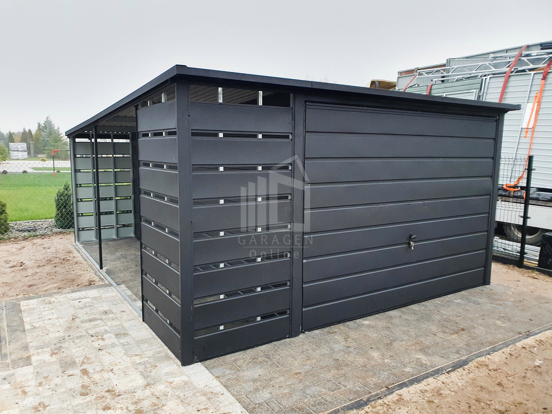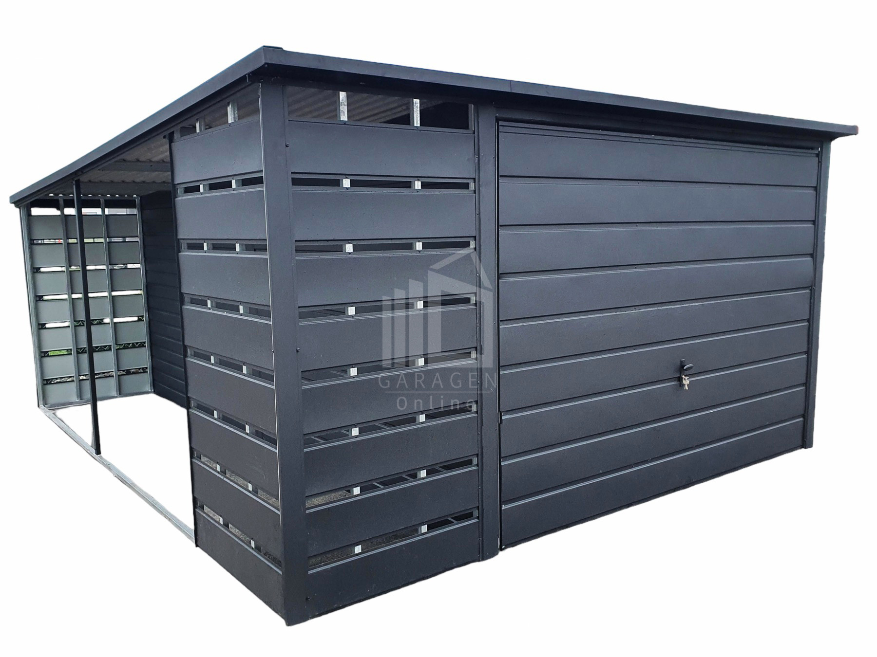 Blechgarage 3x6m Überdachung 1×6 Schwingtor Anthrazit Flachdach ID445