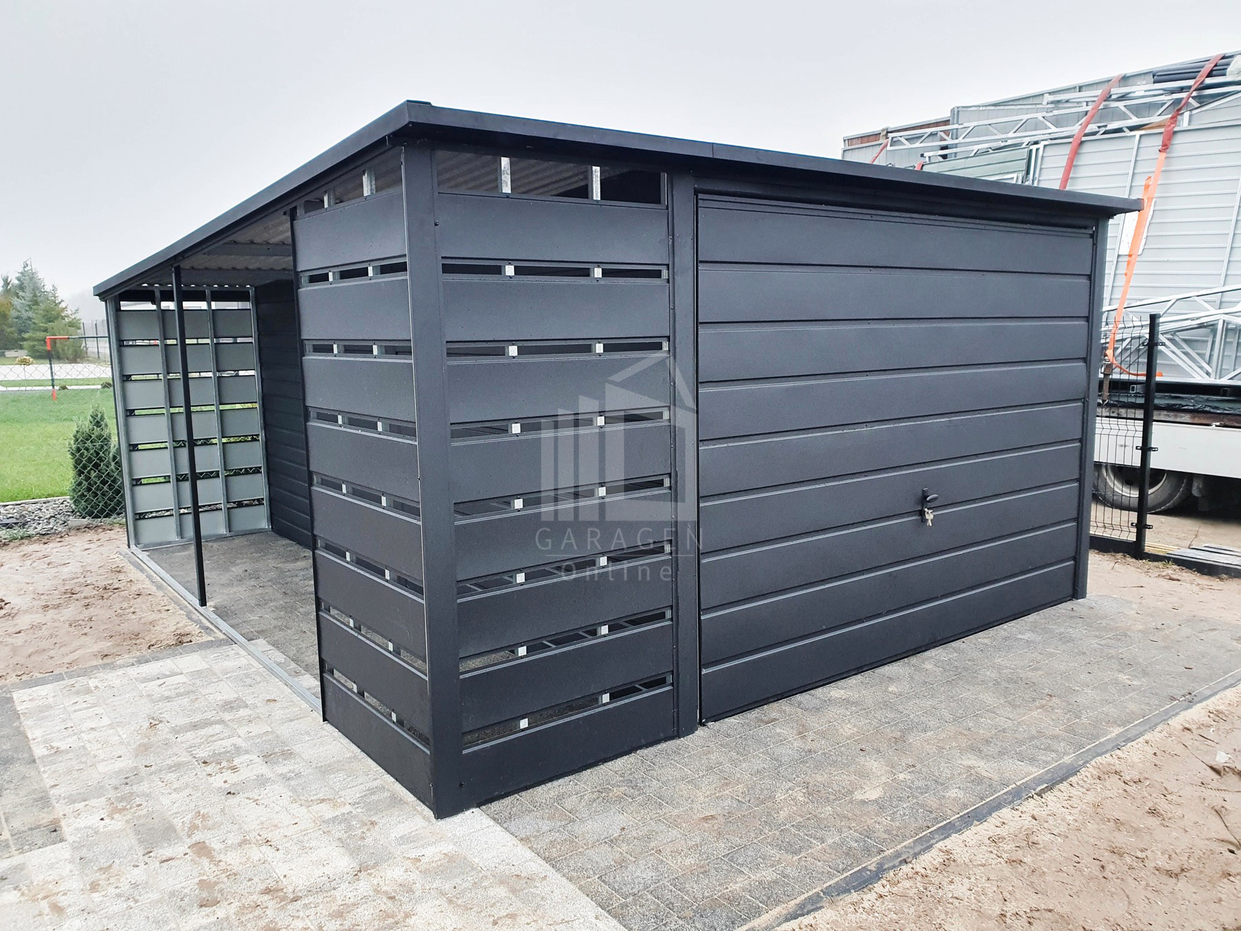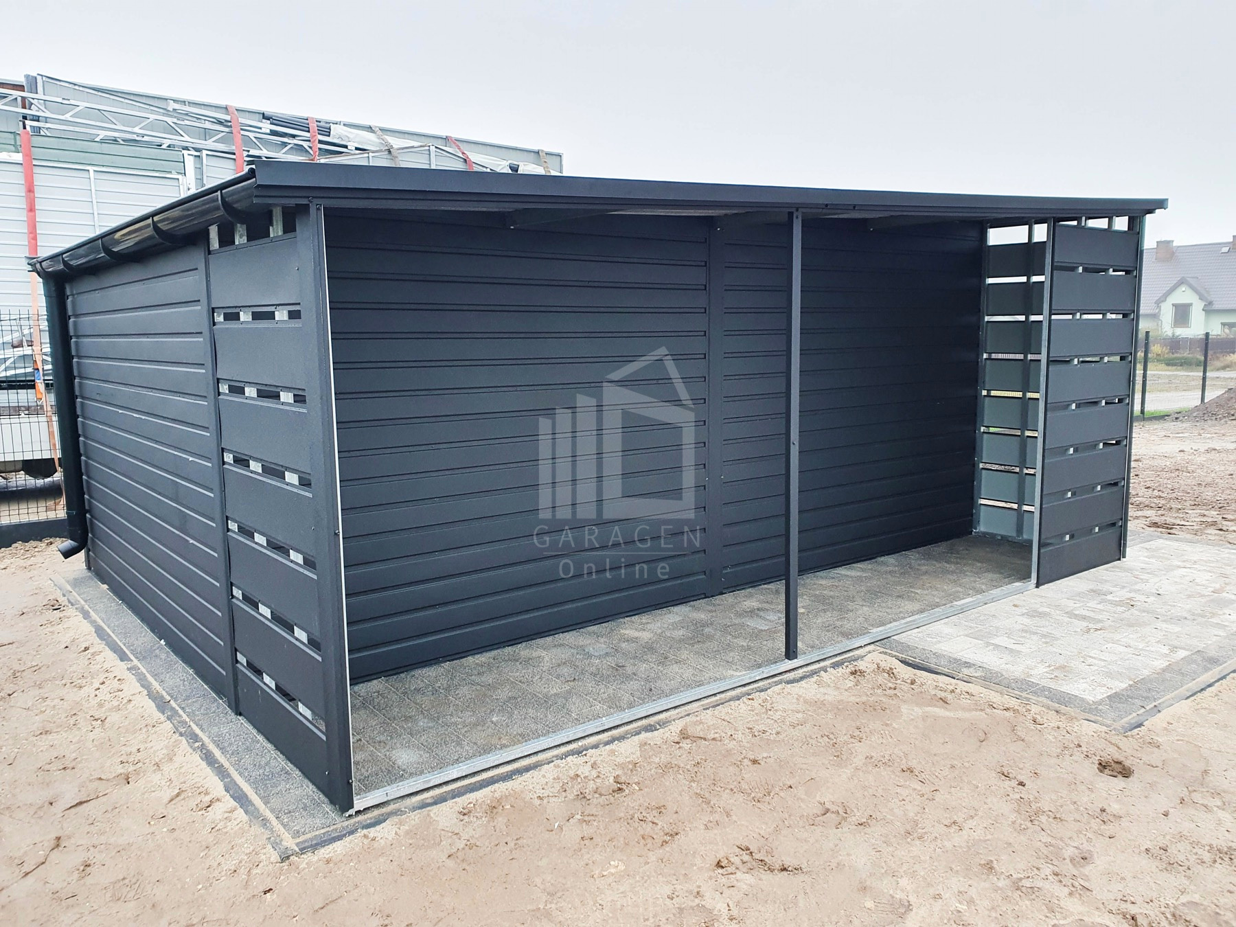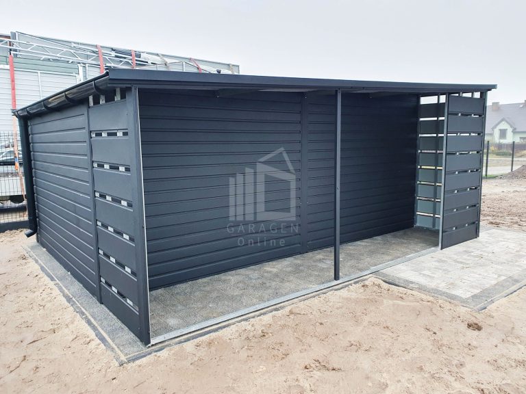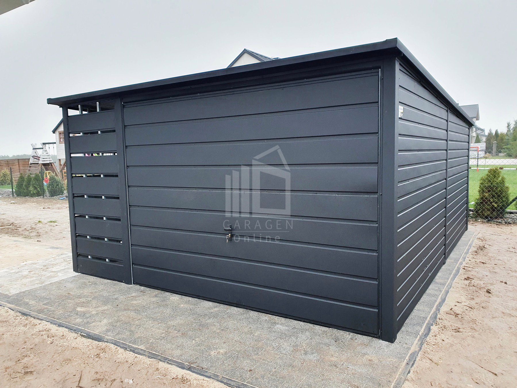 Blechgarage 3x6m Überdachung 1×6 Schwingtor Anthrazit Flachdach ID445
