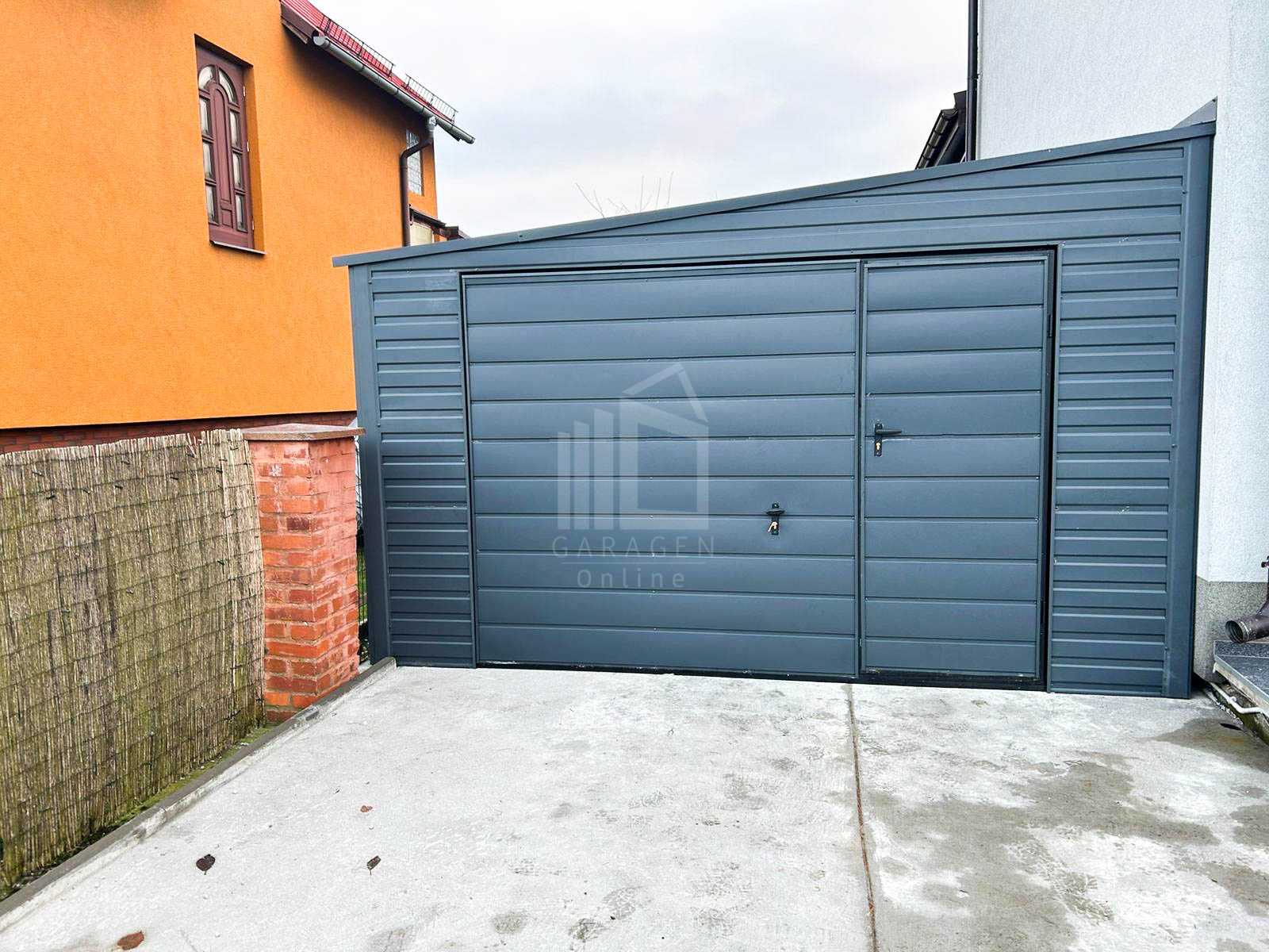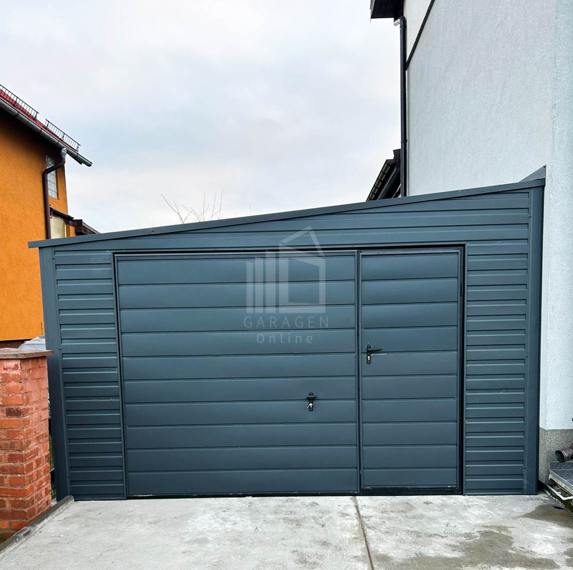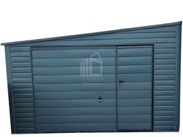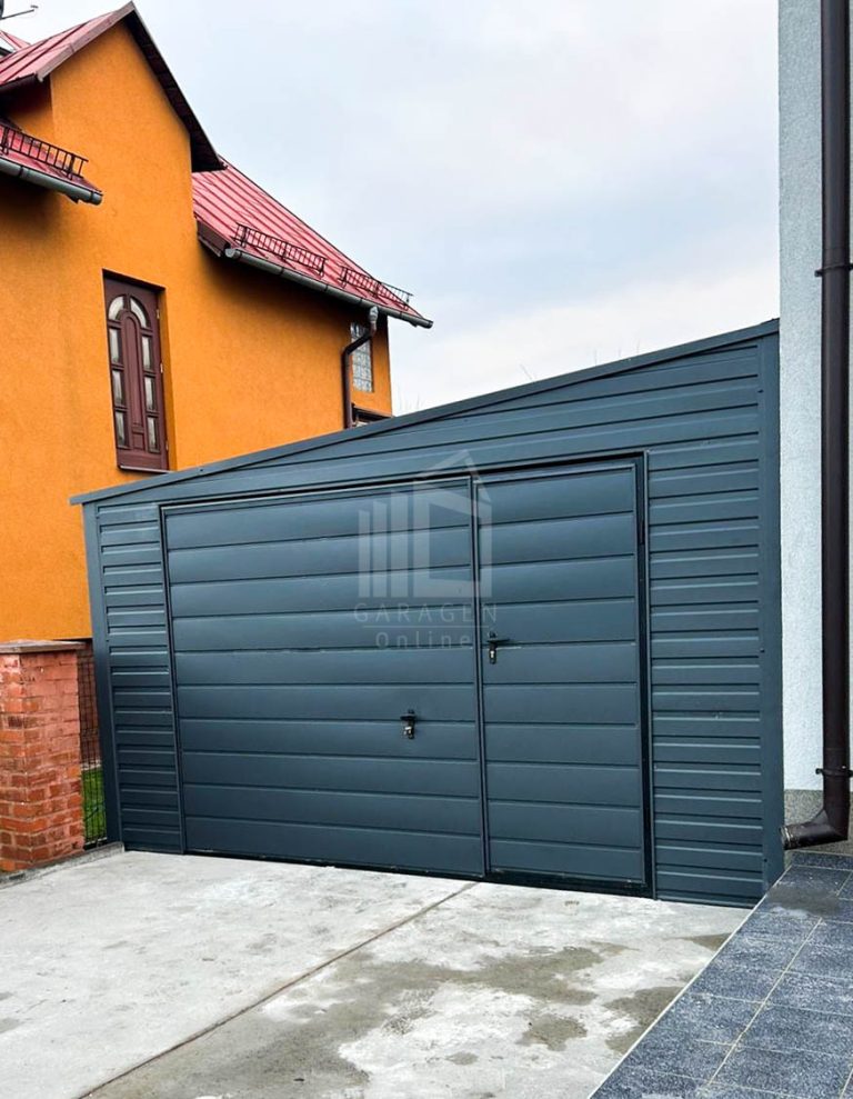 Blechgarage 4x6m Schwingtor Anthrazit Dach mit Neigung nach links GP252