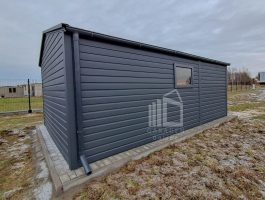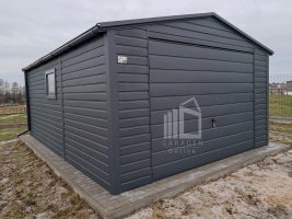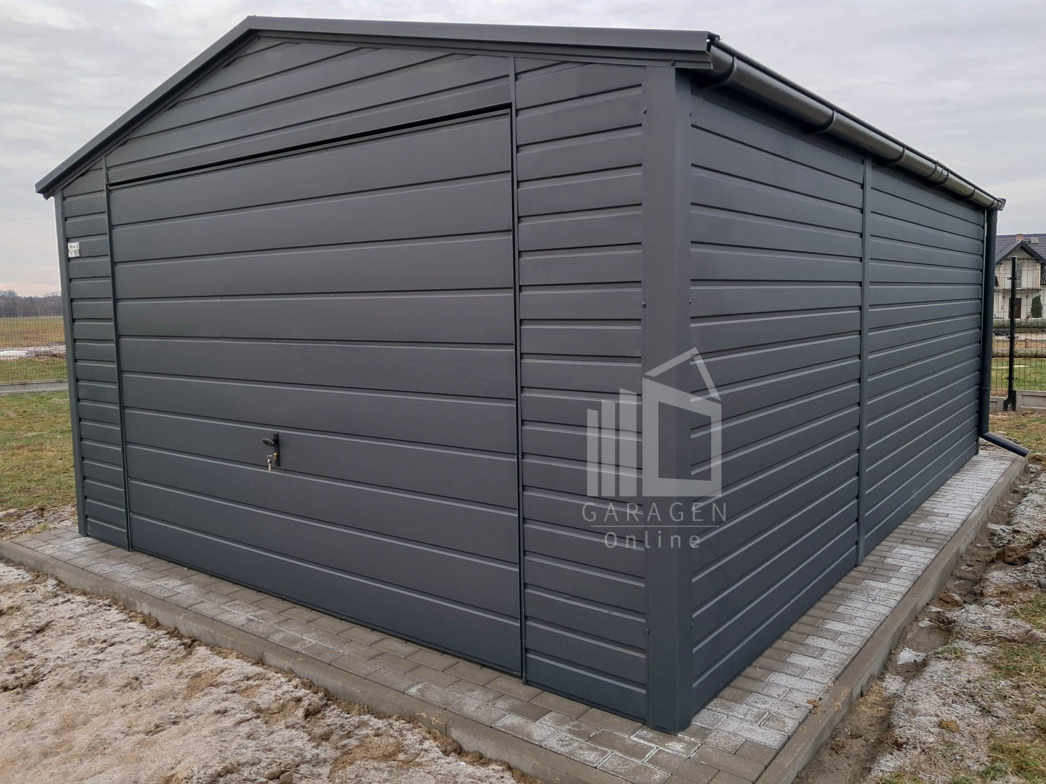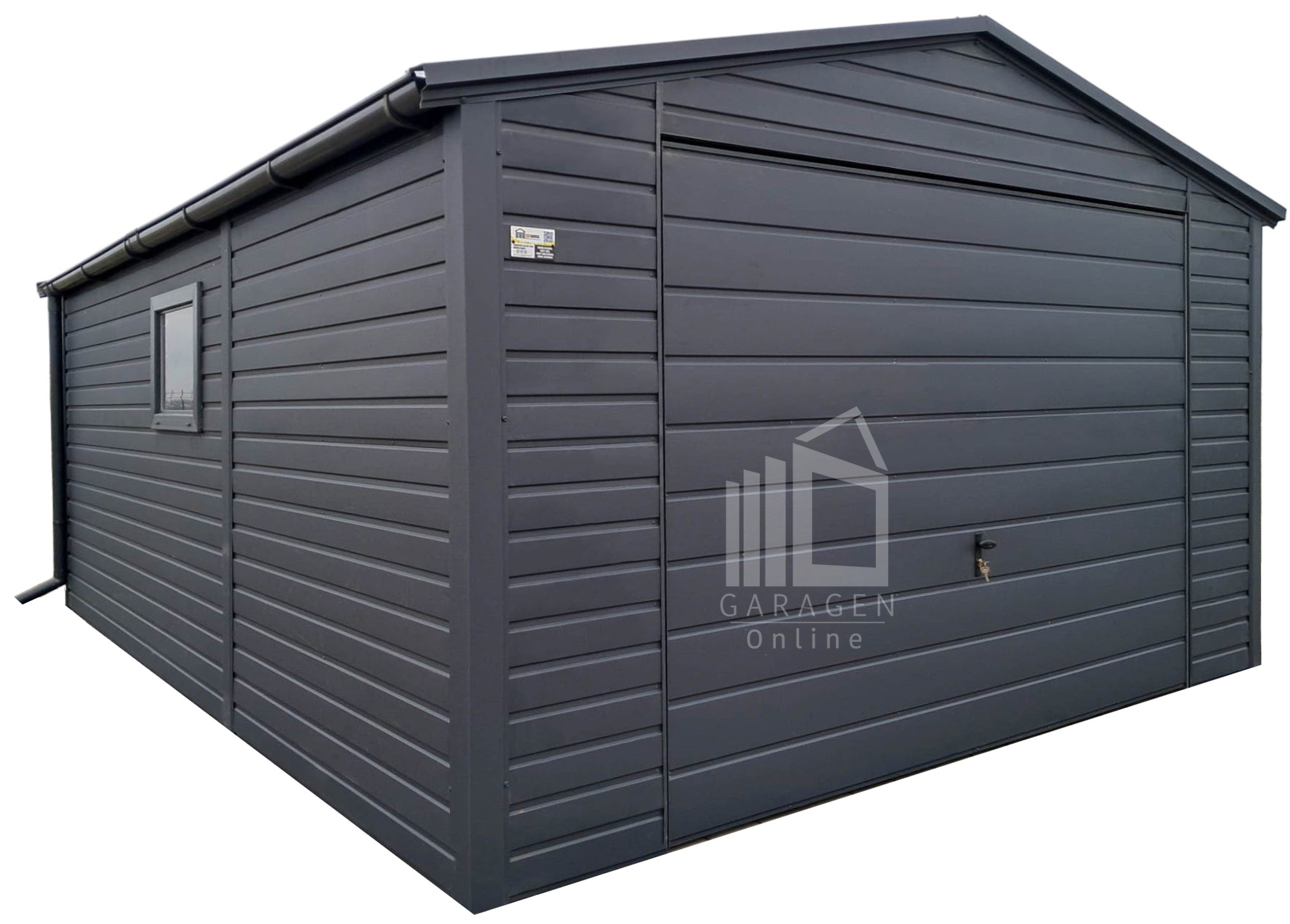 Blechgarage 4x7m Schwingtor – PVC Kippfenster – Anthrazit – Dachrinnen – Satteldach ID984
