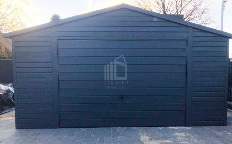 Blechgarage 5x7m Schwingtor – Anthrazit – Metalldachziegel – Satteldach GP103