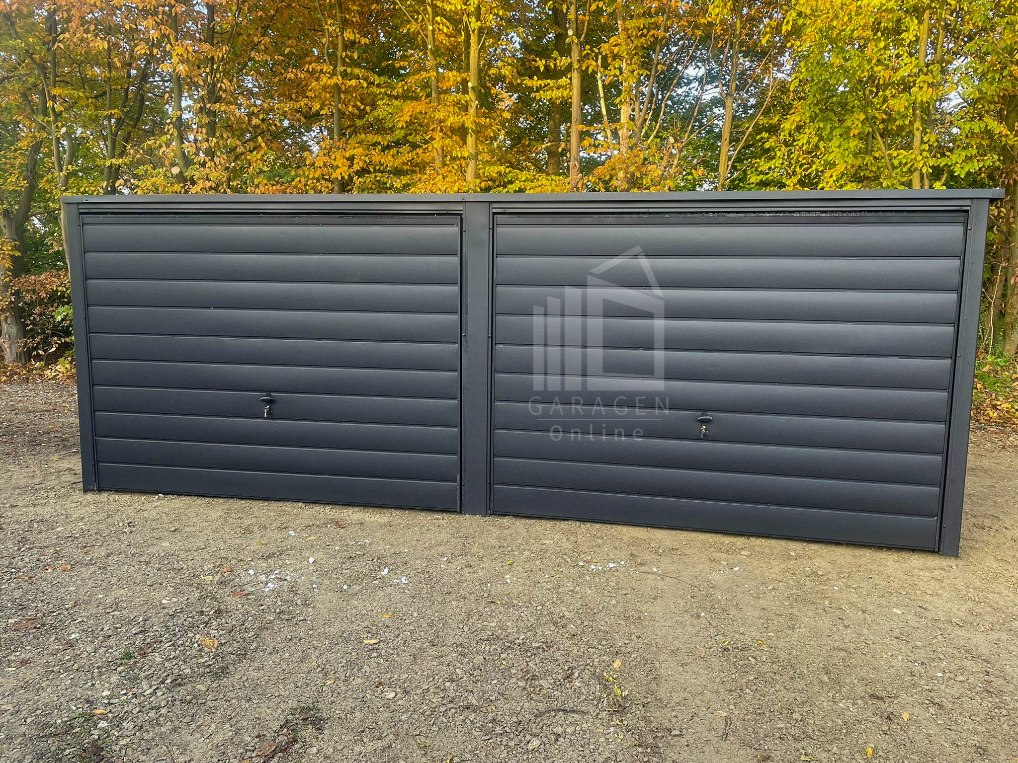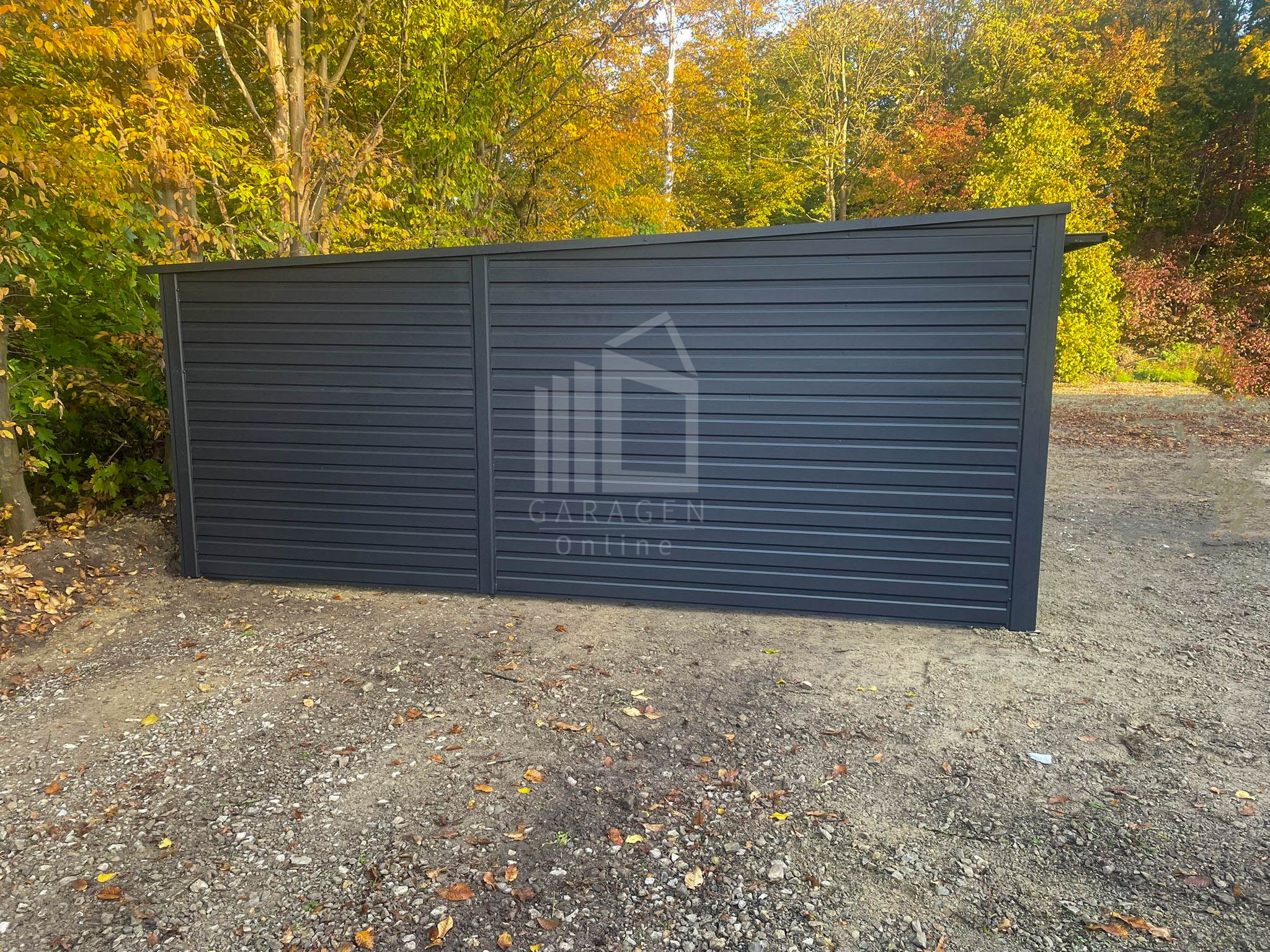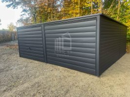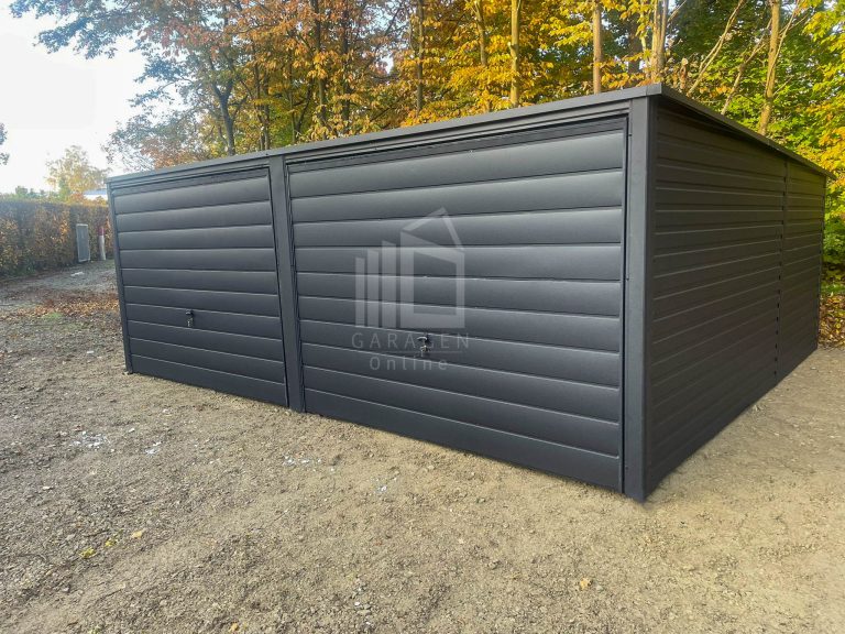 Blechgarage 6x5m – 2x Schwingtor – Anthrazit – Flachdach GP523
