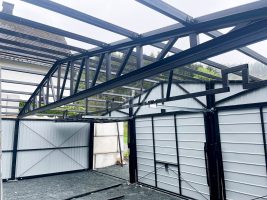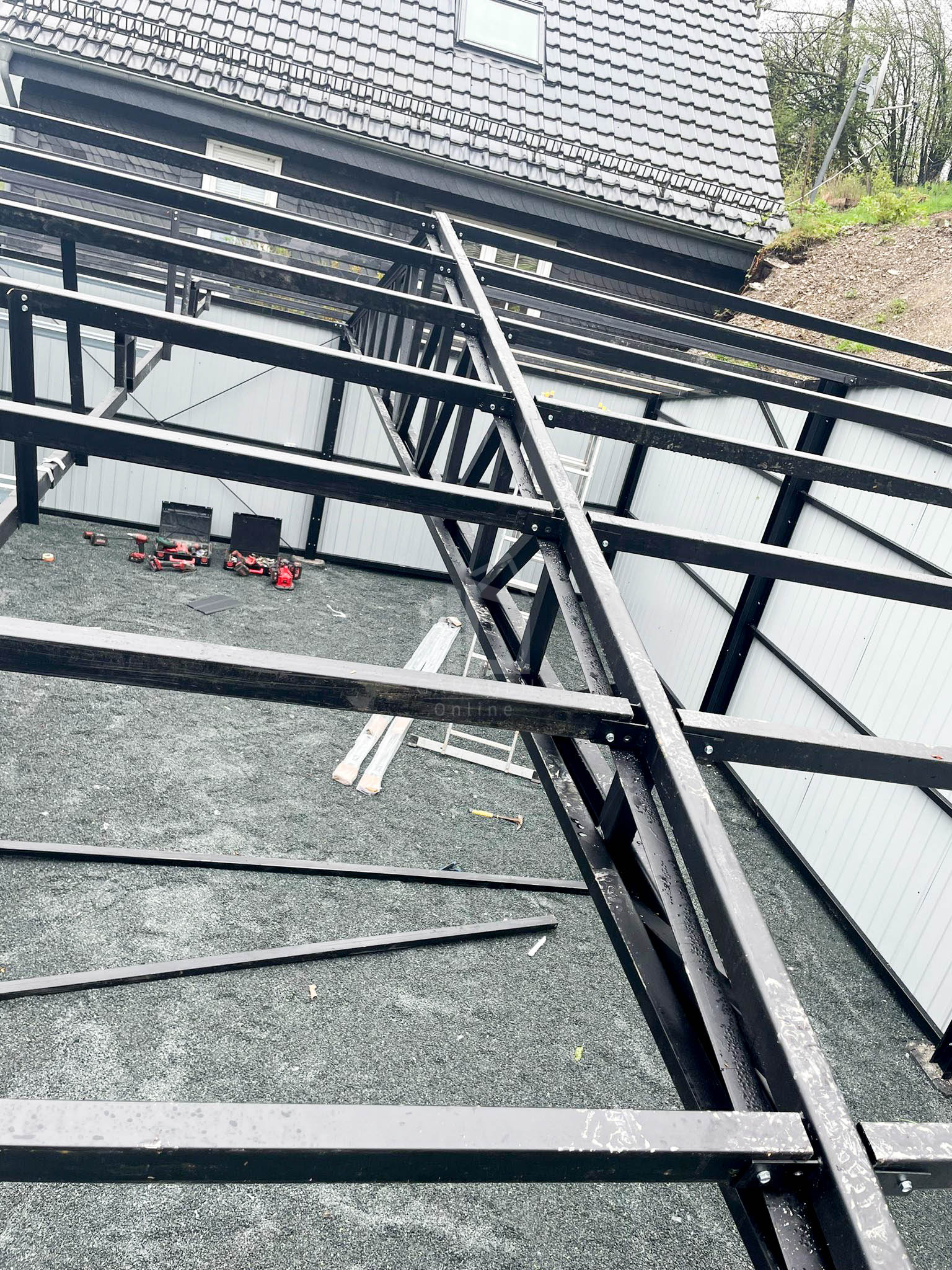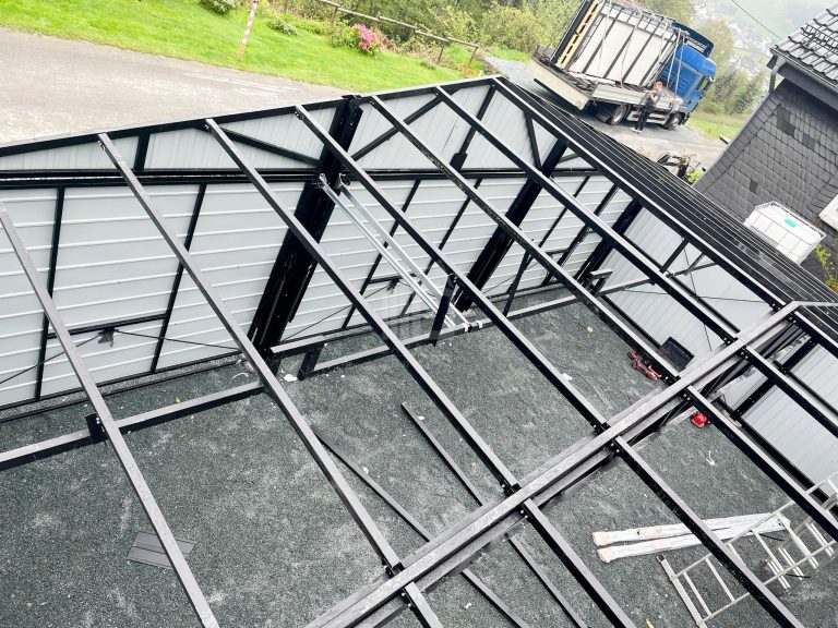 Dachkonstruktion aus robusten, geschlossenen, feuerverzinkten Profilen