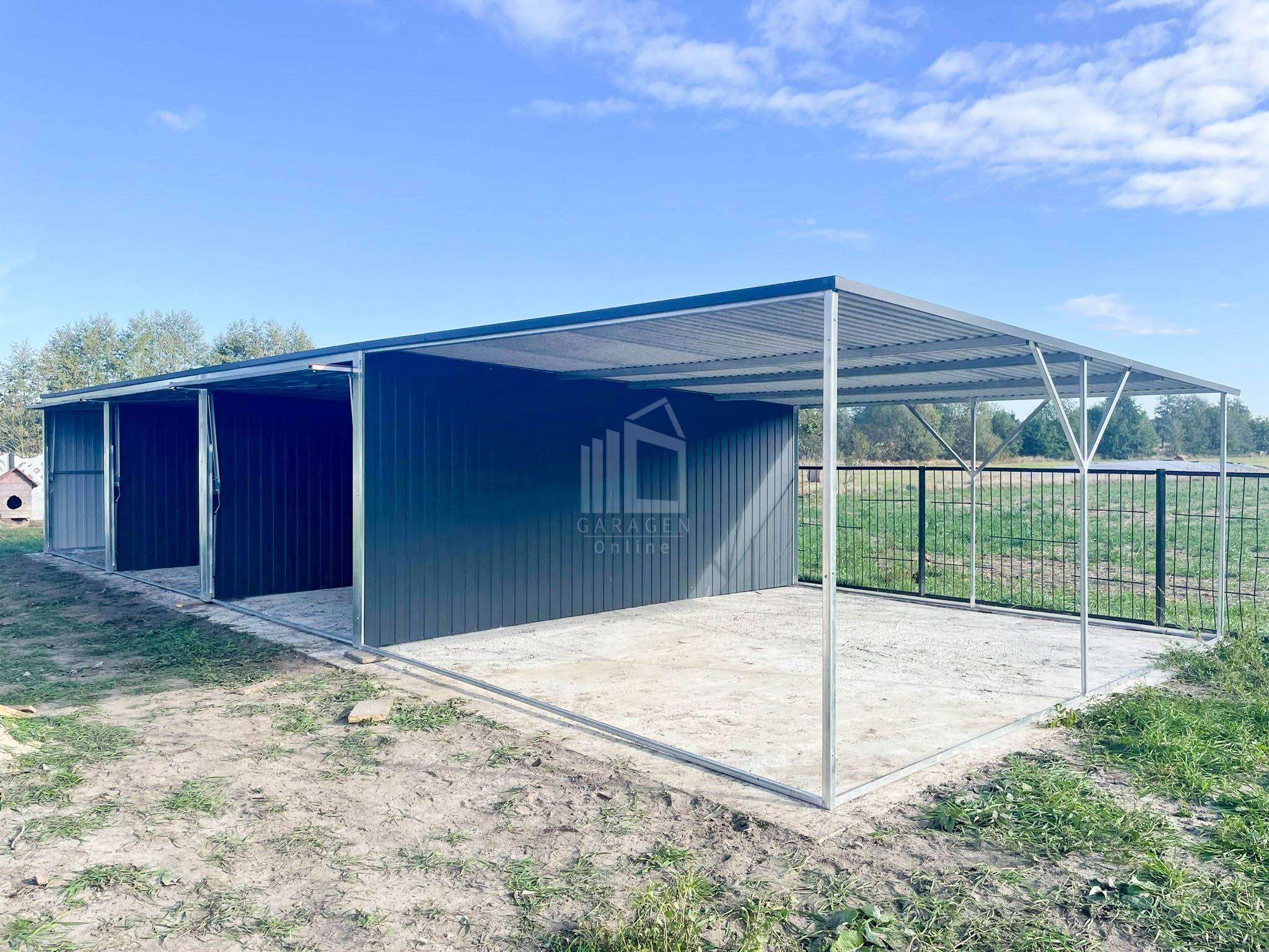 Wir verwenden solide Verstärkungen der Konstruktion aus Winkeln, Trägern und geschlossenen ProfilenVerstärkung des Daches durch einen Stahlrahmen+ Dachkonstruktion aus robusten, geschlossenen, feuerverzinkten Profilen Wir fertigen jede garage nach ihren wünschen. Bitte Kontaktieren sie uns, wenn sie irgendwelche fragen haben.