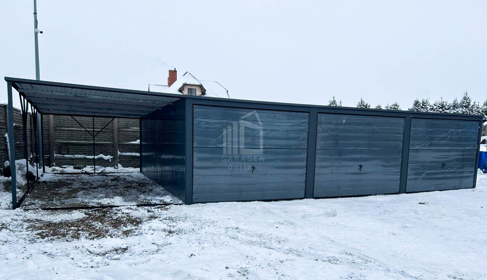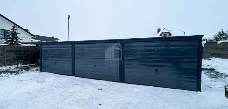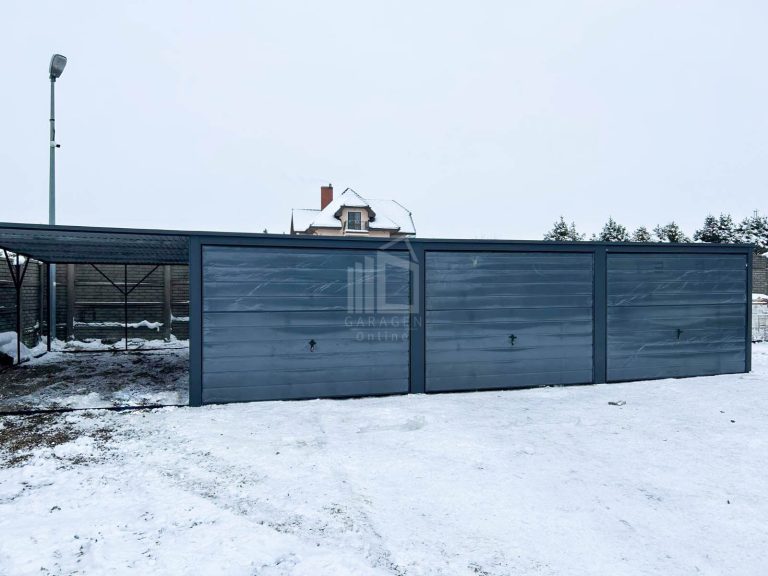 Blechgarage 9x6m Überdachung 3x Schwingtor Anthrazit Flachdach GP258