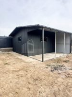 • Überdachung   2x6m mit einer vollständig geschlossenen Rückwand aus Blech.