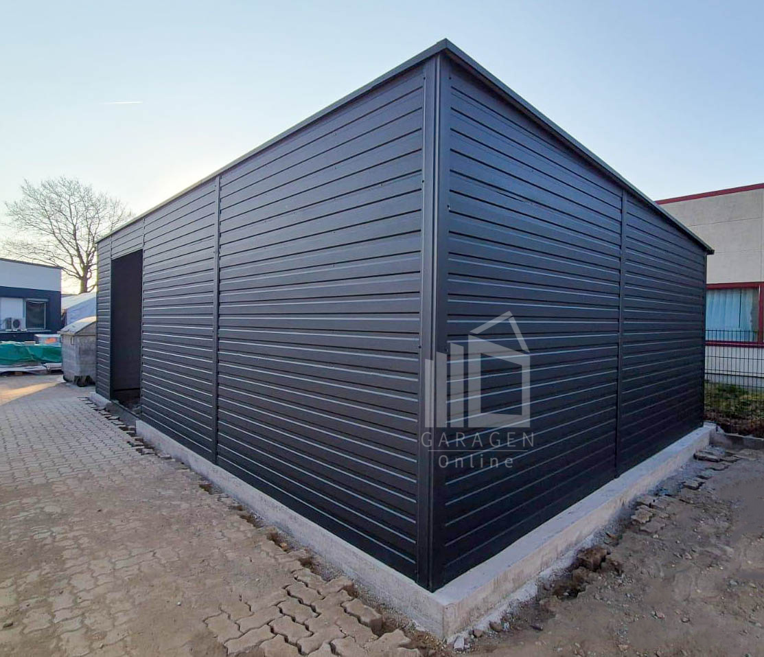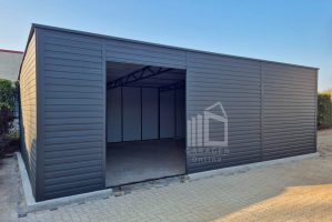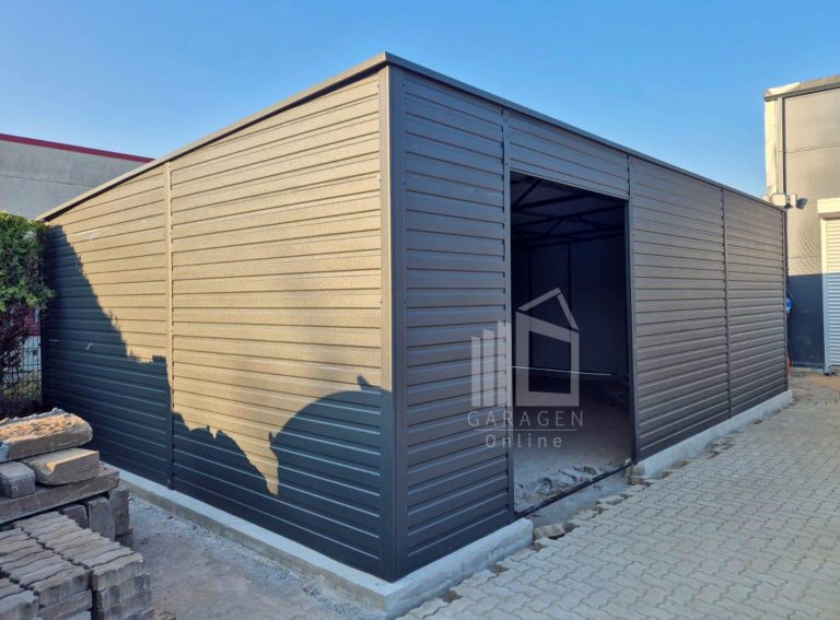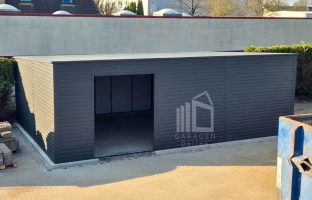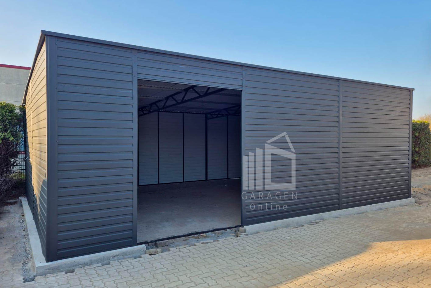 Blechgarage – Lager 9x6m Öffnung – Anthrazit – Flachdach GP571