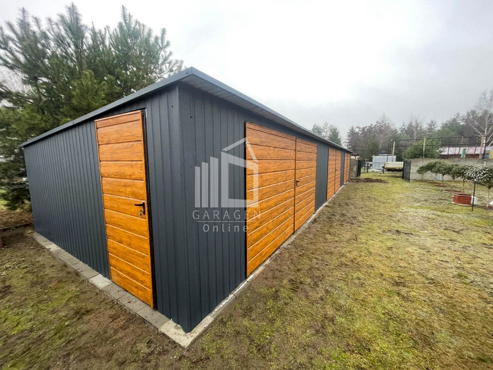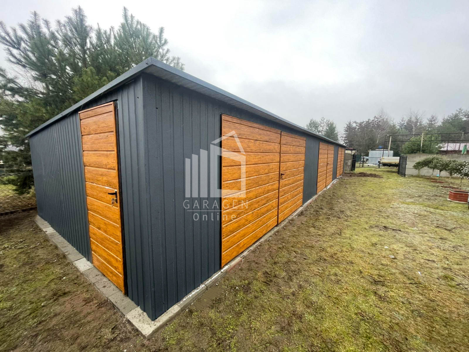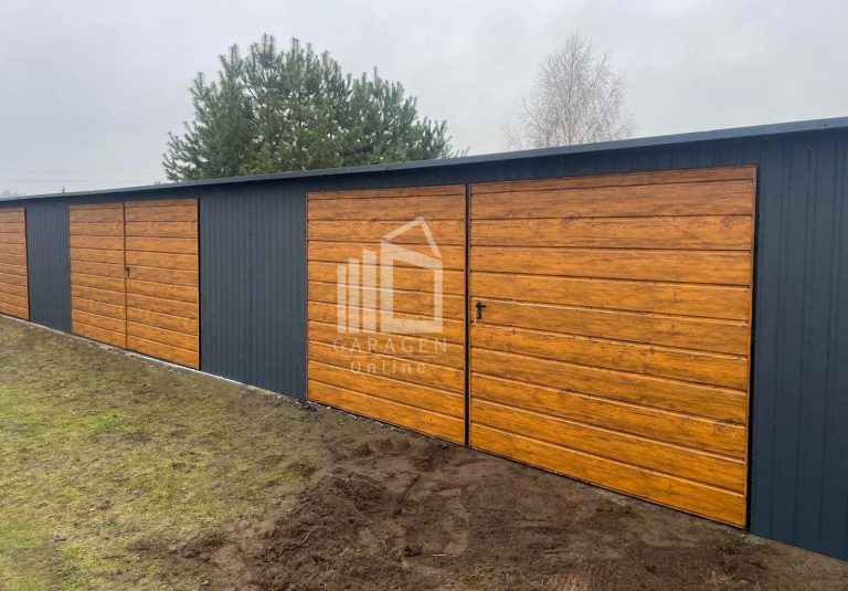 Reihengaragen – Garagenkomplex 18x5m – 3x Zweiflügeliges Tor – Tür – Holzoptik – Anthrazit – Flachdach GP525