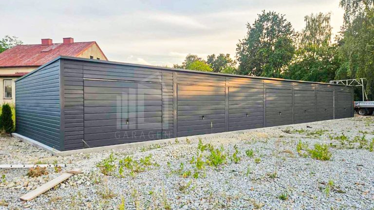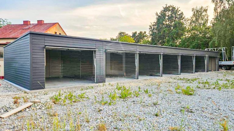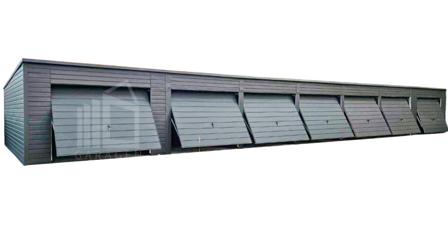 Reihengaragen – Garagenkomplex 24×5,5m – 7x Schwingtor – Anthrazit – Flachdach | ID785 |