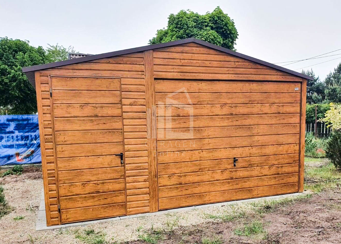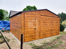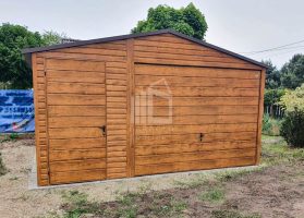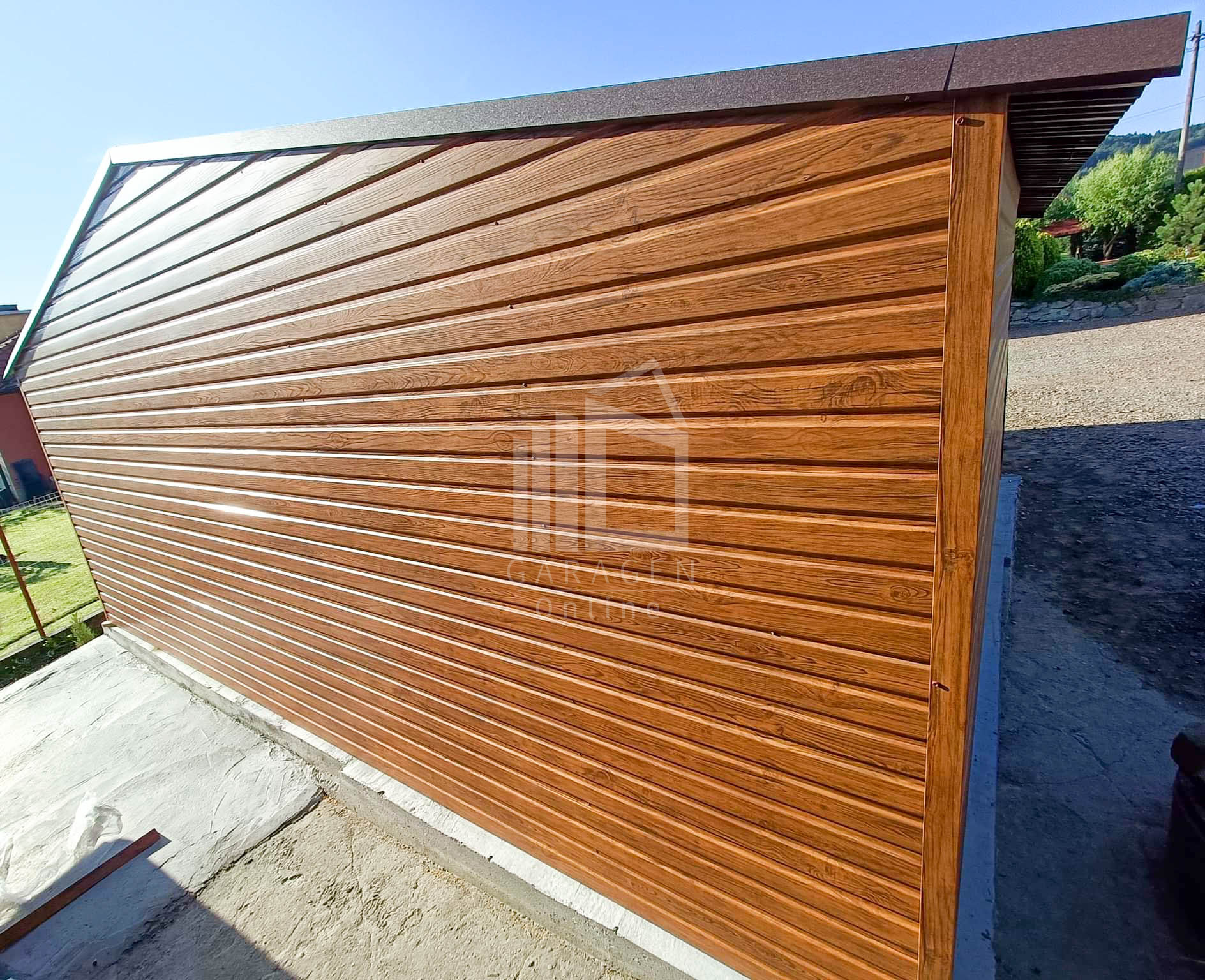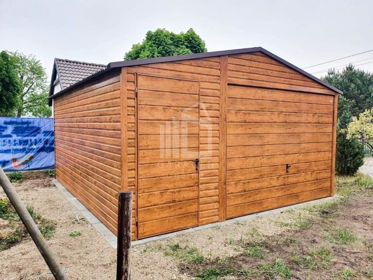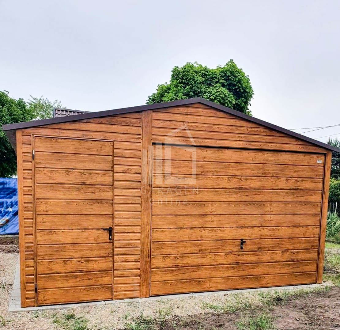 Blechgarage 4,5x5m Horizontal Blech Schwingtor Satteldach Holzoptik ID88