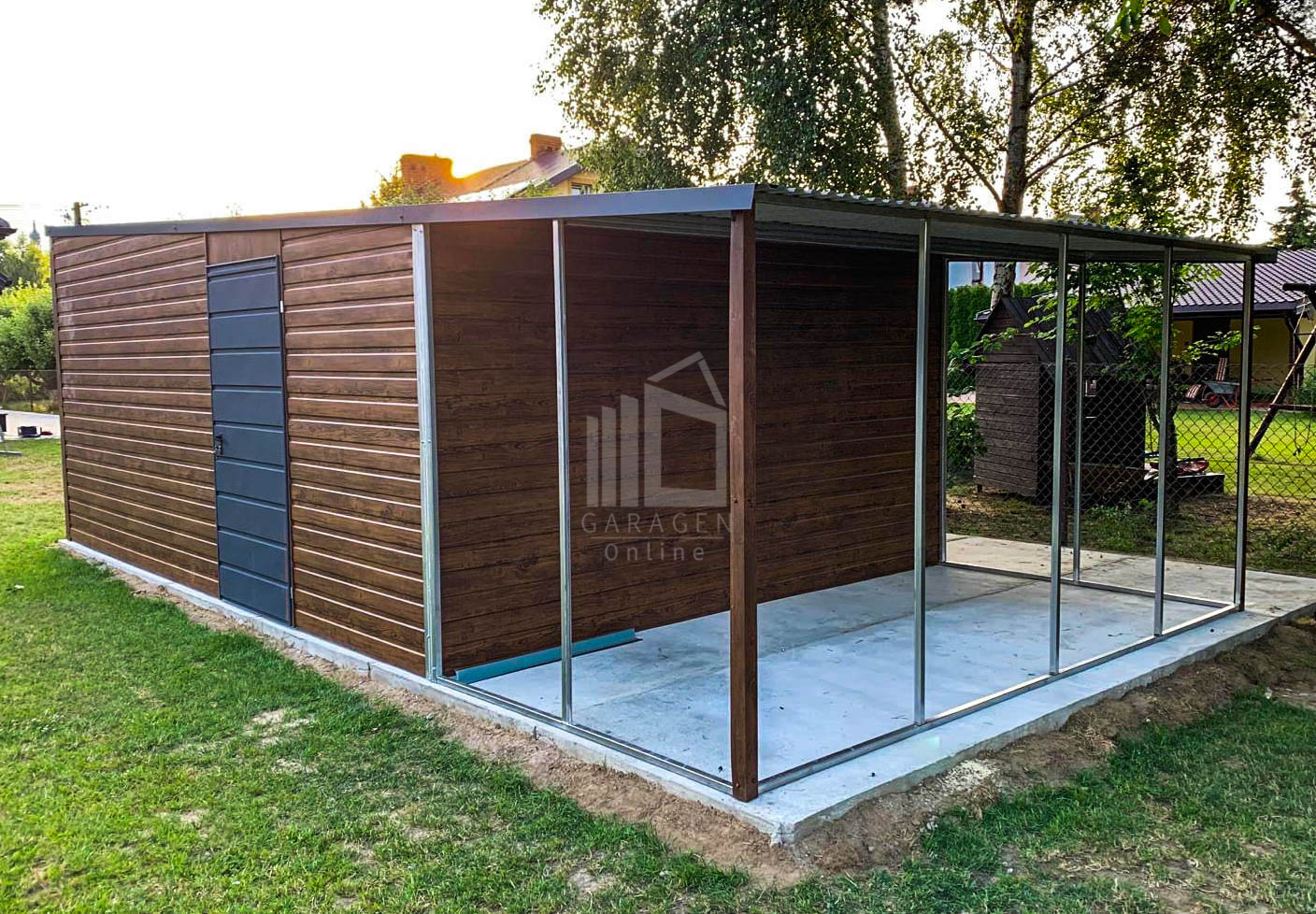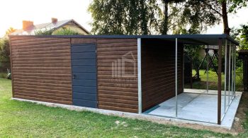 Blechgarage 4x6m Überdachung PVC Kippfenster Tür Holzoptik ID272