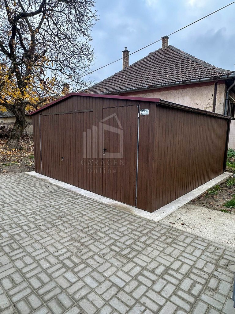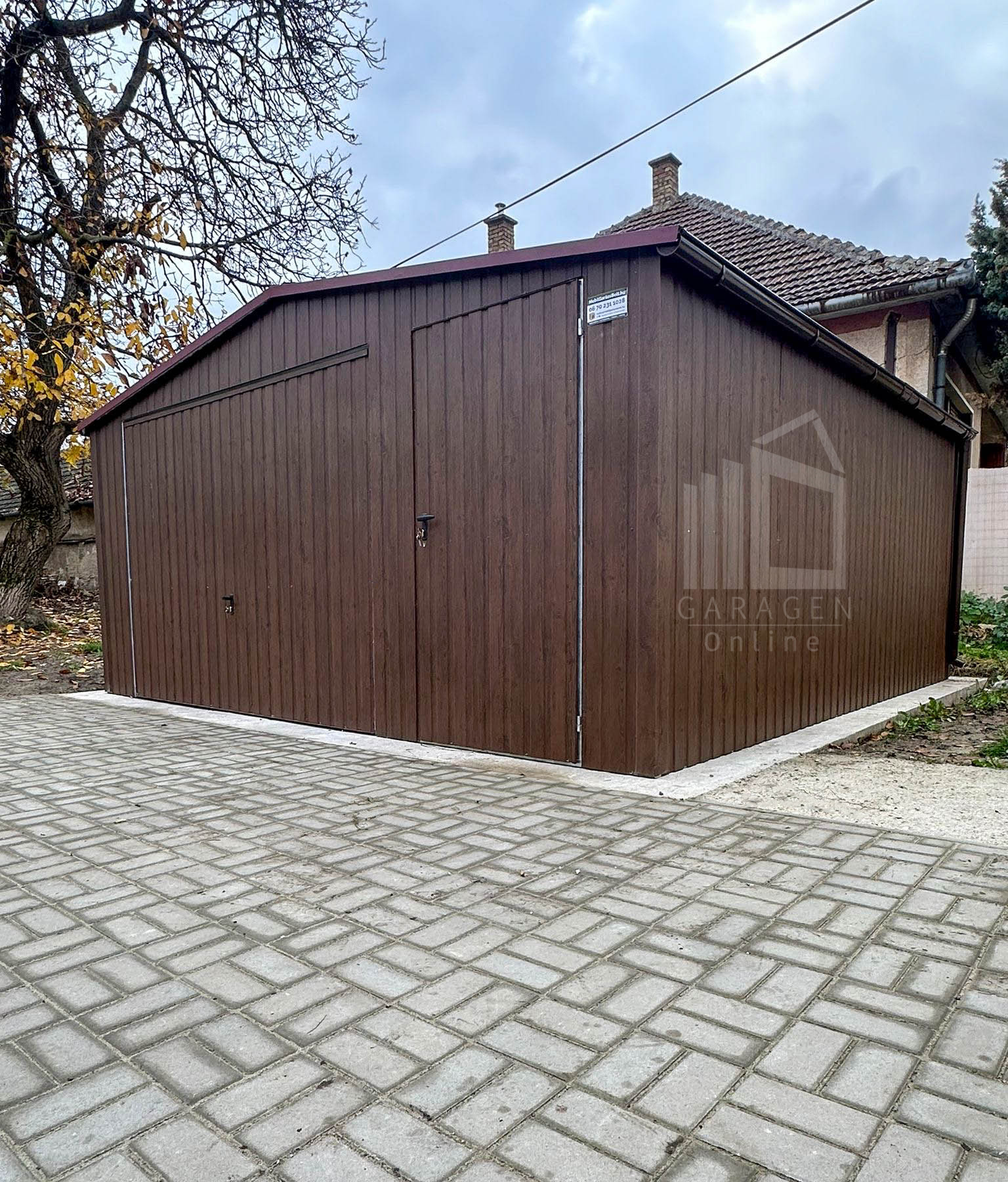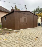 Blechgarage 5x5m Schwingtor – Tür – PVC Kippfenster – Holzoptik – Dachrinnen – Satteldach ID770