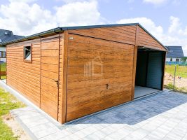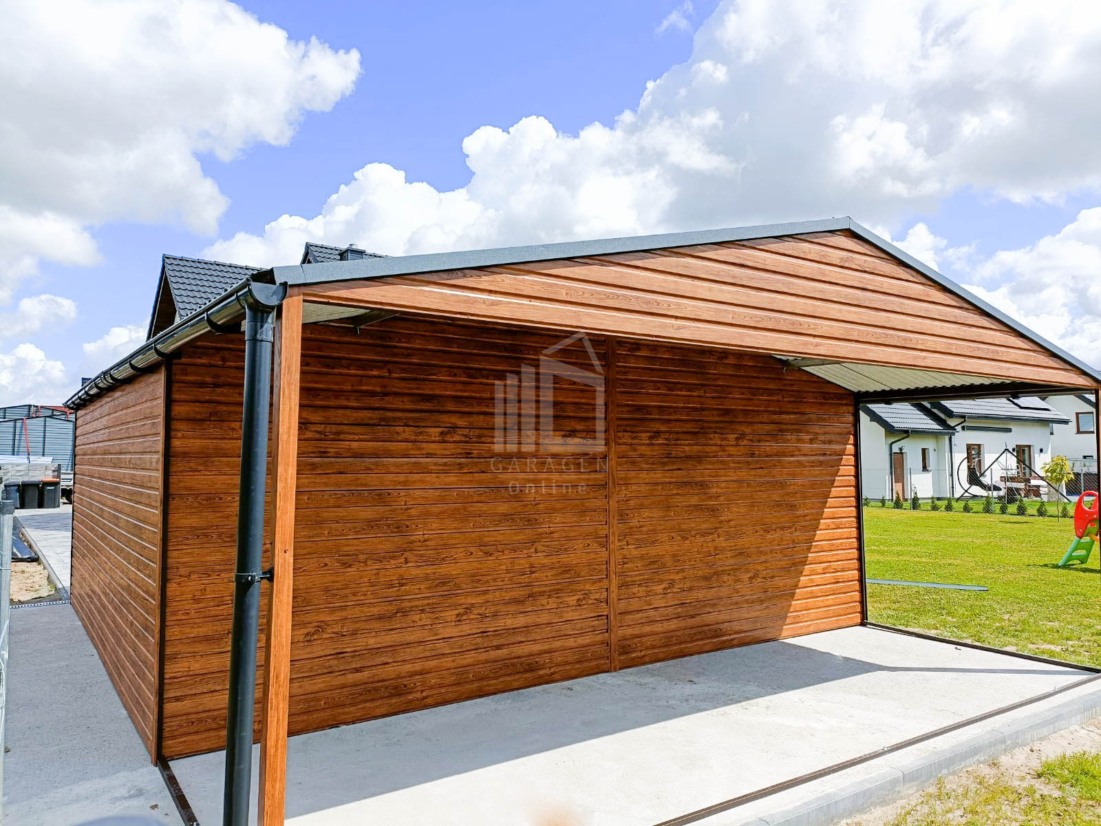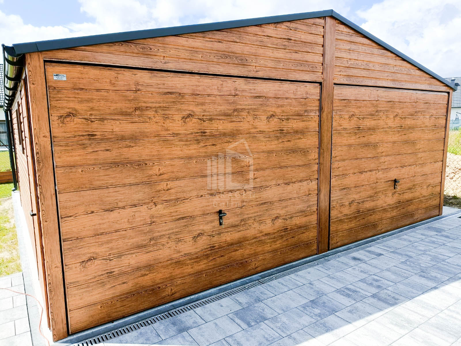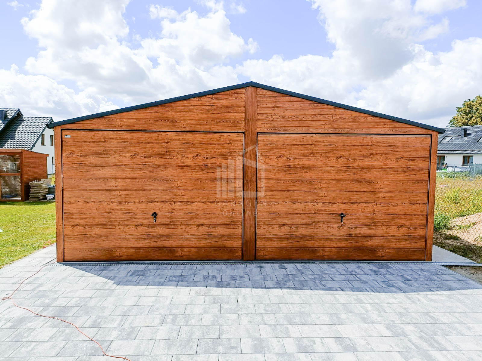 Blechgarage 6x5m Horizontal Blech Satteldach Holzoptik 2x Schwingtor Überdachung ID116