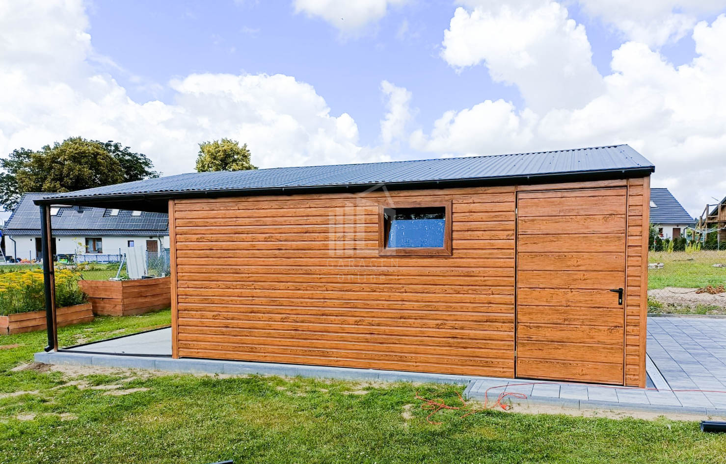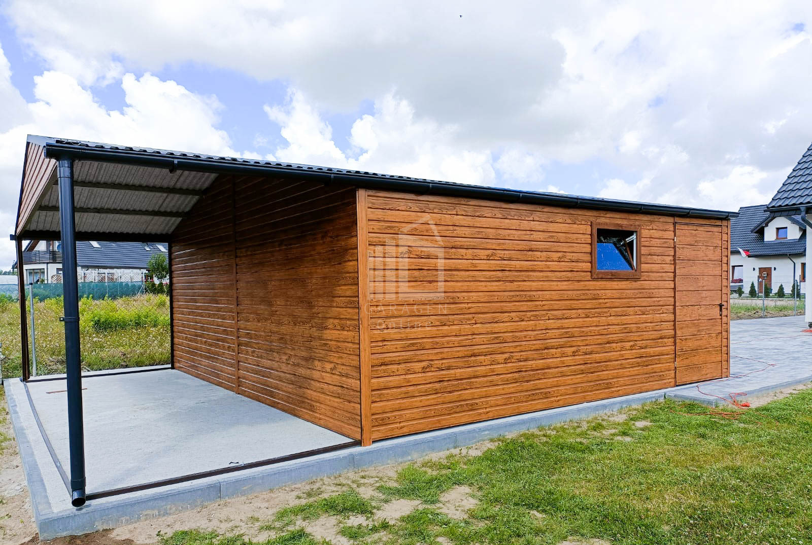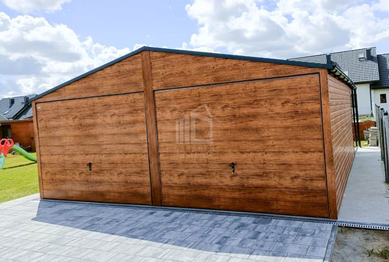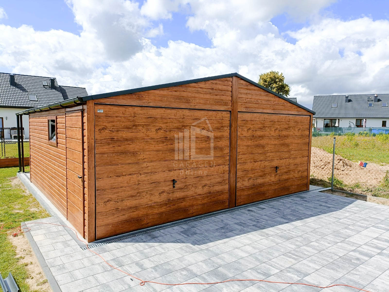 Blechgarage 6x5m Horizontal Blech Satteldach Holzoptik 2x Schwingtor Überdachung ID116