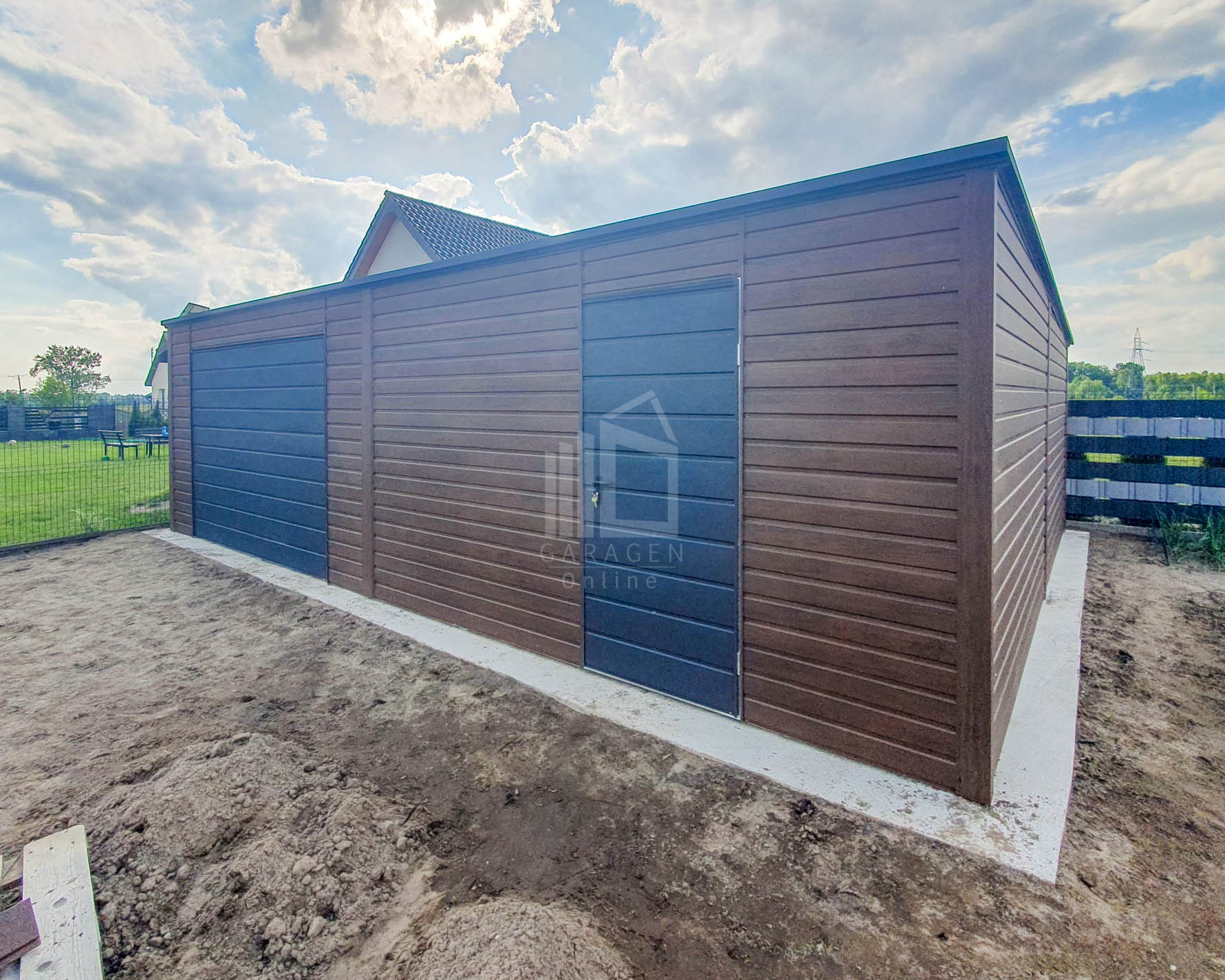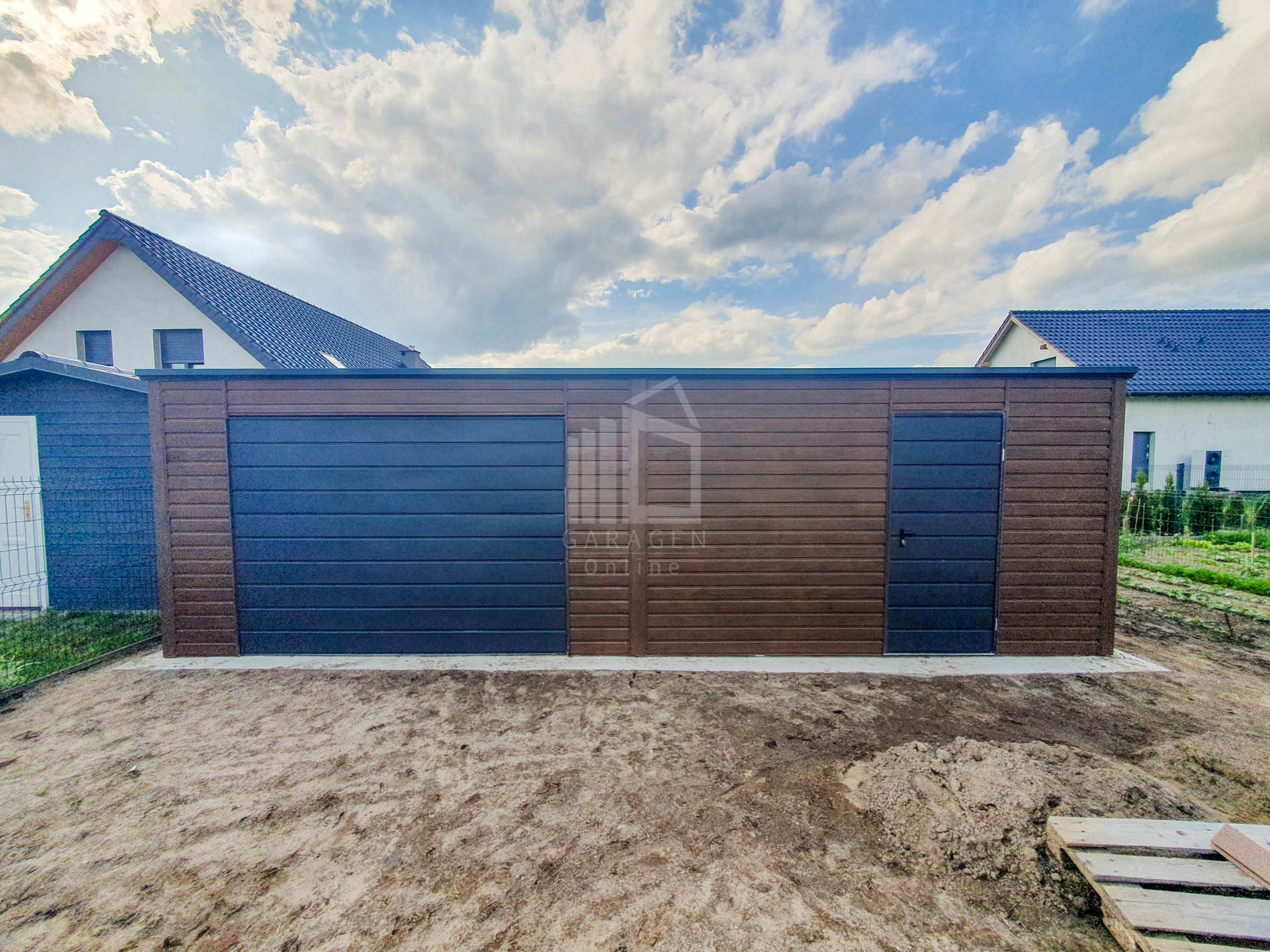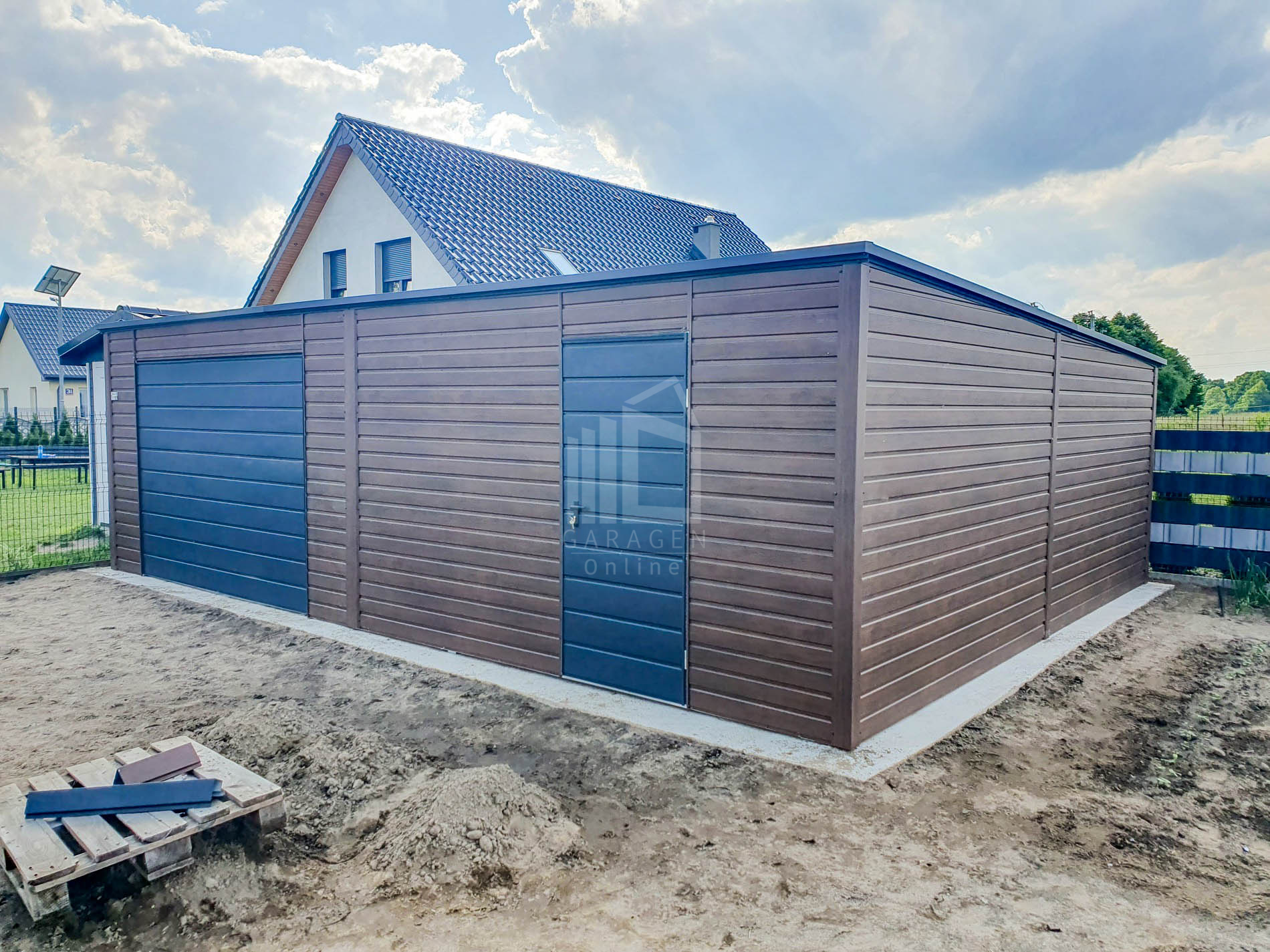 Blechgarage 8x6m – Schwingtor – Tür – Dunkles Walnussholz – Holzoptik – Anthrazit – Flachdach ID624