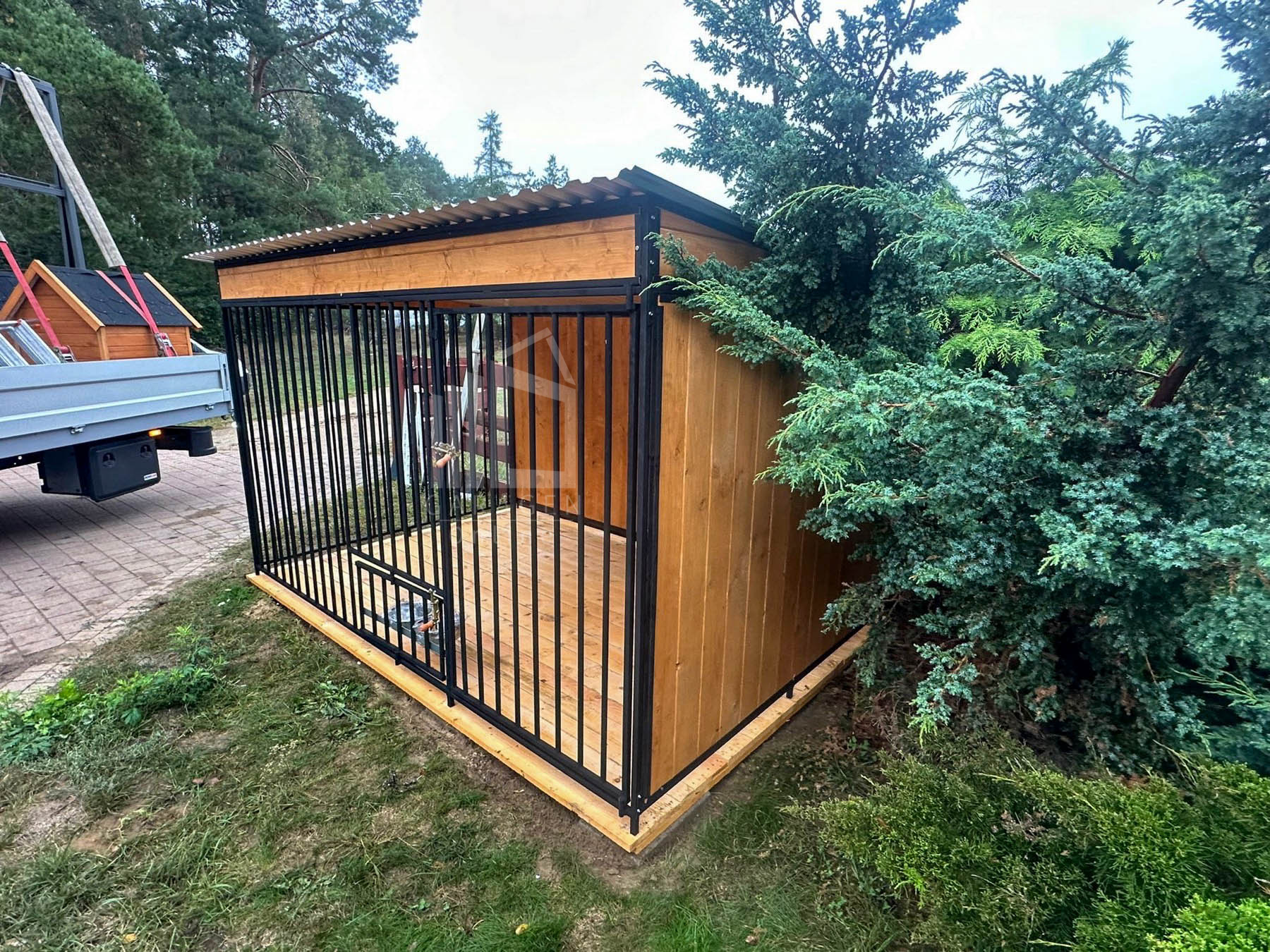 Der Preis des Zwingers beinhaltet nicht die Hundehütte.